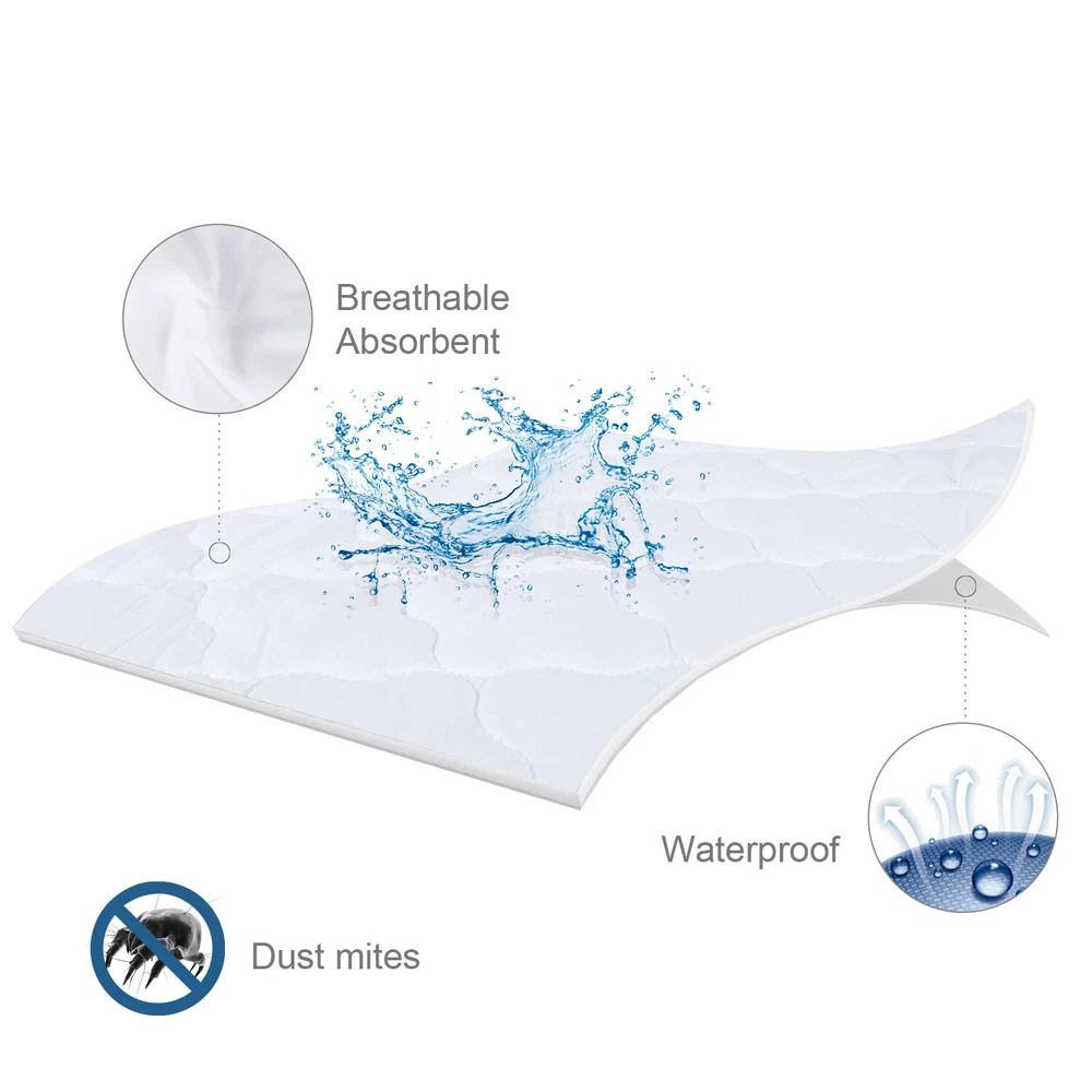 Product description 100% Absorbent & Waterproof Mattress Pad: Springspirit mattress protectors with waterproof 100% premium TPU layer, It will be your best protection to avoid nighttime accidents, liquids or stains. Mattress Protector are super soft quilt with 100% polyester to promptly absorb any liquids. Breathable & Soft Surface Fabric: Made with 100% polyester fabric and filling-in to support mattress pads that are soft and durable better than other materials. The spring back well after washing - reduce the unwanted noise and movement to disturb your sleep at night. Perfect Fit & Long Skirt: Mini Crib/ Pack N Play size 27"X39" , the extra long skirt easily stretch to fit for wide range of mattress depth up to 5 inches . Standard crib size 28" X 52" , the extra long skirt easily stretch to fit for wide range of mattress depth up to 9 inches . Twin size 39" X 75" , Twin XL size 39" X 80", Full size 54" X 75", Fulll XL size 54" X 80" , Queen size 60" X 80" , The extra long skirt easily stretch to fit for wide range of mattress depth up to 14 inches . King size 76" X 80" , California King 72" X 84" , The extra long skirt easily stretch to fit for wide range of mattress depth up to 18 inches . No matter how you move on the bed this pad will keep neat all the night. No worry of a messy bed anymore. Wash Durable and Easycare: Neatly stitched for year - round durability for waterproof mattress pad cover that you will be comfier and safer. Cleaning Tip: Gentle wash to a max heat setting of 40℃/100℉ tumble dry low heat.Do not iron.Do notdry clean.Do not bleach. Handling & Delivery We offer Free Shipping on all orders! Your order will be shipped within 2 working days after receiving payment. In an unlikely event that your order is lost or damaged in transit, it is eligible for full refund or replacement. We ship to continental US address ONLY, we are unable to ship to PO Boxes or APO/FPO addresses. Return Policy If you are not satisfied when you receive your item, please contact us for a replacement or money back. If the item is defective, we will send you a replacement without any extra charge, or offer a full refund after we receive the defective item, but return shipping should be paid by buyer. All items qualify for returns within 30 days of receipt. Returned packages must be the original package. Springspirit's Life Guarantee Springspirit's quality you can trust, if Springspirit products does not meet your needs for any reason, replacement or money back, no questions asked! Contact us We will respond emails within 24 hours, within 36 hours on weekend.