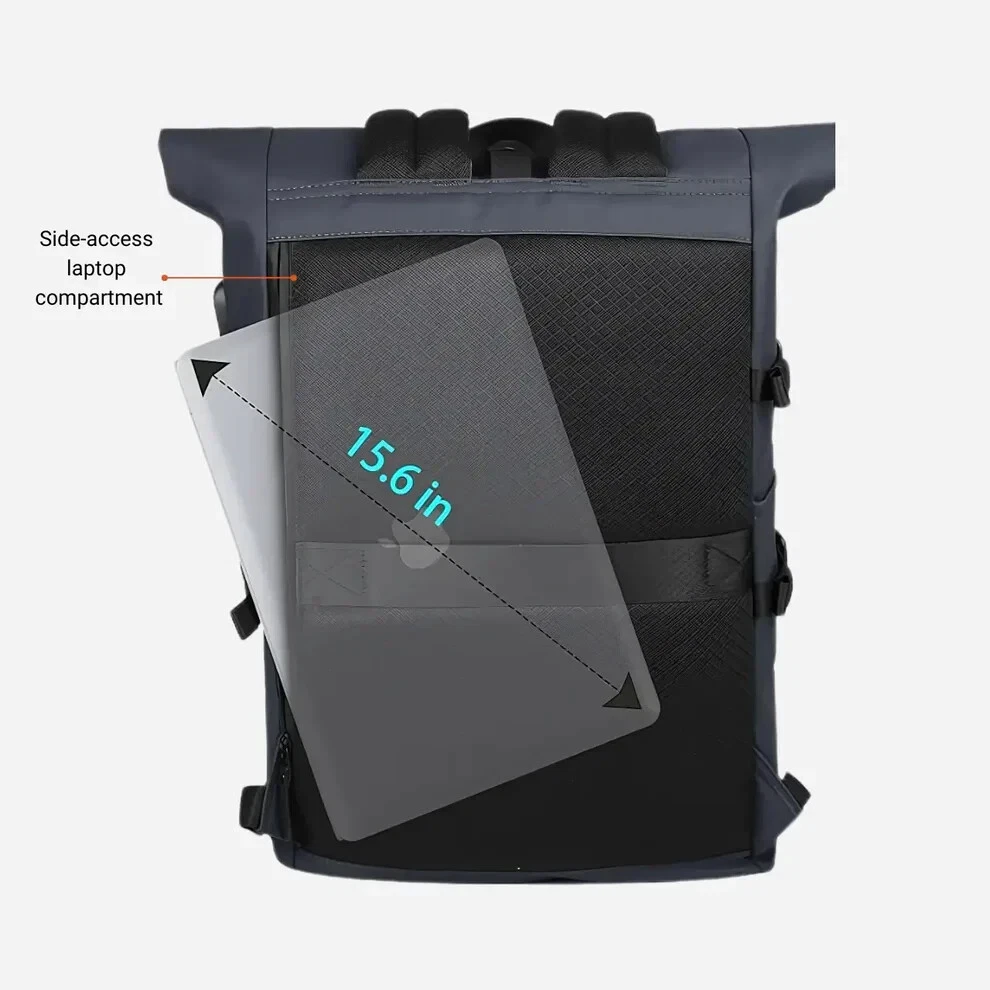 This backpack is a game-changer! The water-repellent material keeps my stuff dry, and the roll-top design adds extra security. Super comfortable for all-day wear, whether I'm commuting or hiking. The laptop sleeve fits my 15" laptop perfectly, and the luggage sleeve is a nice touch for travel. Love the sleek black look—stylish yet functional. Highly recommend for anyone who needs a reliable, versatile bag!
