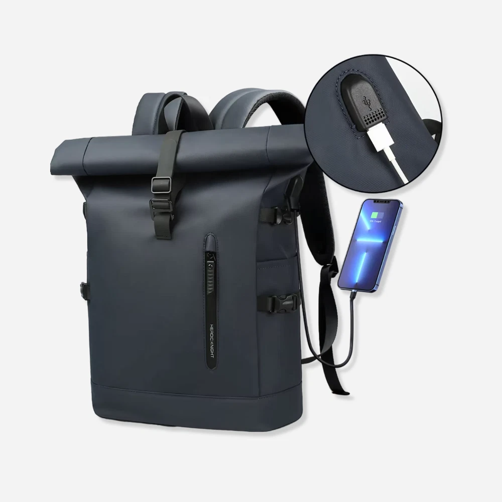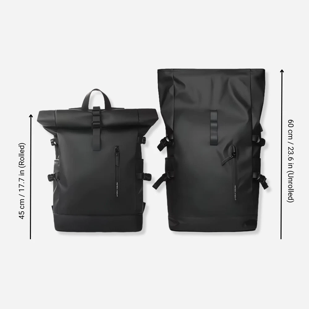 The perfect urban city and hiking backpack ! The Rolltop 20L backpack is the ideal companion for everyday life. Practical and stylish at the same time! For work, travel and staying active, the Roll Top is made to perform all-day. The durable, water-repellent material is engineered to keep your belongings dry, while the air-flow back panel, luggage sleeve and 15.6” laptop compartment ensure unmatched comfort with more functionality. It’s the attention to detail that really sets the Roll Top apart. Key Features: Water-repellent – Crafted with durable, highly water-repellent materials and zippers for enhanced protection. Smart Compartments – Features a padded 15.6” laptop compartment, internal zippered pockets, bottle holder, and a front pocket for organized storage. Extremely Comfortable – Soft, padded straps and a comfortable back support system for all-day wear. USB Charging Port – Convenient charging access to keep you connected on-the-go. Luggage Strap – Securely attaches to luggage for easy travel. G-hook Fastening – Roll-top design with a G-hook fastening for quick access and security. Padded 15.6” Laptop Compartment – Provides extra protection for your laptop. Internal Organization – Multiple compartments and mesh pockets to keep essentials neatly arranged. Top Grab Handle – Designed for easy carrying on the move. Specifications: Dimensions & Capacity (Rolled Down) : 20 liters Size (Rolled Down) : 30cm x 15cm x 45cm (11.8" x 5.9" x 17.7") Dimensions & Capacity (Rolled Up) : 27 liters Size (Rolled Up) : 30cm x 15cm x 60cm (11.8" x 5.9" x 23.6") Weight : 855g Capacity : 20L/27L (Rolled Down/Rolled Up)