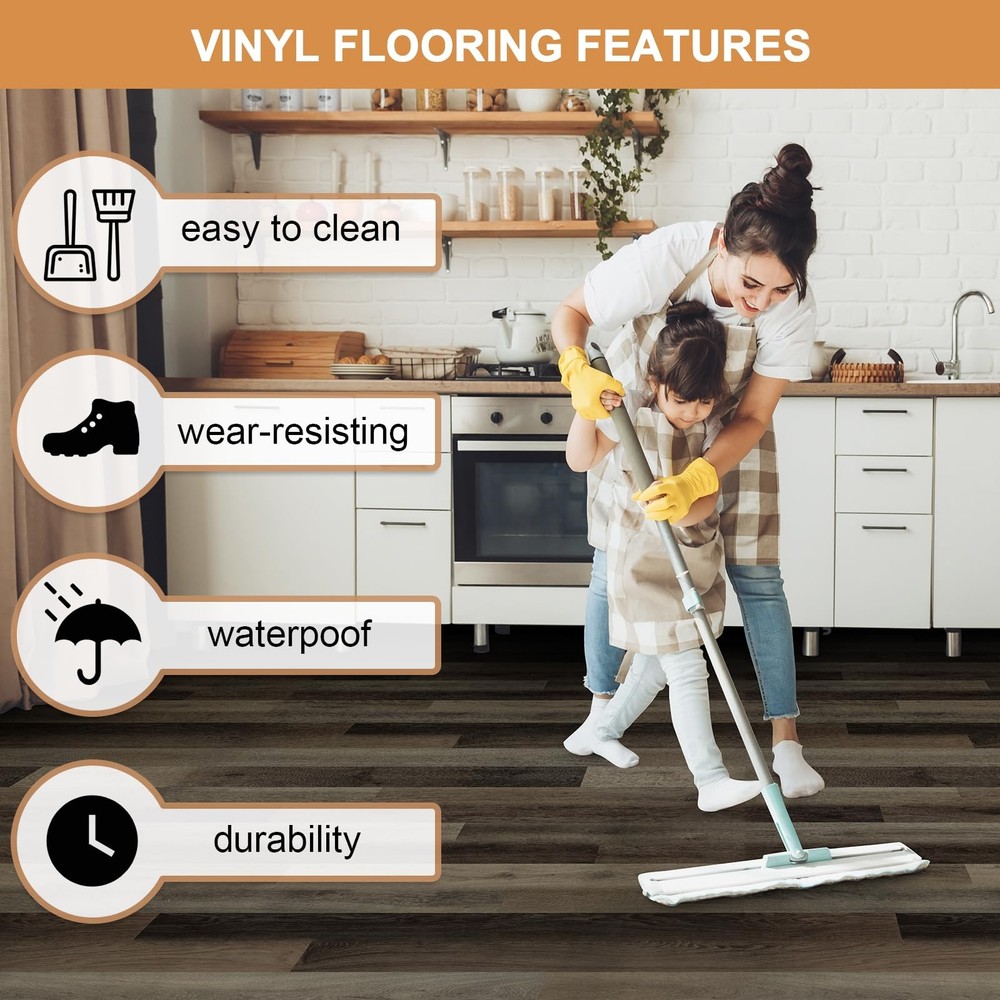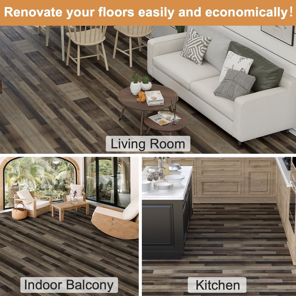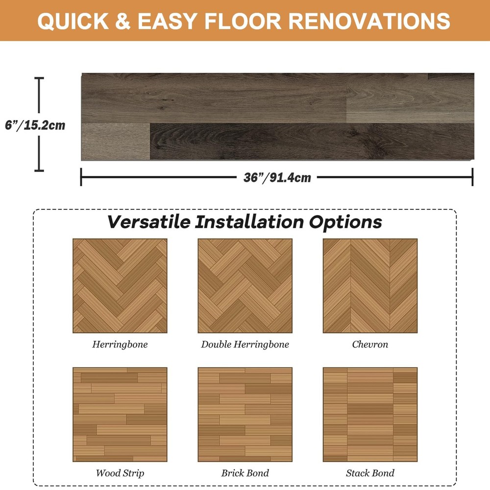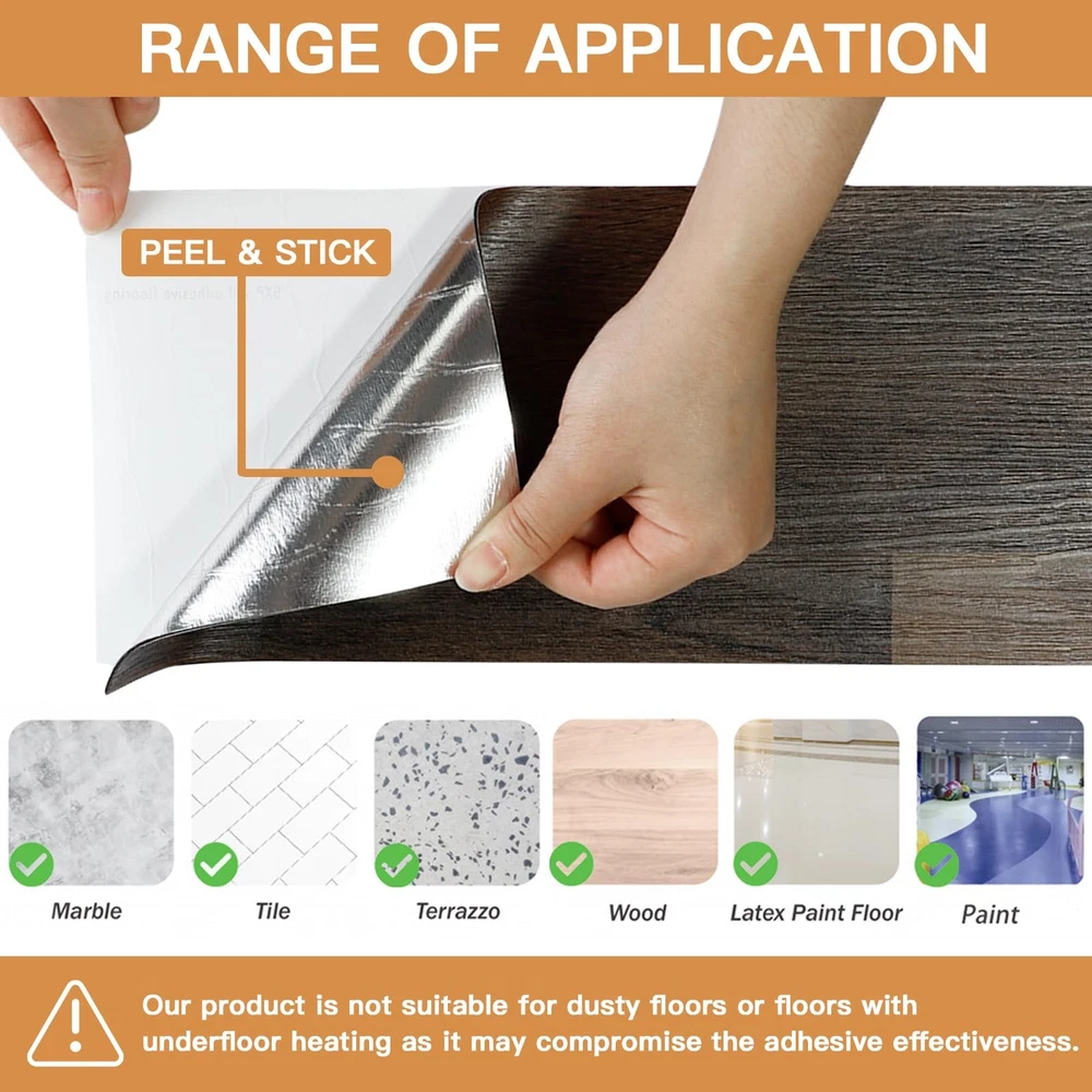 Transform your space with our Vintage Brick Pattern Vinyl Floor Tiles. Embrace the charm of American country style and create a nostalgic atmosphere in your home. These self-adhesive square floor stickers are not only easy to install but also resistant to water, making them ideal for kitchens, bathrooms, and more. Elevate your interior design with the timeless beauty of our Vintage Brick Pattern. Extra Thick Peel & Stick Floor Tiles: Transform Your Space with Ease! Upgrade your home's flooring with our Extra Thick Peel & Stick Vinyl Floor Tiles. At 1.5mm thickness, ensuring long-lasting quality and a luxurious feel underfoot. Self-adhesive Super Sticky: Effortless Installation, No Mess! Our self-adhesive backing means no messy glues or special tools needed. Just peel, stick, and enjoy a hassle-free, DIY flooring project. Our super sticky adhesive ensures these tiles stay in place, even in high-traffic areas. Waterproof & Durable: Built to Last, Easy to Clean! Crafted from multiple layers of high-quality materials, our floor tiles boast superior durability. The anti-friction layer enhances their longevity, while the waterproof layer makes them easy to clean and perfect for moisture-prone areas like bathrooms and kitchens. Vintage Style: Timeless Elegance for Any Room! Achieve a classic and timeless look with our Vintage Style Peel & Stick Floor Tiles. The intricate patterns and rich colors will complement any decor, adding charm and sophistication to your space. Introduction of Suitable Surfaces: These versatile floor tiles are perfect for transforming your toilet, kitchen, bathroom, balcony, and more. However, they require a flat, dust-free surface for optimal adhesion. Please note that they are not suitable for floors with underfloor heating. While the product is waterproof, be sure to promptly clean up any water accumulation on the surface for the best results. Upgrade your space effortlessly with our premium Peel & Stick Floor Tiles today!