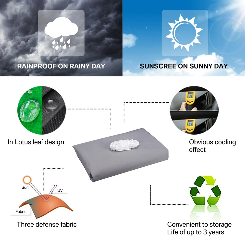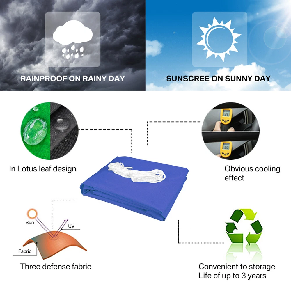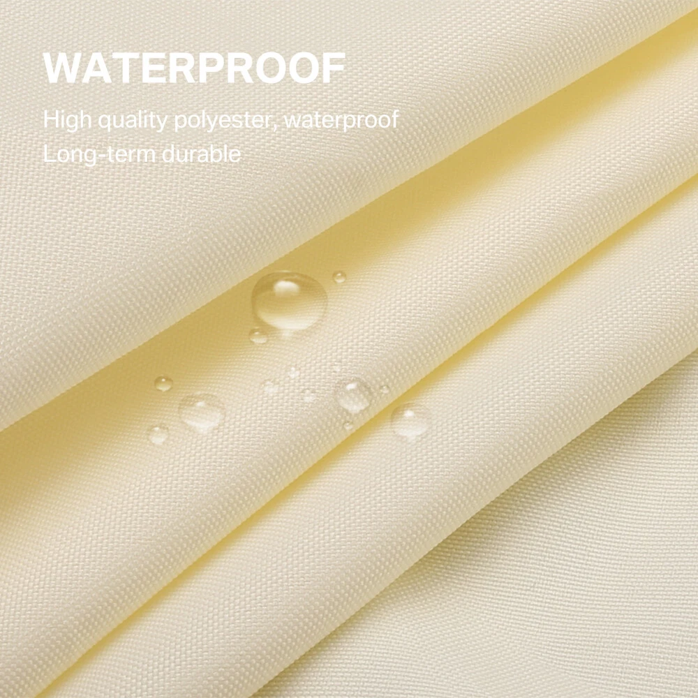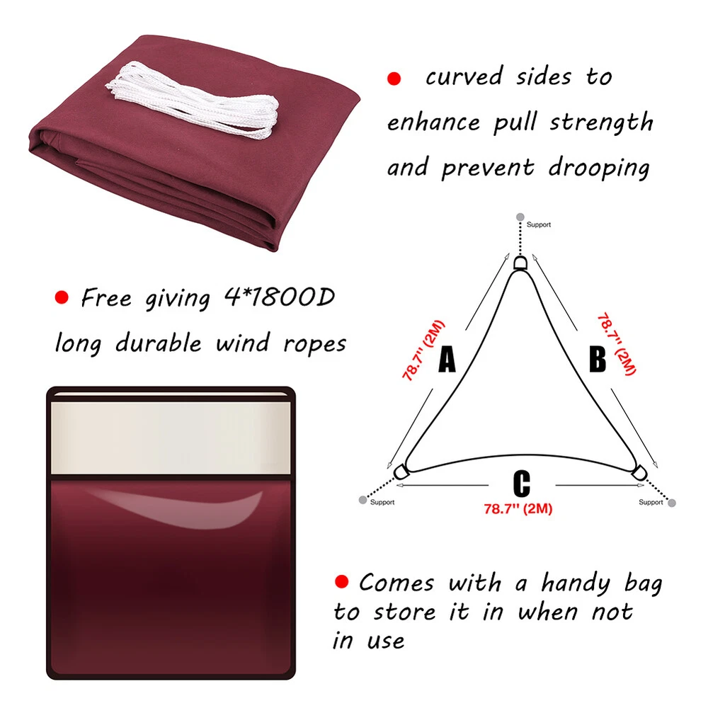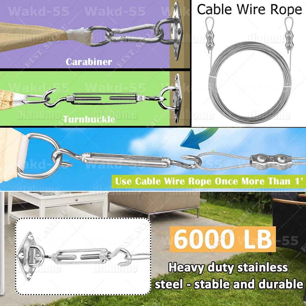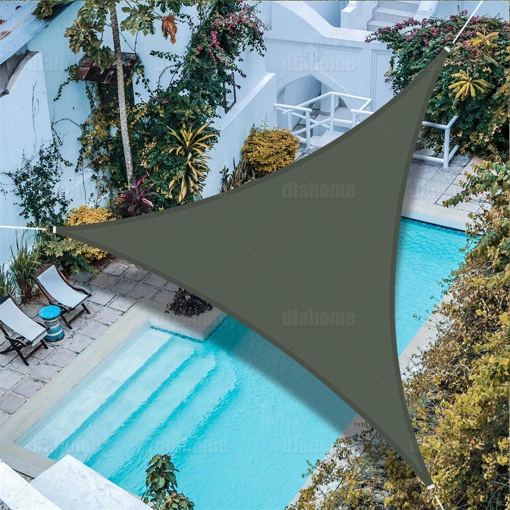 Descriptions: The Waterproof Sun Shade Sails Perfect for gardens, patios, swimming pools, BBQ areas and etc. Give you a cool and comfortable experience in the hot summer. It can also create a good mood for you in Rainy days. 【WATER RESISTANT】Sun shade sail is 300D high density polyester fabric with PU coating(160 g/m²), can withstand 2000MM water pressure. It's tear resistant, waterproof and weatherproof. But we don't suggest to use shade sail in heavy rain, continuous heavy rain may cause slight water seepage. 【MULTIFUNCTIONAL & DURABLE】Double stitched edges and reinforced corners, making both sides more robust. Our solar sail is suitable to be used in garden, backyard, patio, courtyard, carport, pergolas, swimming pool, balcony, terrace, camping trip, lawn or another outdoor area. Protecting your privacy safe. 【EASY TO INSTALL】Durable anti-rust D-ring is placed at the edge of the four corners, you can use ropes or fixing kits easily to fix it. We recommend that you adjust the angle of the garden shade sail to 20-40 degrees, it needs a certain angle to drain the rain to avoid damage the product due to excessive water. 【UV PROTECTION】Our outdoor awning can block 95% harmful UV. It can provides excellent shade on sunny days/rain days, give you a wonderful space to enjoy your time. 【PAKAGE CONTAIN】You will get Awning Canopy x1, Ropes x4/3 . Specification: Type: Waterproof shade sails Material: 300D Oxford cloth Material of D-Rings: Stainless Steel Color: Grey, Cream, Beige, Orange, Blue, Anthracite, Sand, Green, Terracotta Shape: Rectangle/Triangle/Square Ropes Length : 1.5m / 4.92 ft Features: Stainless Steel D Rings, Waterproof Waterproof Materials 160 gsm high density polyester with PU coating, water and tear resistant. The material is waterproof and can be protected from water even on rainy days. The material is more sturdy, thick fabric and braided rope, good windproof effect. High Quality Materials 95% UV protection Strong and high-quality materials, can be used in sunny and rainy days, not recommended for use in bad weather UV Protect This sun shade sail has a sunscreen coating that effectively prevents UV rays, blocks the sun, and prevents tanning.95% anti-UV effect, effectively blocking UV rays. Multiple Sizes in Varied Shapes: ## Triangle Sun Shade Sails Size ## 2 x 2 x 2M / 6.56 x 6.56 x 6.56 FT 3 x 3 x 3M / 9.84 x 9.84 x 9.84 FT 3.6 x 3.6 x 3.6M / 11.81 x 11.81 x 11.81 FT 5 x 5 x 5M / 16.40 x 16.40 x 16.40 FT ## Rectangle Sun Shade Sails Size ## 2 x 3 M / 6.56 x 9.84 FT 2 x 4 M / 6.56 x 13.12 FT 3 x 4 M / 9.84 x 13.12 FT 3 x 5 M / 9.84 x 16.40 FT 4 x 5 M / 13.12 x 16.40 FT 4 x 6 M / 13.12 x 19.68 FT ## Square Sun Shade Sails Size ## 2 x 2 M / 6.56 x 6.56 FT 3 x 3 M / 9.84 x 9.84 FT 3.6 x 3.6 M / 11.81 x 11.81 FT Package include 1x Waterproof shade sail with 3/4 Ropes The edge of the shade sail is curved, and the actual use area is about 10% less than the measured area. Please purchase with cautious,thank you. 【How-To Install a Shade Sail 】 The shade sail came with D ring & Wind ropes for you to be able to make the connections to the house/trees/other structure pretty easily. If you want to strengthen the fixing, you can buy a set of hardware from our store. How-Totighten the rope after installation/Buyer's Experience Sharing From the opposite corners, I assembled the proper length of wire rope with the thimble and clamp for the end, and attached to eye bolts in the trees with a turnbuckle to tighten the span. Once I had these four anchor points established and installed, the shade sail was in the proper position and I could tighten all four anchor points to get the desired tension.