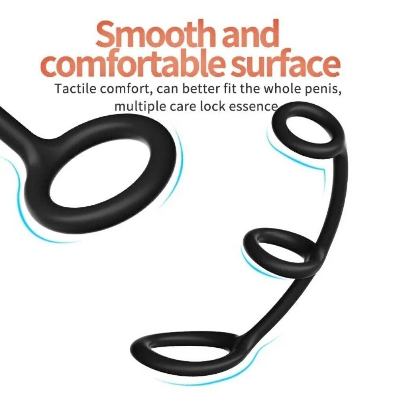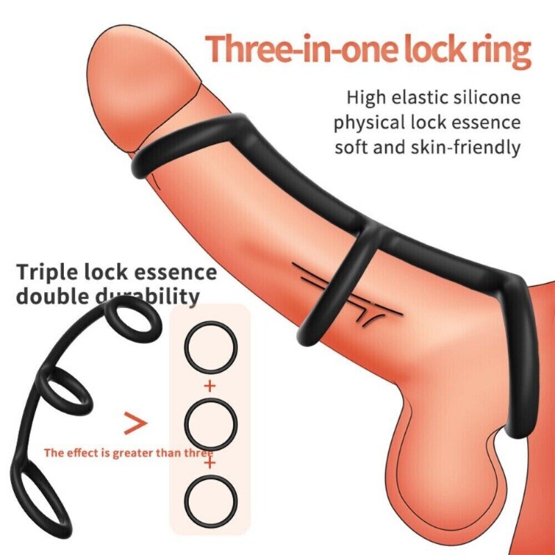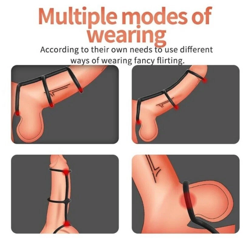 About the Product Ergonomic Design for Comfortable Wear: Enhance your experience with the triple Penis ring. Start by applying your favorite lubricant for added comfort. Then, follow the design to comfortably stretch the dual rings along the penile shaft. The larger ring wraps around the testicles to rest at the base of the penis, providing a snug and supportive fit. Clean the Penis ring with soapy water and pat dry after each use for optimal maintenance. Product Description Introducing the triple Penis ring, designed with triple ring support to extend your pleasure time. Engage in deep and prolonged intimacy with your partner! Simply slide this Penis ring slowly along your shaft, positioning it behind the balls for firm support and increased stamina. The elastic ring features top ridges that intensify pleasure with every thrust, ensuring a thrilling experience! Made from soft yet durable silicone material Innovative design targets the G-spot for heightened excitement Easy to wear at the base without affecting pleasure Bottom ring secures firmly for stability and minimal movement Cleaning is convenient with hot soapy water or specialized toy cleaning liquid; pat dry afterward. Use with your favorite water-based lubricant for enhanced effects Delivery Time Estimated delivery: 3-12 days (Note: eBay estimated time may vary)