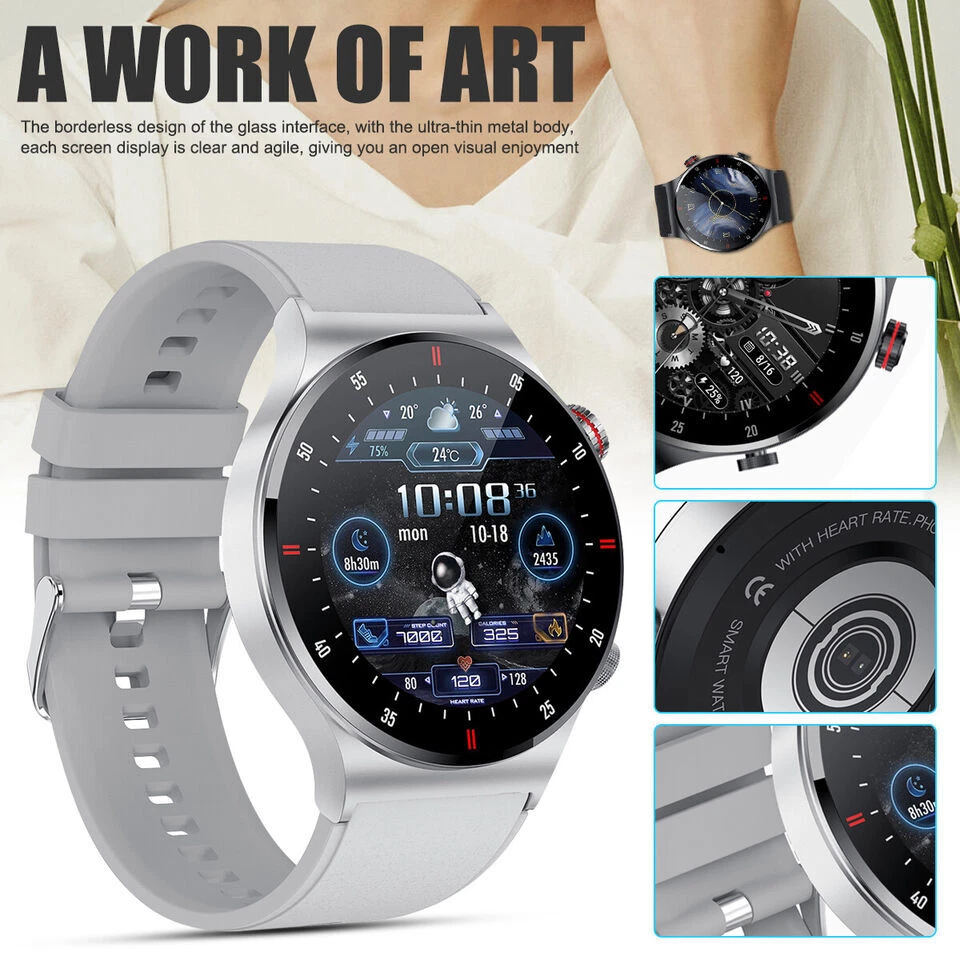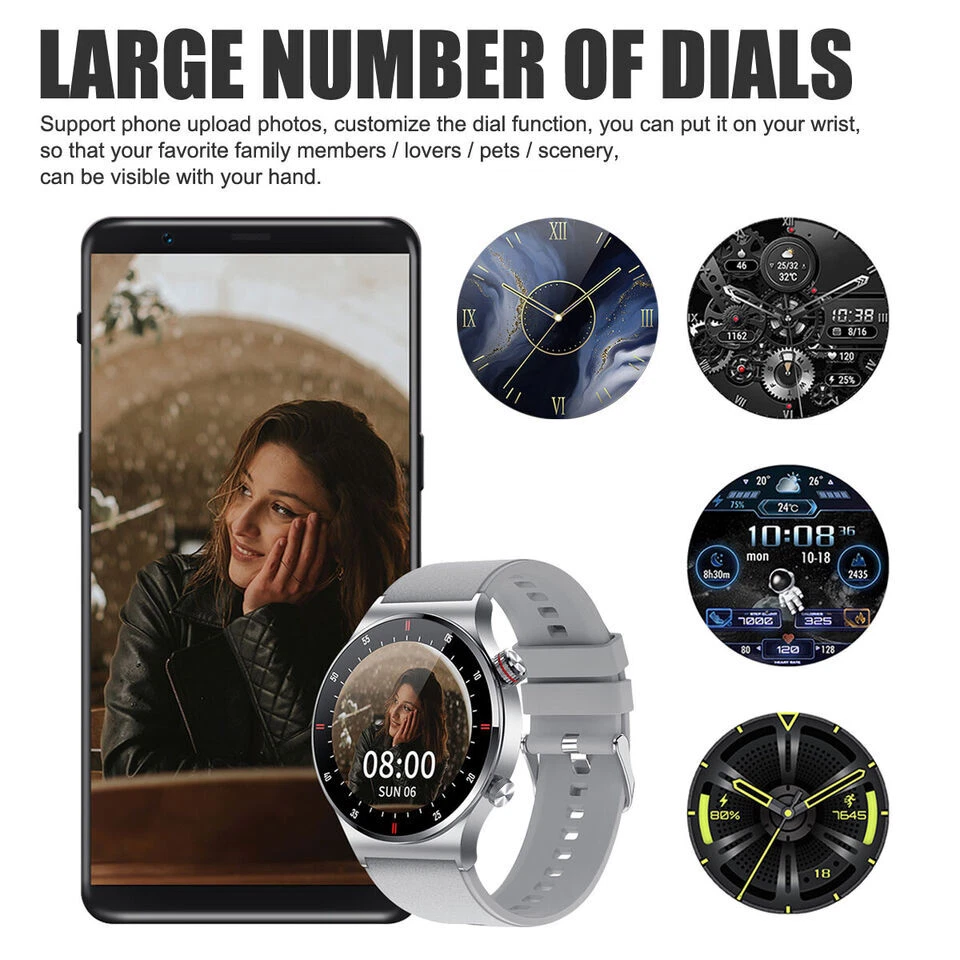 Product Description New Smart Watch Men Waterproof Smartwatch Bluetooth for iPhone Android Samsung A Features: ⏱ HD Touch Screen And Custom Dial: 1.3-inch HD color display with 240*240 resolution provides you with a high quality touch and visual experience. The brightness is adjustable, so you can easily read information in sunlight or in the dark. You can download the dial or customize the dial and set different styles according to different life scenarios to show your unique personality. ⏱ Smart Bluetooth Call And SMS Alerts: All messages and notifications are displayed on the watch and alert you via vibration, you can choose to answer or reject calls on the watch, you can also receive messages from Facebook, Twitter, Whatsapp, SMS, notification software (such as INS), so you won't miss important work phone messages. ⏱ Healthy Sleep And Heart Rate Monitoring: This stylish smartwatch monitors heart rate, blood pressure, blood oxygen, deep and light sleep status, analyzes sleep and helps you better understand your health. Rationalize your lifestyle. Warm tips: (This watch is not a medical device, measuring health data for reference only). ⏱ Multi-Functional Smart Notification: Sedentary reminder, alarm setting, remote control photo, weather display, stopwatch, music control, cell phone search, hand illuminated screen, female physiological cycle, step calculation, distance, calorie, heart rate/blood pressure/blood pressure/sleep monitoring, brightness adjustment and other functions. Support uploading picture customization, binding payment account can realize payment function, support offline sweeping code payment. ⏱ Multiple Sports Modes & IP67 Waterproof: 10 sports modes can help you better understand specific activity data. Sports modes include running, soccer, badminton, basketball, jump rope, swimming, climbing, cycling, running, walking, table tennis, etc. Easy to operate and switch, and immediately displayed on the screen to record. Adopt IP67 waterproof setting standard to avoid daily hand washing, sweat, rain and other splashes (Note: not for bathing, diving, etc.). ⏱ Support Devices And Long Battery Life: Our smartwatch is compatible with iOS 10.0 and above, Android 5.0 and above smartphones. Equipped with 260mAh large capacity battery, magnetic charging time is about 2 hours, and it can standby for about 15 days after fully charged for 5-7 days. ⏱ Support Languages : Simplified Chinese, English, Italian, Japanese, German, Spanish, French, Russian, Portuguese, Polish, Turkish, Greek, Hebrew, Czech, Hungarian, Arabic. ⏱APP Name: Fractional Dynamic Circle. Support languages: Russian, Bulgarian, Hungarian, Turkish, Hebrew, German, Italian, Czech, Slovak, Japanese, French, Polish, Thai, Simplified Chinese, Traditional Chinese, Finnish, English, Portuguese, Spanish, Arabic. Specifications: ⏱ Name: QW33 Men's Smart Watch. ⏱ Color: Black;Silver Gray ⏱ Strap: Standard 22MM ⏱ Material: Silicone Band ⏱ Touch Screen Mode: Full Touch. ⏱ Battery: Built-In 200MAH lithium-Ion Battery. ⏱ Waterproof Function: IP67. ⏱ Compatible System: Android 5.0/iOS10.0. ⏱ Charging Type: Magnetic Charging. ⏱ Display: 1.3 IPS, 240*240 Full Round Display. ⏱ Operating Time: 5-7 Days For Typical Scenarios, 15 Days Standby. Products Included: ⏱ 1× Smartwatch ⏱1× Charging Cable ⏱1× User Manual Payment Returns Contact Us Shipping Feedback 1. We only accept eBay payments. 2. All payments must be made within 3 days after auction won. Item may be returned for refund or replacement within 30 days of the purchase date. Returned merchandise must be unused, in original packaging and include all accessories. Shipping costs are non-refundable. Please do not hesitate to leave us your 5 Star ★★★★★ of DSR positive feedback if you are satisfaction with our products ,delivery or services . If you have Any Questions Or Unsatisfied with your purchase, please Email us firstly to get a better solution before you leave a neutral or negative feedback, we work hard to make sure every customer 100% satisfied and resolve anyproblem for you. Please email us first in the following situations: 1.The item can't work properly. 2.The item broken on the post. 3.You bought or received the wrong items. 4.You have not received your shipment within the period. 5.Before you give us Negative feedback. 6.Before you open a case/return on eBay. All questions will be replied within 24 hours (Except Saturday and Sunday or holidays). Thank you for your kindness! 1. eBay Payments Confirmed Addresses Only. 2. No Delivery to Alaska and Hawaii or PR. 3. No P.O. Box and APO/FPO Delivery. 4. Tracking Number will be provided. 5. Domestic shipping is within the 48 Contiguous States of United States, the delivery time is between 2 and 8 days. Items will be shipped by UPS, USPS or Fedex within 3 business day after receiving full payment. 6. International shipping is from China, the delivery time is between 10 and 30 working days. As a seller , Positive Feedback is very important to us. We try our best to let our customers to be happy. If you have any question about your order, please contact us ,please let us know before you Leave the Negative feedback ,We are willing to do our best to make up for it, Thank you very much ! Payment 1. We only accept eBay payments. 2. All payments must be made within 3 days after auction won. Returns Item may be returned for refund or replacement within 30 days of the purchase date. Returned merchandise must be unused, in original packaging and include all accessories. Shipping costs are non-refundable. Please do not hesitate to leave us your 5 Star ★★★★★ of DSR positive feedback if you are satisfaction with our products ,delivery or services . Contact Us If you have Any Questions Or Unsatisfied with your purchase, please Email us firstly to get a better solution before you leave a neutral or negative feedback, we work hard to make sure every customer 100% satisfied and r