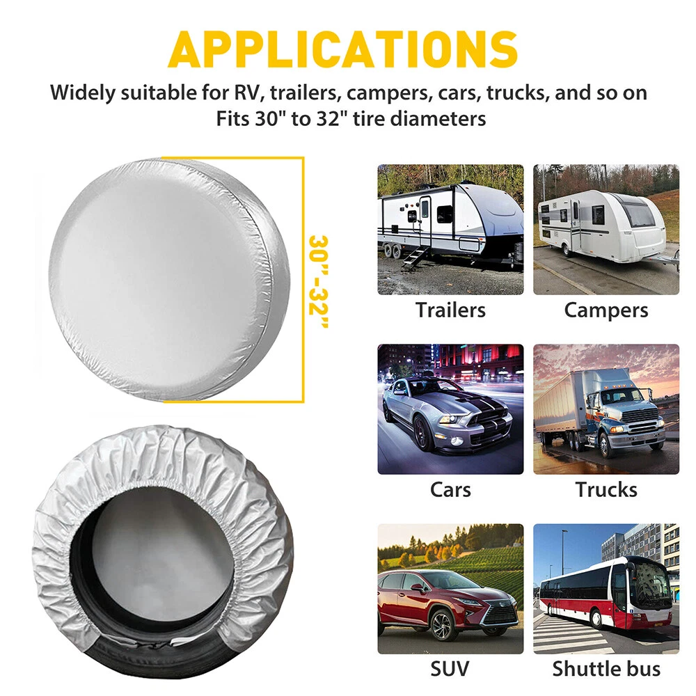 Specification: Product Packing: Oxford bag Quantity:Tire cover *4 Product color:silver Product material:190T Oxford fabric Product size:31.5 inch(80cm) Suitabel size: 30-32inch tires (outside diameter) Suitable model: General model(mainly depends on tire size) Truck, trailer, camper, RV, bus, SUV, car, etc Function: protect tires from dust, rust, corrosion, sunshade etc. Features: *Protection: Protect the tires from sun damage, ultraviolet,dirt,rust,corrosion when your vehicle is parked. *Superior material: The tire cover is made of Oxford fabric, which keeps your tires free of scratches in order to make your tires life more durable. Waterproof Tire Covers 8PCS Wheel & Tyre RV Trailer Camper Sun Protector 30-32" Specification: Product Packing: Oxford bag Quantity:Tire cover *4 Product color:silver Product material:190T Oxford fabric Product size:31.5 inch(80cm) Suitabel size: 30-32inch tires (outside diameter) Suitable model: General model(mainly depends on tire size) Truck, trailer, camper, RV, bus, SUV, car, etc Function: protect tires from dust, rust, corrosion, sunshade etc. Features: *Protection: Protect the tires from sun damage, ultraviolet,dirt,rust,corrosion when your vehicle is parked. *Superior material: The tire cover is made of Oxford fabric, which keeps your tires free of scratches in order to make your tires life more durable. *Hook design: Hook design keeps the tire cover stay on the wheel more solid especially in wild weather. *Production size: The size of cover is 80cm(31.5inch), fits tire size 30"-32". Please check the size before purchasing. Packaging Included: 4* Tire Covers. 1* Storage Bag Item Specifics Brand Unbranded Placement on Vehicle Front Left Rear Right Bundle Description Set of 4 Tire Covers Color Silver Product size 31.5 inch(80cm) Features Waterproof, Dustproof, Sun Protection, Easy to install Fit For RV, Trailers, Campers, Cars, Trucks and other automobiles Fit Vehicles 30-32inch tires (outside diameter) Material Polyester MPN Does Not Apply Type Wheel Tire Dustproof Covers Manufacturer Warranty One Year Warranty UPC 707638499212 FAQ ♥ If you have a decoding problem or any other problems, please contact us first, we will help you with it. We will reply you within 24 hours in working days. I'm a new seller, thanks a lot for your trust and convince! I will serve you with all my heart. ♥ Q1: Will this bulb fit my vehicle? A: We can match almost any vehicle to one of our bulb sizes. eBay only lets us include some vehicle fitments per listing, but if your vehicle does not show up on the compatibility table at the top of our listings, welcome you to contact us for free consulation before purchasing a product. Q2: My item has not arrived, what's taking so long? A: Sometimes items take longer than expected, especially if it’s going far or to rural area. Check with your post office to see if your item has been held up. Sometimes Royal Mail will not update a tracking number until it has arrived at its destination. If your item still don't arrive after a few days, let us know so we can double check for you and help solve it asap. Q3: My bulbs won't fit, help! A: Special bulb holder may be required. See if you can take the holder from the stock bulb. If not, let us know. The bulb size may be wrong, double check the item you received with the item you ordered. Do you have an aftermarket lighting housing? These may not be perfectly fitted for aftermarket bulbs and will require some manual modifications. Q4: Neither side lighting up? Both sides flicker, hyper flash, or work inconsistantly. A:Check the light fuses, and then check the ballast plugs to insure correct installation. If this doesn't work, there may be a voltage problem with the vehicle. You probably just need a relay or capacitor. Even though some bulbs are builtin resistors, they may still need a decoder. Pay & Ship (1). We gladly accepts payment via PayPal, We will ship your item(s) within 24 hours. (2). Before payment, please keep the consistency of Paypal address and ebay address. (3). Quantity orders are welcome! Returns (1). We offer 60 days free return policy. Please contact us within 60 days from the date you receive your order if you have any issues with the product or want return. Refund will be send after we got your resend package. (2). All returned items should be in the original packaging , return tracking information should be provided . Contact Us (1).Negative feedback will not help resolve any problems you have, please contact us via eBay messages before leaving negative feedback , our customer service will make best effort to help you with the issues. (2).We maintain high standards of excellenceand strive for 100% customer satisfaction! Feedback is very important to us. We request that you contact us immediately before you give us neutral or negative feedback, so that we can satisfactorily address your concerns. About us We're professional in car and motorcycle accessories, especially in LED bulbs. We have our own factory and R&D team. Our belief is to sell top quality items that fit your car and serve you with our heart. Anything please feel free to contact us! Our customer service is very responsibility. Come and follow us! DESCRIPTION NEW ARRIVED HOT SALE CONTACT US SAVE US Store Category Store Home Other Hot Item 30-32 Wheel Tire Covers Sun Protector for RV Truck Car Camper Trailer Waterproof USD 22.79 27"-29" Waterproof Wheel Tire Covers Sun Protector For Car RV Trailer SUV USD 18.99 30"-32" Wheel Waterproof Tire Sun Covers For Protector Car RV Trailer Silver SUV USD 23.99 4X Waterproof Covers Tire Wheel 30"- 32" Sun Protector Truck Car RV Trailer SUV USD 22.79 8PCS Wheel Tire Covers 27-29'' Tire Protector Cover Trailer Car Truck Waterproof USD 35.33 New List Item Tire Covers for RV Wheel Fits Tire Diameter 30"- 32" Oxford Waterproof Universal USD 23.99 30-32" Waterproof Wheel Tire Covers Sun Protector for Truck Car RV Trailer SUV USD 23.99 4X 30"-32" Trailer Tire Tyre Wheel Cov