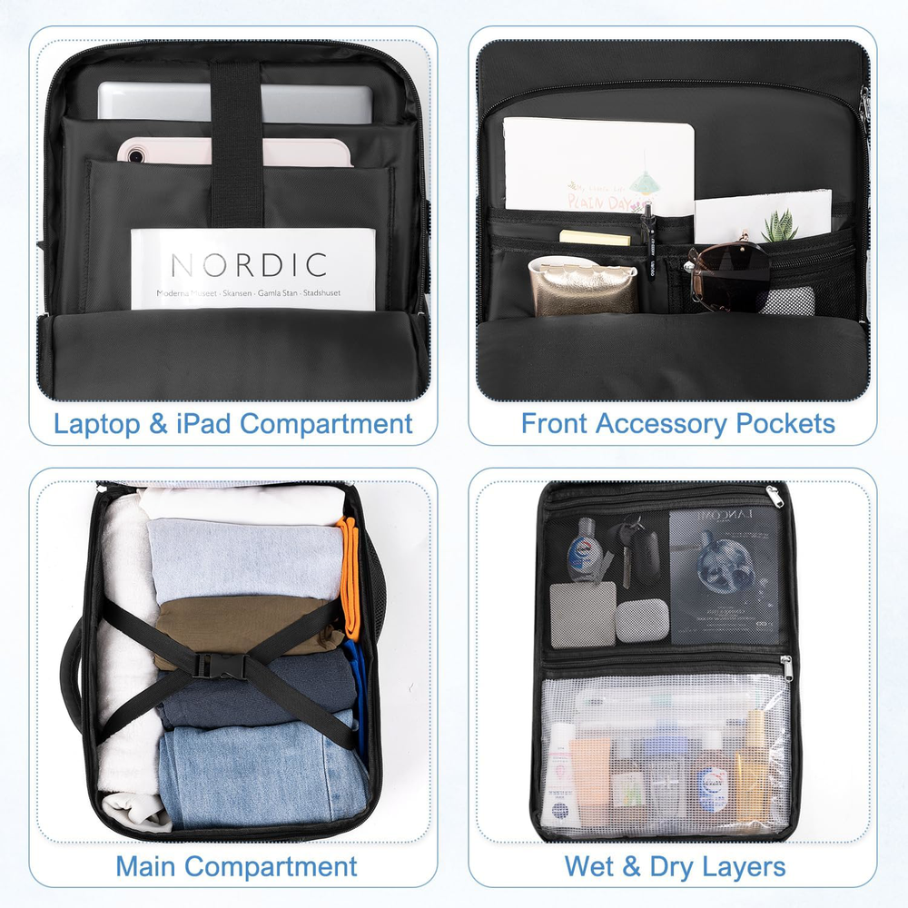 Waterproof Travel Backpack for Women, Carry-On Approved, 17" Laptop Bag