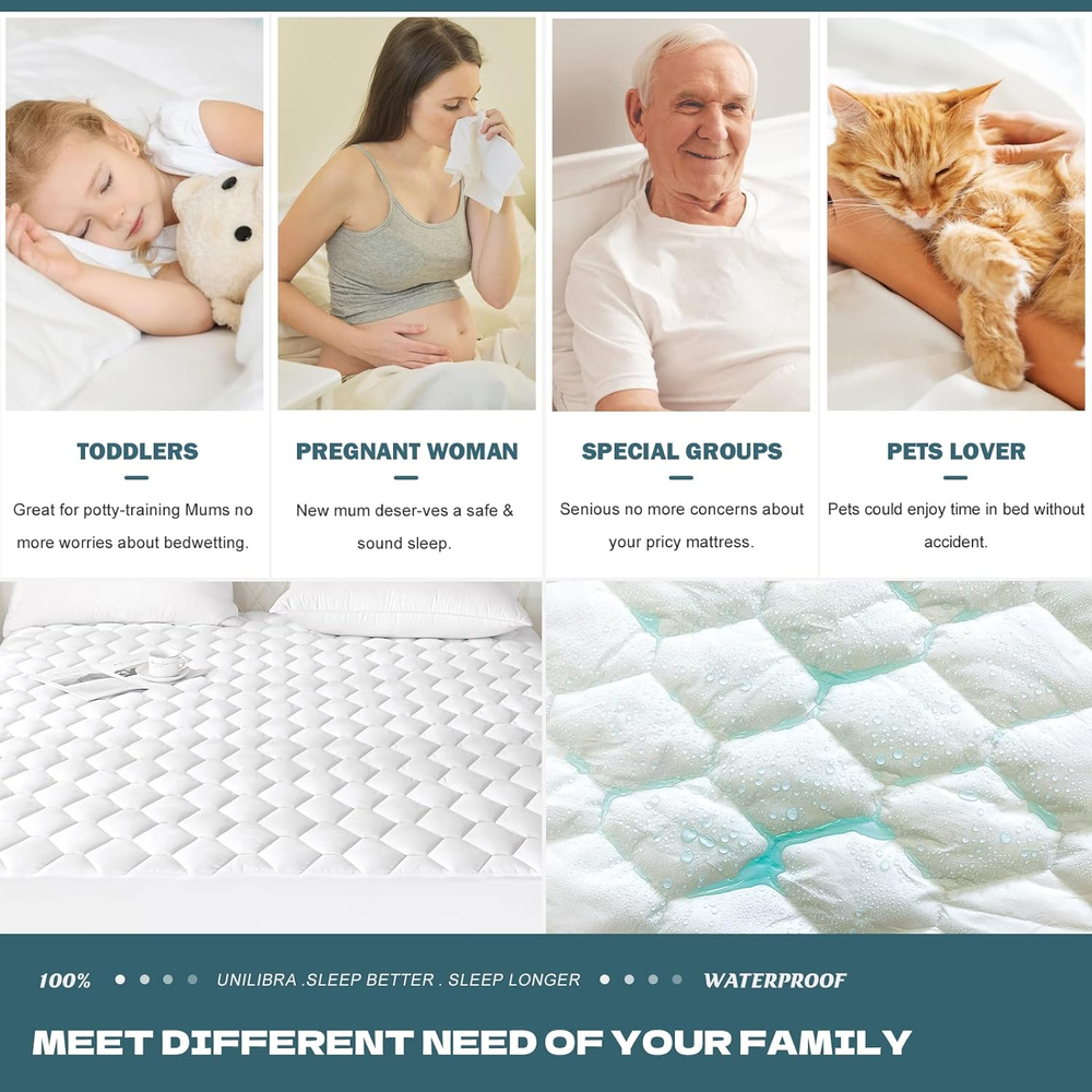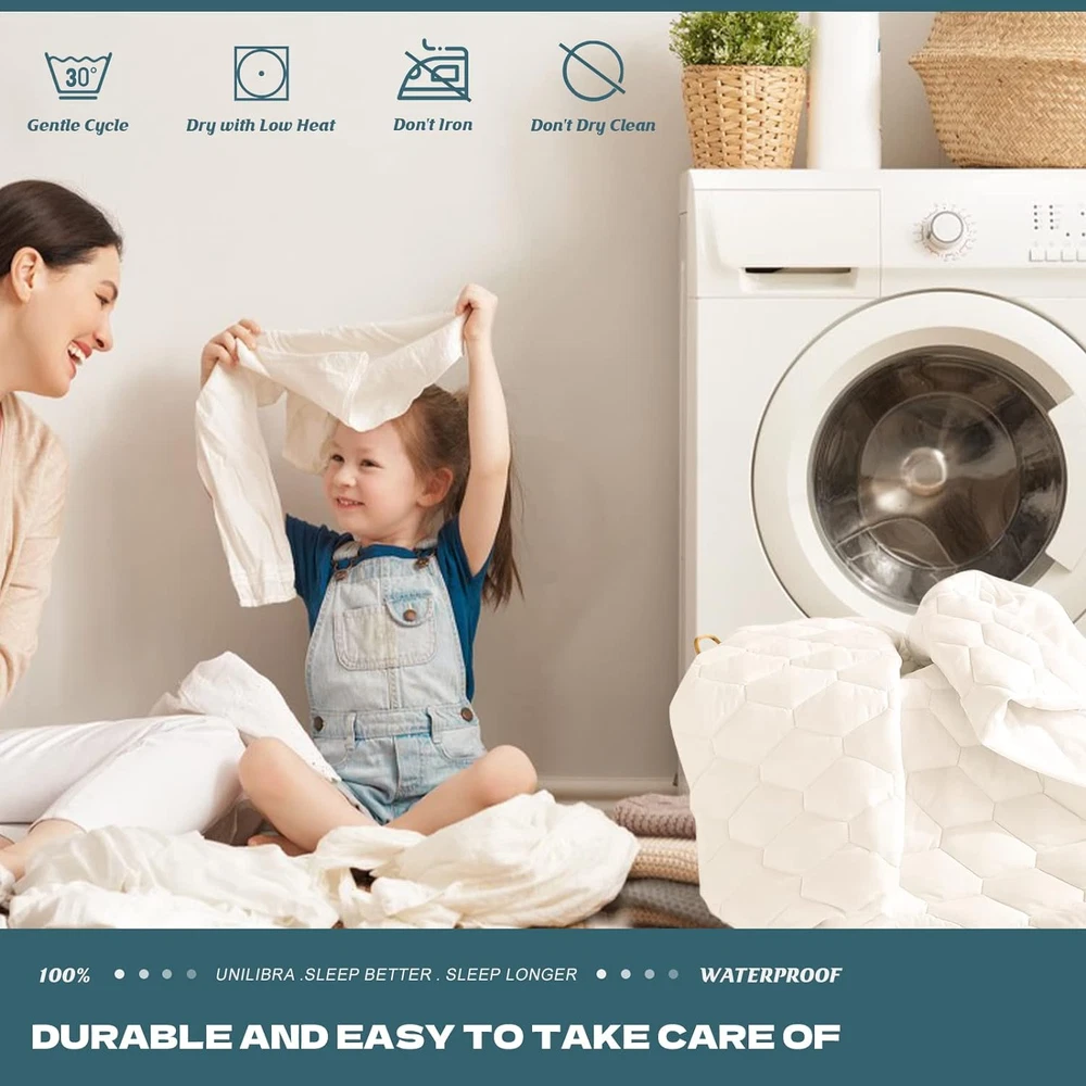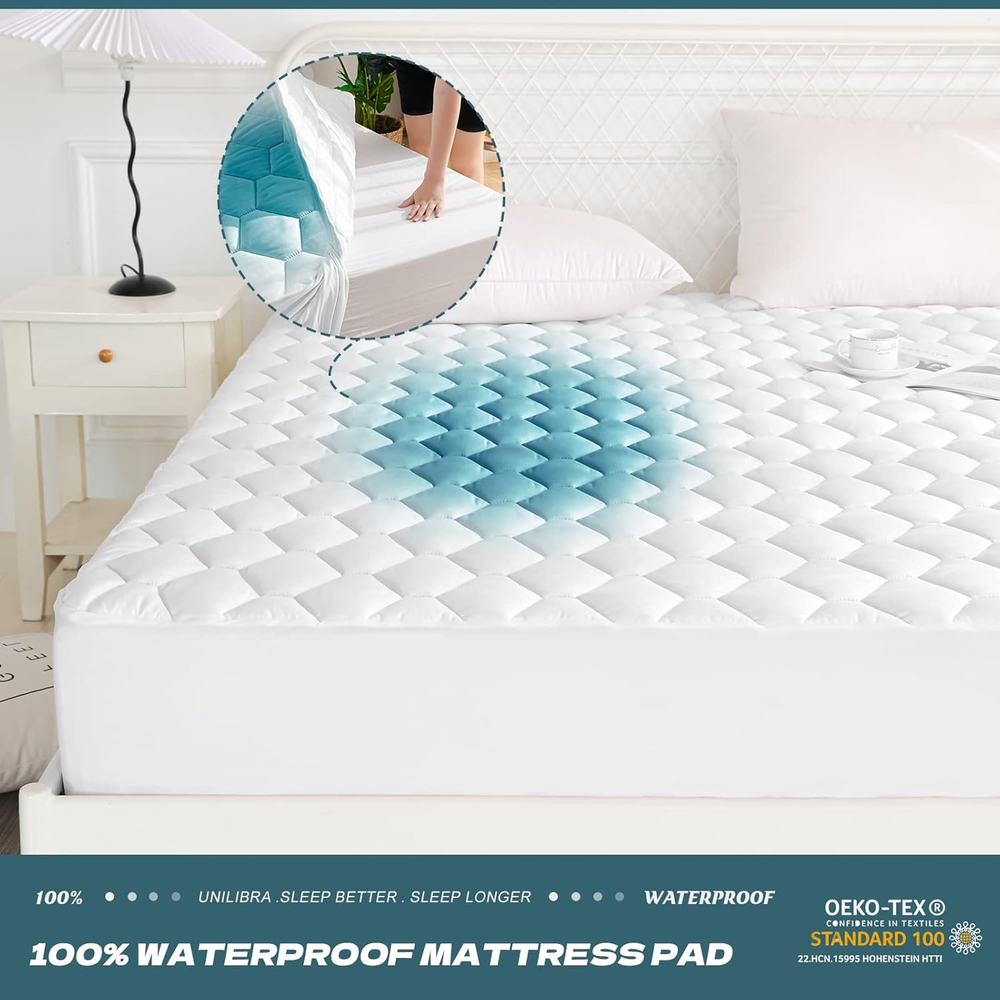 Store New Arrivals Add to Favorite View Feedback Contact Twin Mattress Cover Waterproof, Deep Pocket Mattress Pad Protector up to 18 Inches, Breathable Hollow Cotton Filling Quilted Fitted Mattress Topper Description Age Range Description Adult, Kid Style Microfiber White Mattress Pad Closure Type Pull On Color White Material Type Microfiber Fabric Type 80% Alternative Hollow Cotton/20% Microfiber Water Resistance Level Waterproof Size Twin Additional Features Durable,Waterproof Special Feature Durable,Waterproof Product Care Instructions Machine Wash ✅Certified & tested for harmful substances with OEKO-TEX STANDARD 100 requirements, products quality are proved to be guaranteed, bring you and your family a healthy sleep. ✅【100% Waterproof Mattress Pad】Backed up with fluid resistant TPU membrane layer,the twin mattress pad waterproof (39" X 75")is free of pvc, vinyl, effectively protect your dear mattress from moisture, sweat, urine and accidental spills. Great for those with kids, pets, postpartum women, and elderly people. ✅【Soft and Noiseless Mattress Protector】Covered with premium breathable microfiber and filled with thick hollow cotton,the twin waterproof mattress protector adds more softness to the mattress with no noise generated, supports you have a cozy and quiet sleep throughout the night, like a baby! ✅【Quilted & Elegant Design Waterproof Mattress Pad】The upgraded 4 layer twin mattress pad waterproof is made with advanced quilted techniques, durable enough to withstand hundreds of washes with no shrinking at all. The new and classic Hexagon design brings your mattress an elegant and fashionable appearance. ✅【Deep Pocket Twin Mattress Protector】Highly elastic and well-knitted skirt of the twin waterproof mattress protector fit the mattress from 6" to 18" tightly and protect all sides of your expensive mattress, no more frustration about slipping however you roll up. ✅【Machine Washable Mattress Pad】Our twin mattress pad washable is designed to save your time and efforts! Simply through it into the machine washable under gentle cycle. You will find that the waterproof mattress pad will keep excellent waterproofness after many washes! Product Description UNILIBRA Twin Size Waterproof Mattress Pad - Sleep Better Sleep Longer Are you annoyed with strange smell of your mattress after long use? Does your kid always have a night accident? Do you often enjoy brunch at bed? Knocks over a drink occasionally? UNILIBRA twin size waterproof mattress pad must be your best choice for sweet dream! Waterproof Twin Mattress Cover Protects Your Precious Mattress All Around Twin Waterproof Mattress Pad, Ultra Soft, NO Crinkling Noise, EASY Wash, Quality Guaranty. Let's GO & GET it! UNILIBRA Twin Size Mattress Pad Waterproof Brings you a Better Sleep! ABOUT US We offer the best prices around on high quality products. Our E-store includes media such as books, movies, music and games while offering electronics, toys, sporting apparel, clothing, tools, general home, garden items and more. SHIPPING We are always working hard to ensure your package arrives as soon as possible. Please understand that some factors like weather, high postal traffic, and the performance of shipping companies are outside of our control. We offer free shipping to the lower 48 states and ship within 2 business days of payment, usually sooner. We do not accept P.O. Boxes. Please provide a physical address. For shipping outside of the continental USA, we only use eBay's Global Shipping Program.The item is shipped to KY and then sent to the rest of the world. International customers are responsible for all duties and taxes. Continue to check out in order to calculate costs for shipping the item to your country. Messages regarding eBay's Global Shipping Program MUST be directed at eBay EXCLUSIVELY. RETURNS We offer a 30-Day Return Policy on items which you are not completely satisfied with. You have the option for a full-refund or an exchange of the item. No returns are available on items shipped outside of the USA. PAYMENT We accept PayPal. CONTACT US This page content is yet to come Please ad us to your favorite seller and visit again later Thank You CUSTOMER SATISFACTION We try our very best to make sure every customer is completely satisfied. If there's a problem, message us! We're happy to help. WE ACCEPT Copyright © 2021 AutoDS. | All Rights Reserved