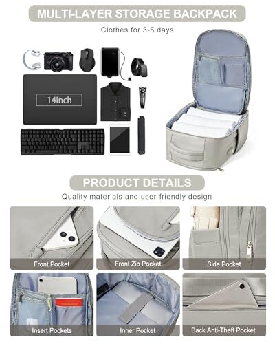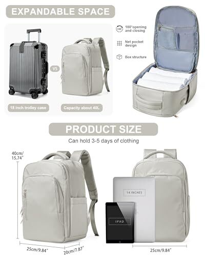This backpack is a game-changer for travel and daily use! It fits everything I need—laptop, clothes, and small essentials—thanks to its smart compartments and 40L capacity. The waterproof material keeps my stuff safe, and the USB charging port is super handy. Perfect for work, gym, or weekend trips. Fast shipping and reliable seller—highly recommend!