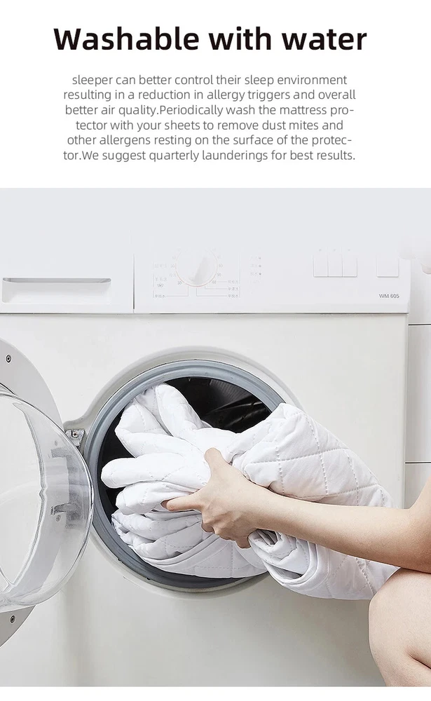 • 100% Polyester Material : Crafted from 100% polyester, this mattress protector cover offers a soft and comfortable touch, ensuring a good night's sleep. • Ultrasonic Feature : Equipped with an ultrasonic feature, it provides superior protection against dust, allergens, and bacteria, keeping your mattress clean and healthy. • Washable Design : The washable design of this mattress protector cover makes it easy to maintain and keep your mattress fresh and hygienic at all times. • Elastic Band Included : It comes with an elastic band that ensures the cover fits snugly on your mattress, providing full coverage and protection. • Origin : Mainland China • Versatile Use : Ideal for all types of mattresses, this protector cover is a versatile addition to any bedroom setting, enhancing the comfort and hygiene of your sleep space.