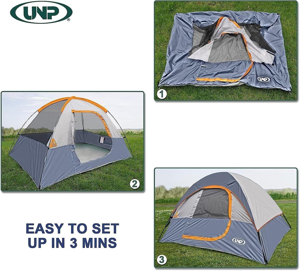 Product Description Camping Tent 4 Person, Waterproof Windproof Tent with Rainfly Easy Set up-Portable Dome Tents for Camping polyester Imported 【Lightweight & Big Space】: 9'L x 7' x 50"H. Spacious room for 4 adults.Standard size fits 1 full air mattress.And this 4 Person tent weighs just 7.7lb.It’s very easy to carry.This tent perfect for outdoor camping, hiking,climbing,indoor or backyard tent, fishing, or shelter at the beach in all weather. 【Windproof & Rainproof 】:The camping tent is made of stronger tear-resistant polyester.It come with a removable rainfly and two zippers designed for keeping the rain outside the tent. The ropes of tent and piles ensure safety and stability. 【Comfortable Design】:Skylight net and larger mesh window designed enhances breathability and comfortable. Interior storage pocket designed to keep your contents neat and organized, great ventilation and convenient for enjoying outdoor views and your free time. About Us We are a reputable seller with many years of experience selling on eBay. Our goal is to provide high-quality products and excellent customer service. Shipping Items will be shipped within 1-3 business days when we received payment. (Orders are not processed on weekends & holidays) Tracking information will be sent once item is shipped. Delivery time depends on destination and other factors Item is shipped to ebay address. Leaving correct address can minimize delay. For international shipping and shipping to Guam, Hawaii and Alaska, Please contact us before placing the order. International buyers please note: Import duties, taxes and charges are not included in the item price or shipping charges. These charges are buyer’s responsibility. We will try our best to reduce the risk of the custom duties. Local pick-up is unavailable at the moment. Contact Us We reply any email messages within 1 business / working days(off-duty at weekend). If you do not get a response from us, then please check your junk or spam mailbox. Our Business hours: Mon-Fri 9:00-18:00, UTC/GMT +8 hours. Please contact us either by clicking "contact seller" in the "purchase history" section or simply click "ask a question" at the bottom of this page. If you are unsatisfied with our item or service, please contact us before leaving any feedback. We are committed to resolve all issues in a friendly and satisfactory manner.