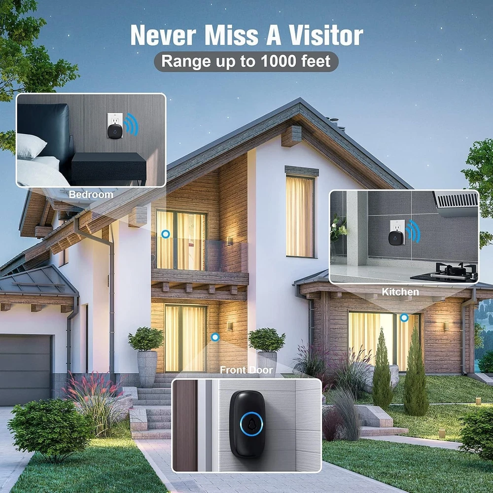 Waterproof Wireless Doorbell with 58 Melodies & Colorful LED - 2 Button System ‹ › ‹ › ‹ › ‹ › ‹ › ‹ › ‹ › ‹ › ‹ › Waterproof Wireless Doorbell Experience convenience and elegance with our Wireless Doorbell, featuring an array of 58 exquisite melodies and vibrant LED lights, designed to uplift any entryway. Key Features: Effortless Setup: Ready to work right out of the box. Simply plug the mini doorbell receiver into a socket, and place the button on the wall using double-sided tape or screws. Extended Range: Enjoy a long-range connection with advanced FM signal technology, ensuring a of up to 300 feet, free from interference. Customizable Experience: With 58 different chimes and 5 volume levels to choose from, select the perfect melody that complements your home without being bothersome. Weather Resistant: Crafted from high-quality waterproof materials, our doorbell button performs impeccably in all weather conditions – be it wind, snow, sleet, or extreme temperatures. Memory Function: The receiver remembers your last set melody and volume level even after a power outage, eliminating the hassle of resetting your preferences. Why Choose Our Wireless Doorbell? Elevate your home with a touch of sophistication and practical functionality. Our Waterproof Wireless Doorbell stands out not just for its remarkable design and myriad of enchanting melodies, but also for its durability and long-range capability. It's the perfect addition to any modern home, ensuring you never miss a visitor while elegantly announcing their arrival. Make every ring a delightful experience - secure your Wireless Doorbell today! Shipping Free & Fast Shipping - We offer free shipping to most of the USA with a normal delivery time of 3-7 days. However, due to the current situation, additional delivery time (up to 3 weeks) may be required for some items. Alternative Carriers - We may use alternative carriers (e.g. USPS, FedEx, UPS, etc.) to ensure your package arrives safely and on time. Due to the use of multiple carriers, we are unable to provide a tracking number automatically. Handling Time - Orders are processed and shipped within 1-2 business days of receiving cleared payment. Shipping Restrictions - Shipping to Alaska, Hawaii, Puerto Rico, Guam, and other US territories may incur shipping charges or delivery restrictions. Please contact us before ordering, or your order can be refunded/cancelled. State Restrictions - There may be restrictions based on your state of purchase. For example, certain items may not be shipped to California due to state regulations. Contact for Tracking Updates - If you require tracking updates or have any concerns about the delivery of your order, please feel free to contact us, and we will be happy to assist you. Return 30-Day Hassle-Free Returns - We want you to be completely satisfied with your purchase. If you are not, you can return the item within 30 days of receiving it for a full refund or exchange. Easy Return Process - To start a return, simply contact us and we will provide you with a prepaid return shipping label and detailed instructions. Restocking Fee - There are no restocking fees for returns. However, the buyer is responsible for return shipping costs if the return is not due to a seller's error. Refund Processing Time - Refunds will be processed within 5 business days of receiving the returned item in its condition. Payment We accept all major credit cards, PayPal, and Apple Pay for your convenience. Your payment information is secure and encrypted to ensure a safe and seamless transaction. Please complete your payment within 3 days of purchase to avoid any delays in shipping. Feedback Your feedback is extremely important to us. We strive to provide the best products and customer service possible. If you are satisfied with your purchase, please take a moment to leave us a positive review. If you have any concerns or issues with your order, please contact us before leaving negative feedback. We are committed to resolving any problems and ensuring your satisfaction. Contact Us If you have any questions or concerns, please feel free to out to our customer support team. You can contact us through the eBay messaging system. We are available Monday to Friday, 9:00 am to 5:00 pm EST, and we will do our best to respond to your inquiry within 24 hours. Buy it now and enjoy a pleasant shopping experience! Voltage: 120V Unit Quantity: 4.6 ounces Material: Plastic,ABS Features: Waterproof,Mute Mode,Memory Function,Energy-Saving LED Indicator,Adjustable Volume,Optional Ringtone Power Source: Battery,AC & Battery Items Included: Button,1 × Plug-in Receiver,2 × Adhesive Tape,4 × Screw,4 × Anchor,1 × User Manual Suitable For: Home,Classroom Type: Wireless Doorbell Connectivity: Wireless Number of Batteries: 1 Color: Black Finish: Matte Item Weight: 0.29 lb Style: Simple Design Button Material: Plastic Button Shape: Square Shape: Square Power: 120 W