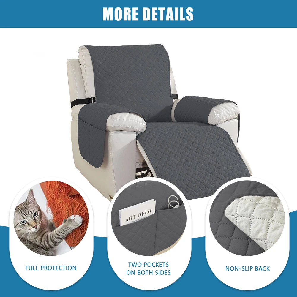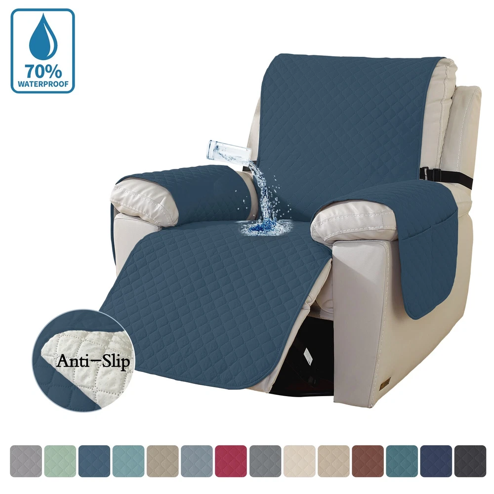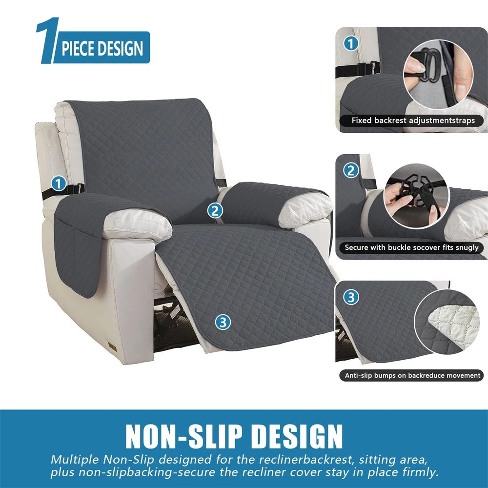 COMFORTABLE FABRIC: This recliner cover is made of high-quality fabric, which is comfortable and does not irritate the skin. This recliner cover fits recliner sofas with a recliner width of 23 inches, please measure your sofa before purchasing. Anti-slip design: There are anti-slip rubber particles on the back of the recliner cover, which increases friction and is not easy to fall off. And the recliner cover has an elastic straps, which can fix the recliner cover to the recliner nicely. The head and arm lengths of the recliner cover have also been extended. PROTECT YOUR RECLINER: This recliner cover is made of 100% waterproof fabric, perfect for protection from splashes, pet fur, normal wear and tear or any possible accident. It protects your recliner well and gives your old recliner a new look. EASY INSTALLATION: This recliner cover is easy to install and takes less time. Simply drape the recliner cover over the recliner, tie the elastic straps, and tuck any extra fabric into the gap. You can install it very well. EASY CARE: This recliner cover is directly machine washable and tumble dry. Please wash at around 30 degrees Celsius. Do not bleach. Do not iron.