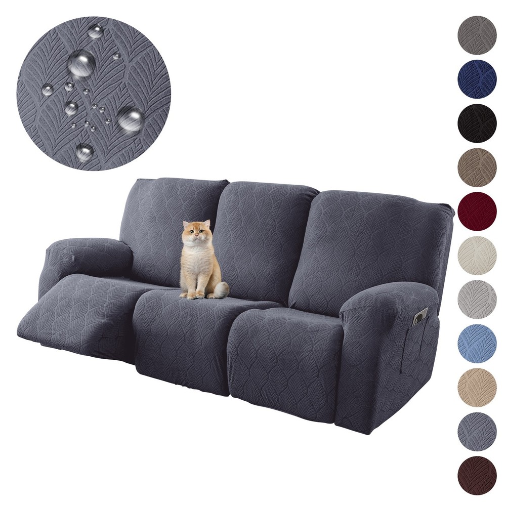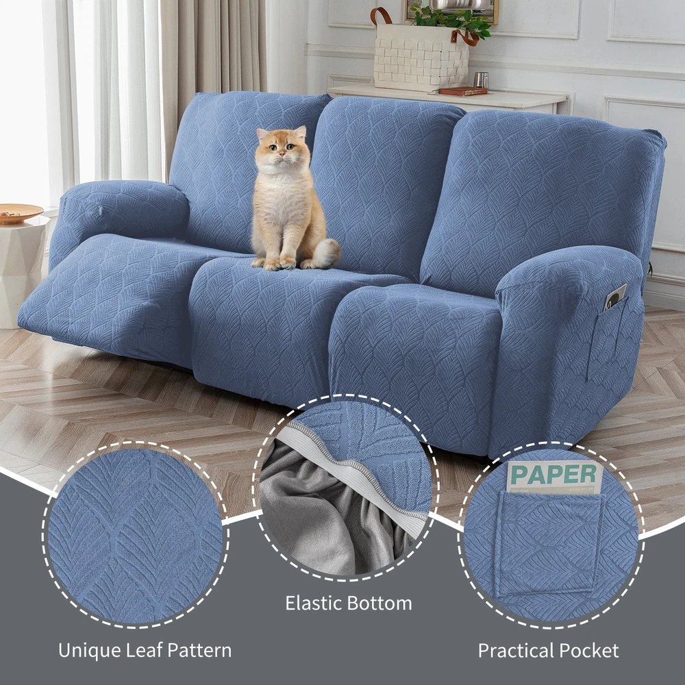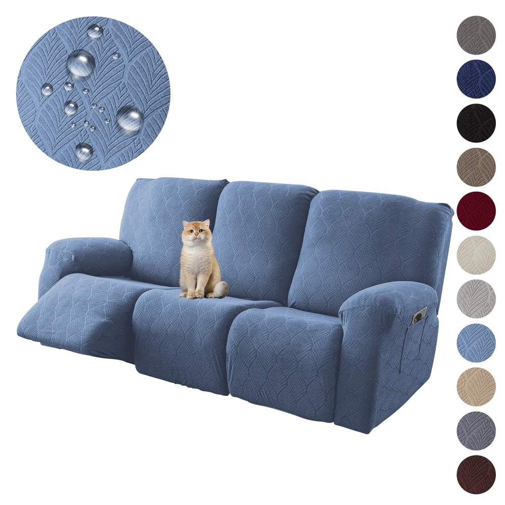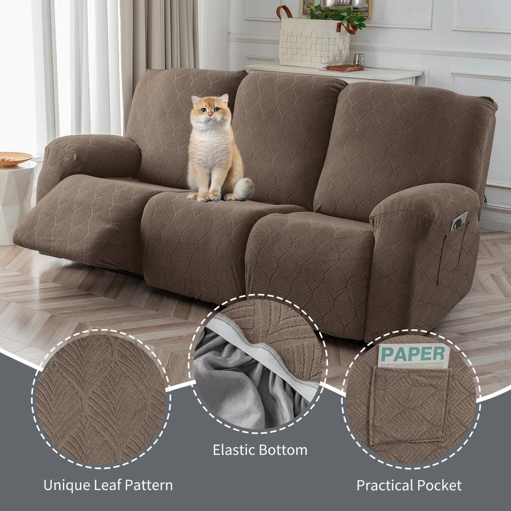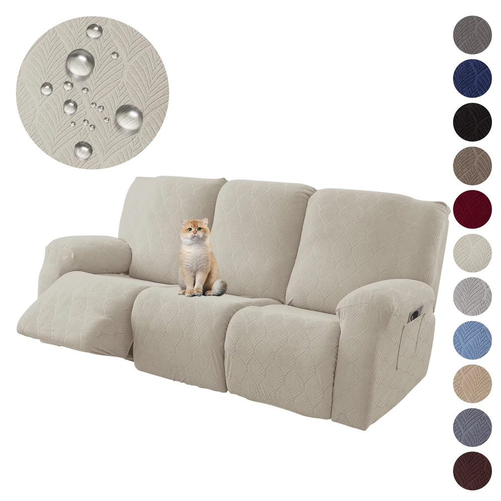 Material: Our leaf pattern recliner slipcovers are made of waterproof technology fabric that protects your sofa from accidental spills and everyday stains. Ideal for families with children and pets. Tips: Not completely waterproof (spills on sofa cover should be removed immediately) Packing list: Solid color 8-piece recliner cover includes 3 seat covers, 3 back covers and 2 arm covers. Suitable for sofa seat width 69-91 inches. Non-slip recliner cover: Personalized design, more than the ordinary one-piece recliner cover. We also come with a thick elastic that covers the bottom edge nicely for full protection, so you don't have to adjust after sitting. Easy to install (reference photo on product page). Full protection: Our farmhouse solid color recliner covers are designed with full coverage to protect your recliner from all sides. Our recliner covers come with side pockets for easy storage on your recliner. Maintenance instructions: cold water gentle machine wash. Do not bleach. When drying, use roller to dry at low temperature or sun dry or air dry.