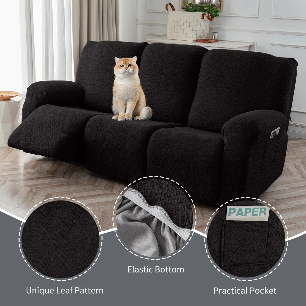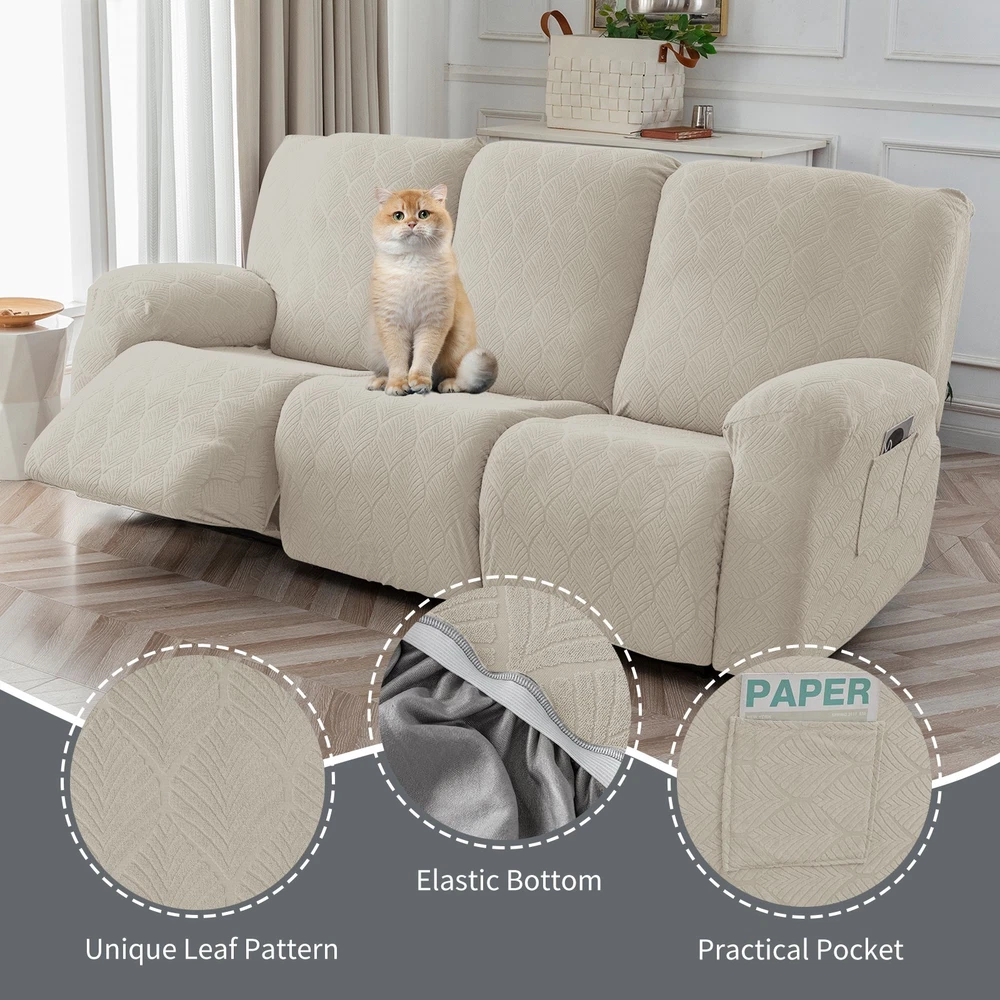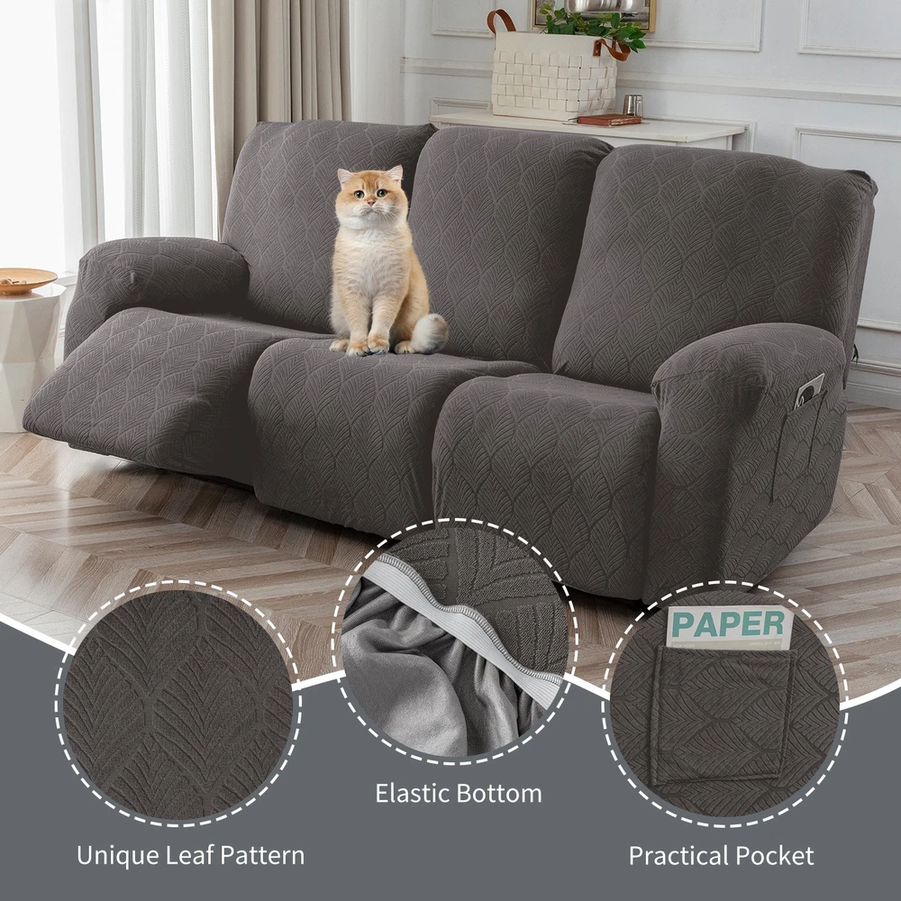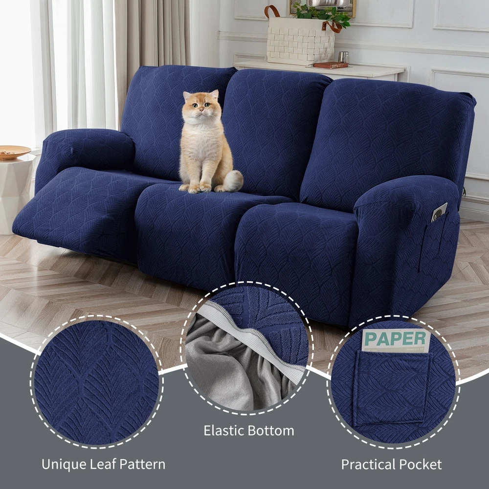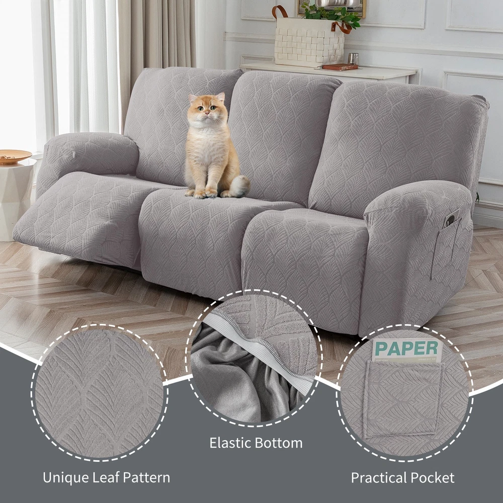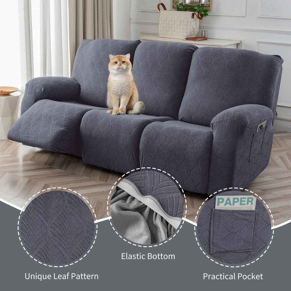 Material: Our leaf pattern recliner slipcovers are made of waterproof technology fabric that protects your sofa from accidental spills and everyday stains. Ideal for families with children and pets. Tips: Not completely waterproof (spills on sofa cover should be removed immediately) Packing list: Solid color 8-piece recliner cover includes 3 seat covers, 3 back covers and 2 arm covers. Suitable for sofa seat width 69-91 inches. Non-slip recliner cover: Personalized design, more than the ordinary one-piece recliner cover. We also come with a thick elastic that covers the bottom edge nicely for full protection, so you don't have to adjust after sitting. Easy to install (reference photo on product page). Full protection: Our farmhouse solid color recliner covers are designed with full coverage to protect your recliner from all sides. Our recliner covers come with side pockets for easy storage on your recliner. Maintenance instructions: cold water gentle machine wash. Do not bleach. When drying, use roller to dry at low temperature or sun dry or air dry.