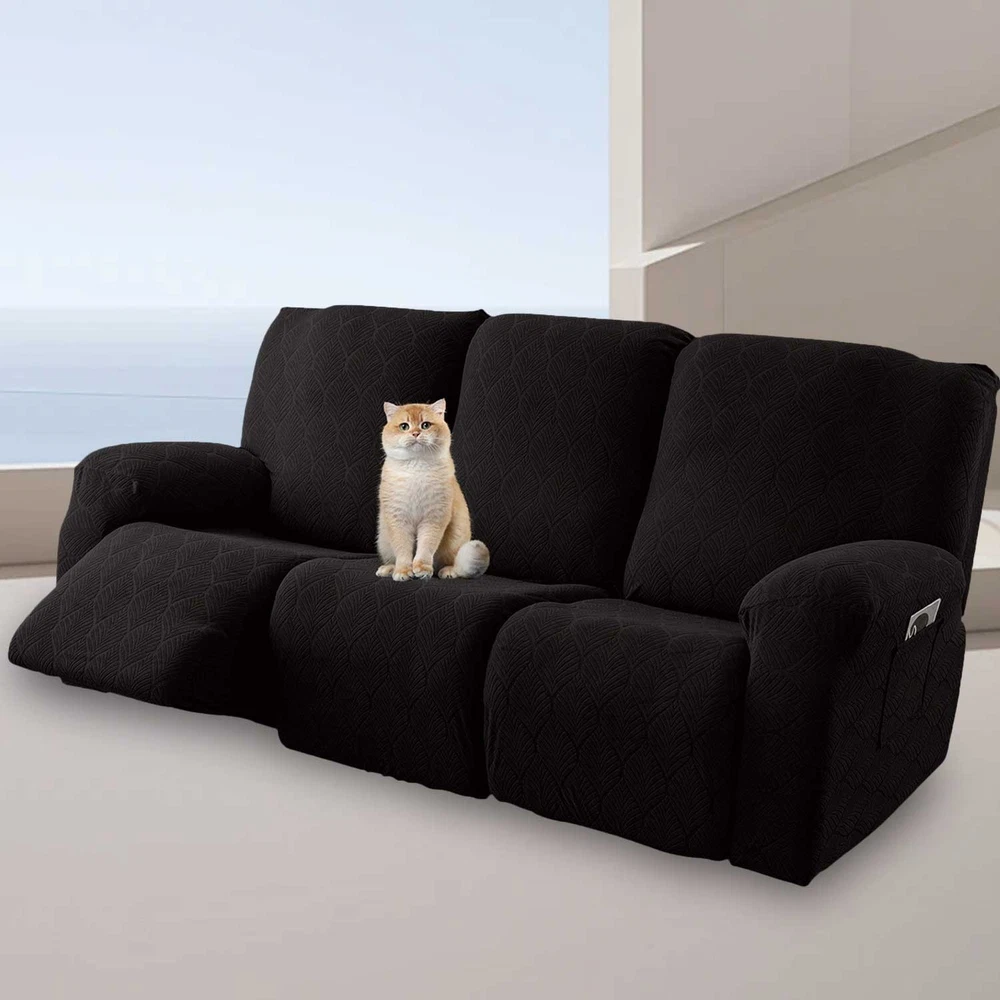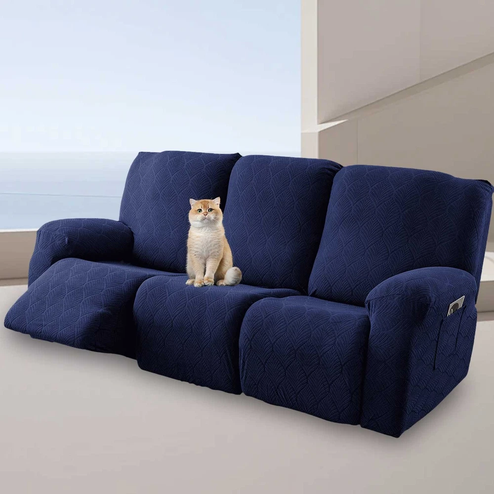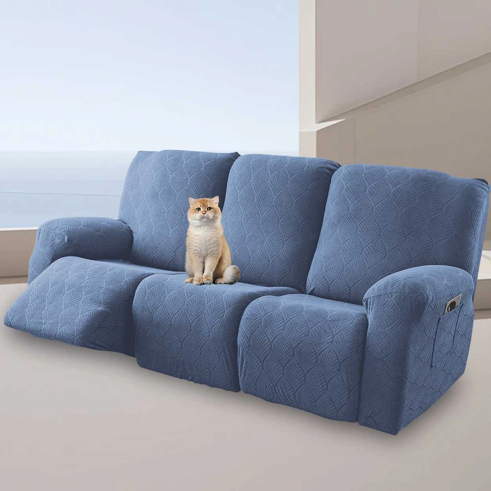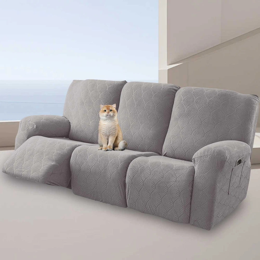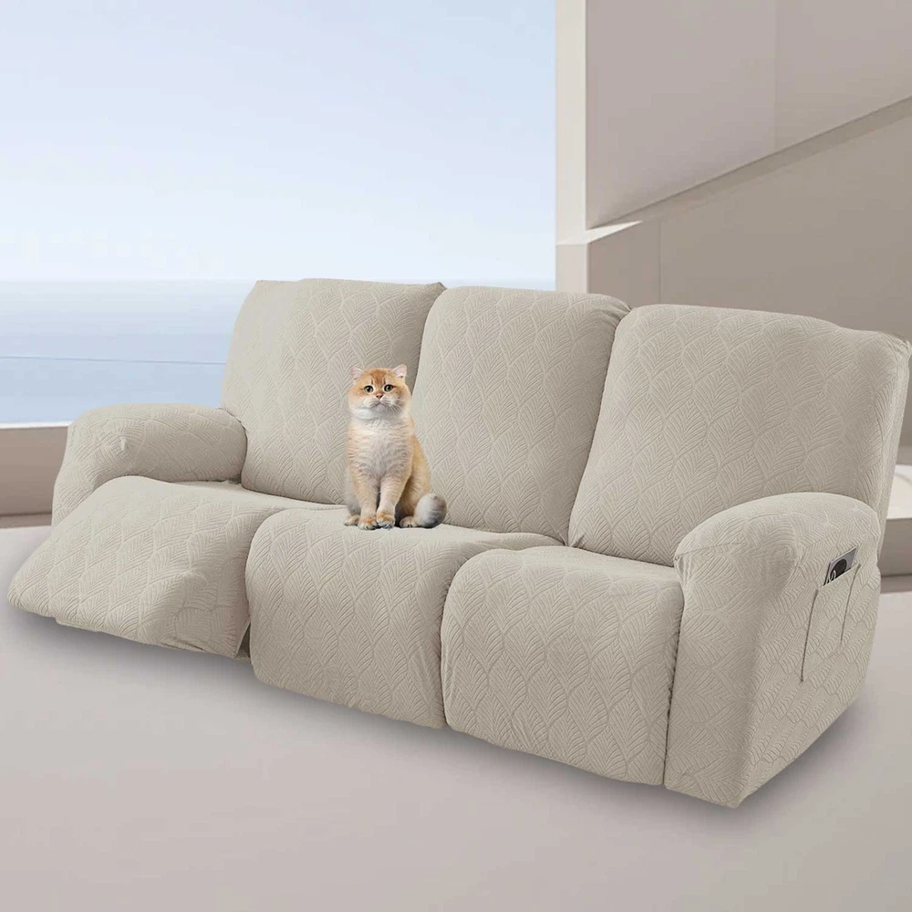 Material: Our leaf pattern recliner slipcovers are made of waterproof technology fabric that protects your sofa from accidental spills and everyday stains. Ideal for families with children and pets. Tips: Not completely waterproof (spills on sofa cover should be removed immediately) Packing list: Solid color 8-piece recliner cover includes 3 seat covers, 3 back covers and 2 arm covers. Suitable for sofa seat width 69-91 inches. Non-slip recliner cover: Personalized design, more than the ordinary one-piece recliner cover. We also come with a thick elastic that covers the bottom edge nicely for full protection, so you don't have to adjust after sitting. Easy to install (reference photo on product page). Full protection: Our farmhouse solid color recliner covers are designed with full coverage to protect your recliner from all sides. Our recliner covers come with side pockets for easy storage on your recliner. Maintenance instructions: cold water gentle machine wash. Do not bleach. When drying, use roller to dry at low temperature or sun dry or air dry.
