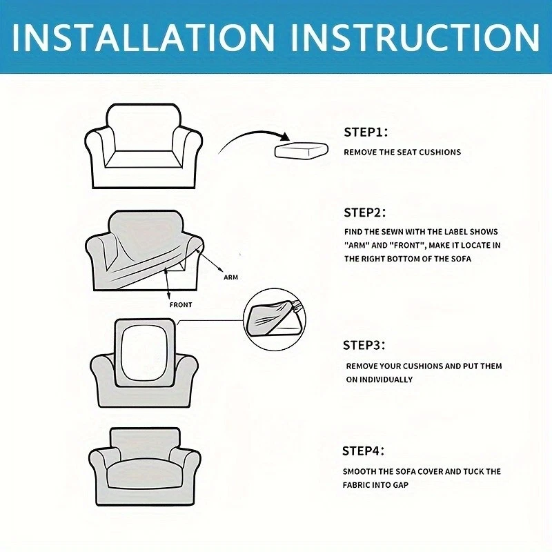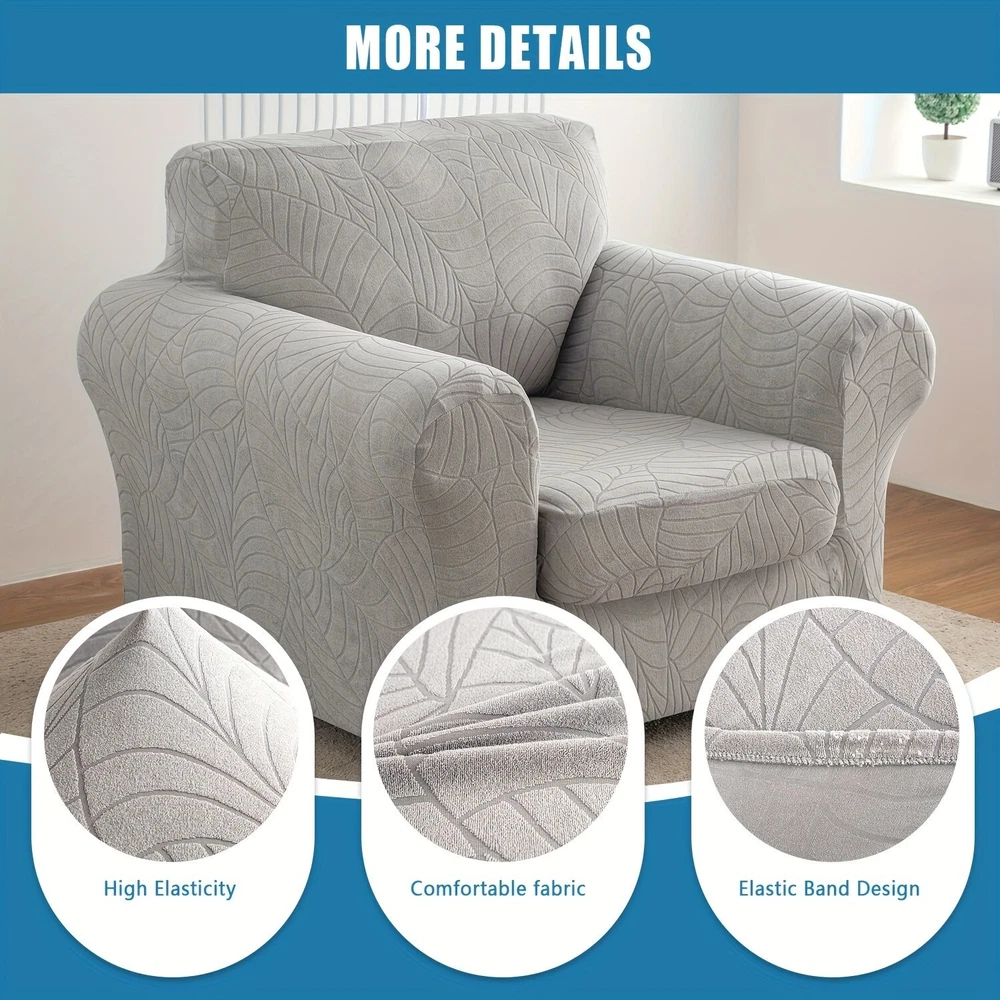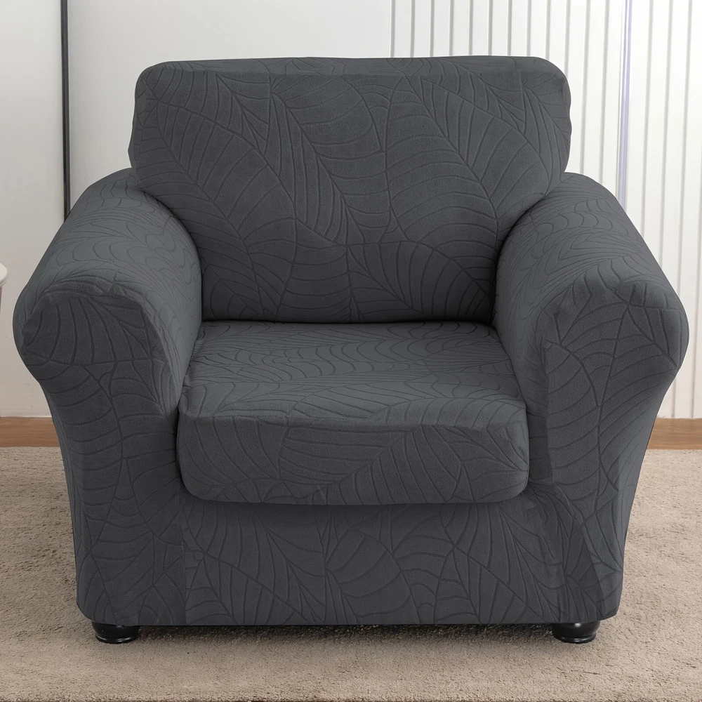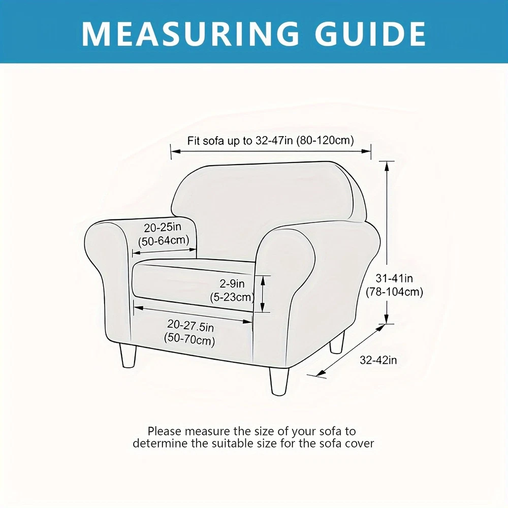 High quality material: the living room chair cover is made of 92% polyester and 8% spandex, elastic and durable; Soft and comfortable. Our versatile sofa covers are highly flexible and can be applied more flexibly to a variety of sofas such as T-shaped sofas, box sofas, high-back sofas, small and oversized leather sofas. The improved thick cloth is more durable. 2-piece set design: The chair cover is a 2-piece design, including a base cover and a cushion cover. Covering the cushion separately not only tucks excess fabric under the cushion, but also solves the problem of rebound. Non-slip sofa cover is suitable for sitting between 31-49 inches wide. Measure your furniture before buying. Comprehensive protection: The universal slipcover provides 360-degree protection for your sofa from everyday stains, accidental tears, scratches or bites. Sofa furniture cover can also turn your old, worn sofa into the centerpiece of your living room. Our sofa slipcovers are especially suitable for families with children and pets, saving you money by extending the life of your sofa. Stay in place: The elastic band is constructed with a thick elastic band that covers the bottom edge well for full protection. Strong elastic edges at the bottom keep your slipcover in place without sliding and tucking in. Individual cushion covers help the furniture stay tight, won't snag, and won't wrinkle. This non-slip sofa cover looks upscale and stylish, providing a decorative purpose for your sofa and living room while reflecting the original shape of the furniture. Installation and maintenance: Furniture protective covers with cushion covers are very easy to put on and take off. Refer to the installation guide in our picture, you can complete the installation by one person in a short time. This freestanding slipcover is easy to care for, simply cleaning the dirty cushion cover instead of the entire furniture set. Can be gently washed in cold water, do not bleach. 观。请勿使用漂白剂;单独用冷水轻柔洗涤。