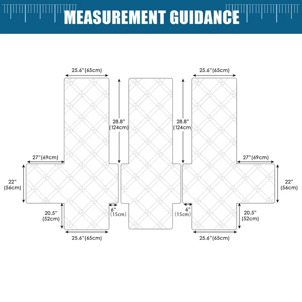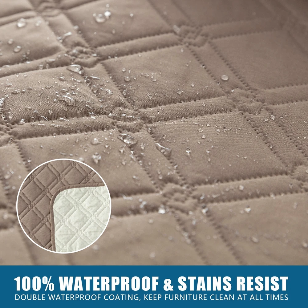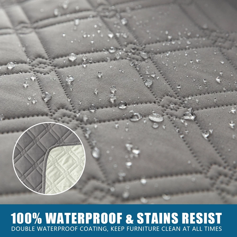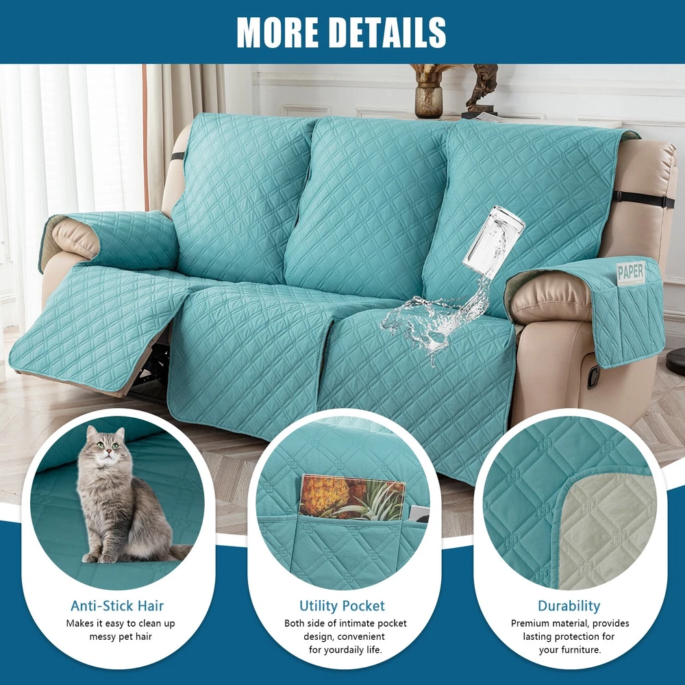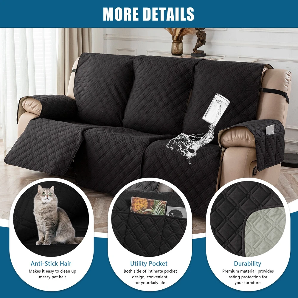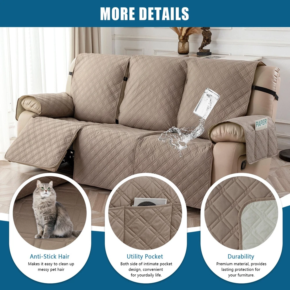 Anti-Slip Waterproof Non-Slip Design: The round silicone rubber backing of the recliner couch cover is designed to make the reclining couch covers more firmly stay in your sitting area. Elastic straps and non-slip buckles are included in each sofa recliner cover to stabilize the seat and prevent the back of the recliner from slipping off. Water-Resistant & Durable: The couch cover for reclining couch 3 seat consists of 3-layered quilted fabric, thick microfiber, and thick poly foam filling for extra comfort and softness. 100% waterproof reclining couch cover for pets protects your furniture from everyday wears and tears, leaks and stains. Dimension Guide: The recliner furniture covers protectors loveseat fits a seat width of 48 in. (2 pieces design, 23" per seat size). Recliner sofa fits a seat width of 72 in. (3 pieces design, 23" per seat size). Please measure before purchasing, see measuring guide in photo. Furniture Cover Protector: Couch covers for 3 cushion couch sofa recliner set are perfect for protecting your furniture from kids, scratches and fur from pets, dogs or accidental leaks. The unique diamond pattern design gives your old furniture brand new look. Enjoy fun time with your pets and children. Easy Installation & Care: Genina couch protector for dogs is effortless to install, use our picture installation guide to ensure a good fit (package includes installation instructions). Machine washable, gentle wash, do not bleach and iron.