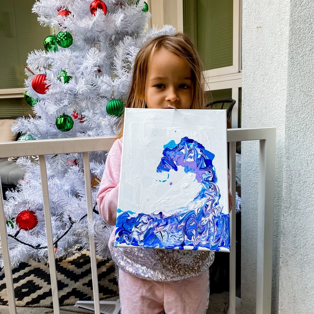 Wall Art Canvas Painting "The Wave" Size 12" x 9" from a young artist of my daughter, all the proceeds will go to her gifts and dreams - help the creativity of a little girl (4 years old) to believe in miracles Welcome to my shop @MargaryShopUSA Look more my original artworks Materials: high quality acrylic paints, stretch canvas Original Artwork Shipping: high-quality protective packaging with tracking number Sides are painted, ready to hang On the front and back sides of the textured wall art - the author's signature. Wrapped around wooden stretcher bars Fast Order Processing Happy Shopping Best regards, Margary and Erika