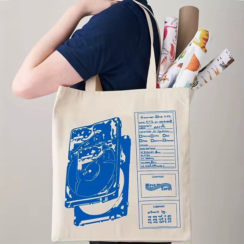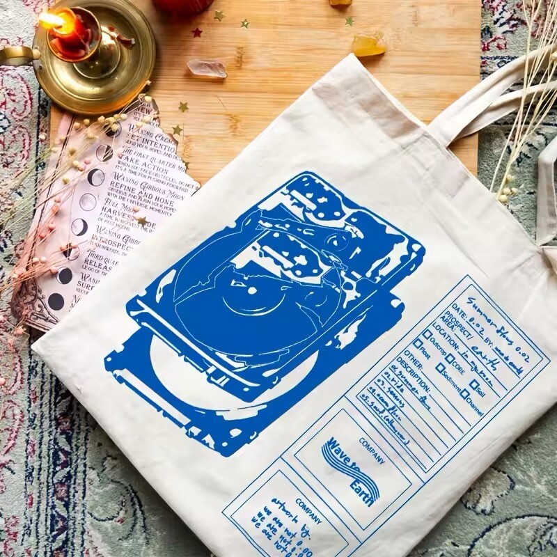 Wave To Earth Summer Flows Pattern Retro Record Graphics Canvas Tote Bag