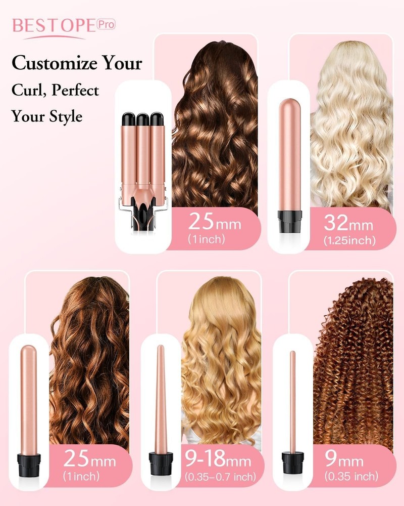 Waver Curling Iron Wand 5-in-1 Set with 3 Barrels for Women All Hair Types ‹ › ‹ › ‹ › ‹ › ‹ › ‹ › ‹ › ‹ › ‹ › ‹ › ‹ › Waver Curling Iron Wand 5-in-1 Set -Includes 3 Barrels for Women, Suitable for All Hair Types Features: 3 extra-long barrels designed for even and fast heating of longer hair lengths. Create 5 types of gorgeous curls to effortlessly switch up your looks. 30 seconds instant heat up for quick, salon-grade curls at home. Adjustable heat setting with 2 temperature options suitable for all hair types. Releases negative ions to reduce frizz and flyaways, leaving your hair shiny and healthy. Supports dual voltage (100V-240V), perfect for travel. Includes 1 glove and 2 hair clips for added convenience and value. Benefits: Make stunning beach waves and curls faster and easier. Customizable styling options for versatile looks every day. Achieve beautiful results while saving time and money with salon-quality styling at home. Protects your hair with adjustable heat settings, suitable for all hair types. Perfect for on-the-go styling with travel-friendly design. Why Choose Our Waver Curling Iron Set? Transform your styling routine with our Waver Curling Iron Wand 5-in-1 Set, designed to create stunning, salon-quality curls in the comfort of your home. With the convenience of three interchangeable barrels, you'll have the versatility to express your beauty and style daily. The adjustable heat settings ensure your hair remains healthy and gorgeous, while the rapid heat-up feature saves you precious time. This set is not only a luxurious addition to your beauty arsenal, but it also offers excellent value with thoughtful inclusions such as a protective glove and styling clips. Elevate your hair game and indulge in gorgeous, defined curls that last all day. Order your Waver Curling Iron Wand Set now and experience the epitome of at-home hairstyling! Shipping Free & Fast Shipping - We offer free shipping to most of the USA with a normal delivery time of 3-7 days. However, due to the current situation, additional delivery time (up to 3 weeks) may be required for some items. Alternative Carriers - We may use alternative carriers (e.g. USPS, FedEx, UPS, etc.) to ensure your package arrives safely and on time. Due to the use of multiple carriers, we are unable to provide a tracking number automatically. Handling Time - Orders are processed and shipped within 1-2 business days of receiving cleared payment. Shipping Restrictions - Shipping to Alaska, Hawaii, Puerto Rico, Guam, and other US territories may incur shipping charges or delivery restrictions. Please contact us before ordering, or your order can be refunded/cancelled. State Restrictions - There may be restrictions based on your state of purchase. For example, certain items may not be shipped to California due to state regulations. Contact for Tracking Updates - If you require tracking updates or have any concerns about the delivery of your order, please feel free to contact us, and we will be happy to assist you. Return 30-Day Hassle-Free Returns - We want you to be completely satisfied with your purchase. If you are not, you can return the item within 30 days of receiving it for a full refund or exchange. Easy Return Process - To start a return, simply contact us and we will provide you with a prepaid return shipping label and detailed instructions. Restocking Fee - There are no restocking fees for returns. However, the buyer is responsible for return shipping costs if the return is not due to a seller's error. Refund Processing Time - Refunds will be processed within 5 business days of receiving the returned item in its condition. Payment We accept all major credit cards, PayPal, and Apple Pay for your convenience. Your payment information is secure and encrypted to ensure a safe and seamless transaction. Please complete your payment within 3 days of purchase to avoid any delays in shipping. Feedback Your feedback is extremely important to us. We strive to provide the best products and customer service possible. If you are satisfied with your purchase, please take a moment to leave us a positive review. If you have any concerns or issues with your order, please contact us before leaving negative feedback. We are committed to resolving any problems and ensuring your satisfaction. Contact Us If you have any questions or concerns, please feel free to out to our customer support team. You can contact us through the eBay messaging system. We are available Monday to Friday, 9:00 am to 5:00 pm EST, and we will do our best to respond to your inquiry within 24 hours. Buy it now and enjoy a pleasant shopping experience! Unit Quantity: 2 lb Barrel Size: 1.25 in,0.35 in Features: Adjustable Heat Settings,Dual Voltage,Instant Heat,Interchangeable Barrels Power Source: Electric Power: 250W Hair Type: All Hair Types Material: Ceramic Type: Waver Curling Iron Heating Plate Material: Ceramic Maximum Temperature: 450 °F Size: Standard Size Number of Temperature Settings: 2 Color: Rose Gold