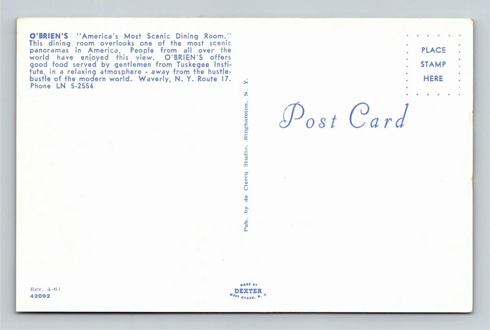 Waverly NY-New York, O'Brien's Dining View, Antique Vintage Souvenir Postcard