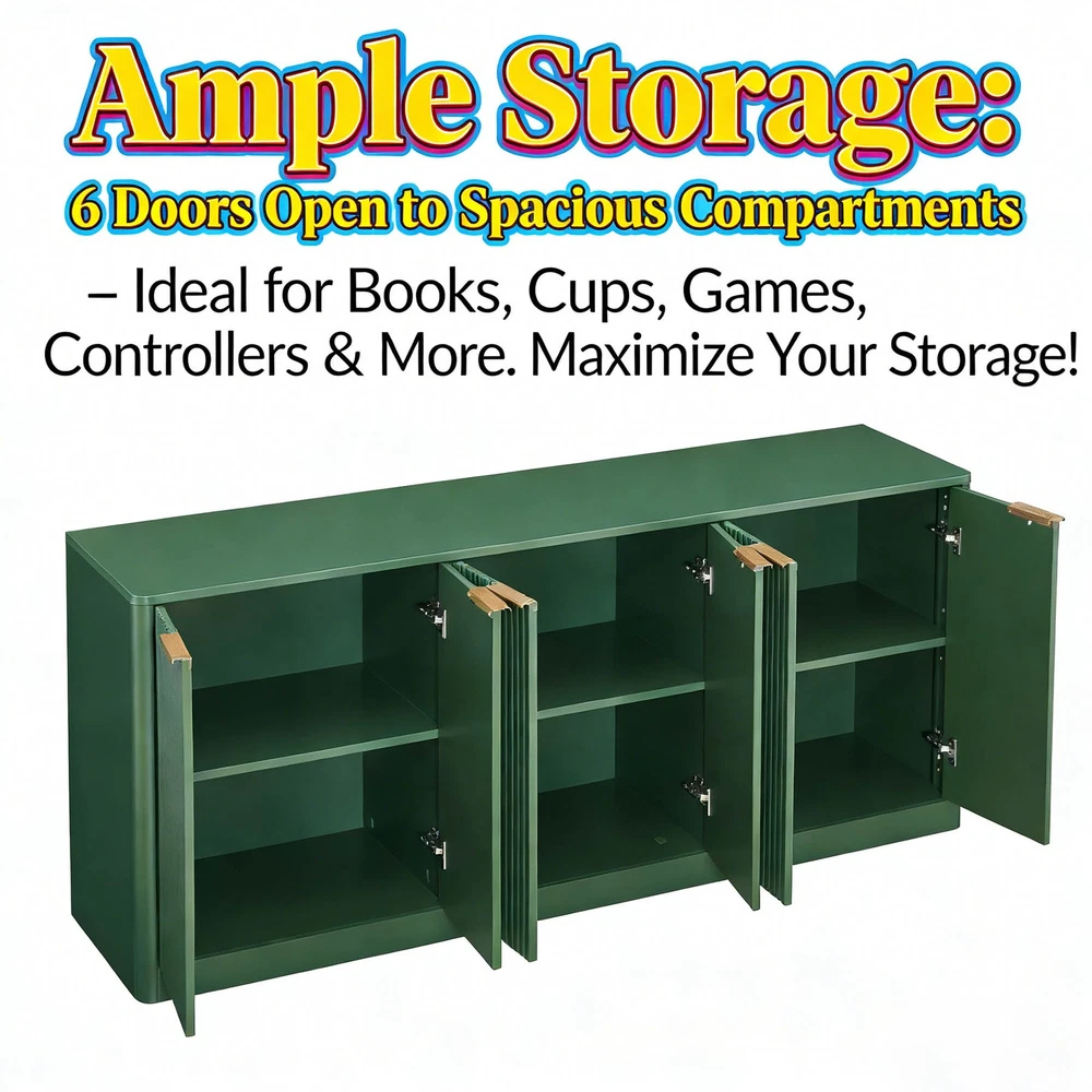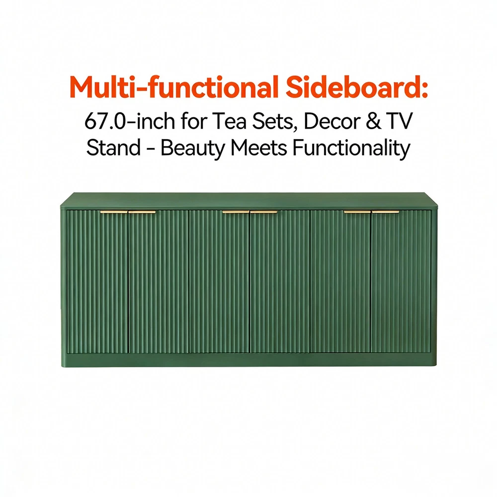 67-inch Modern Wavy Sideboard eBay Product Descriptions 1. 67-inch Modern Wavy Sideboard, Curved Contour Storage Cabinet (Walnut) Product Overview : Elevate your home decor with this 67-inch modern wavy sideboard, featuring a sleek curved contour design that blends vintage charm with contemporary elegance. Crafted from high-quality MDF in a rich walnut finish, this 6-door storage cabinet is not only a visual masterpiece but also a practical storage solution for any room in your home. Key Specifications Color: Walnut Material: High-Quality MDF Assembled Dimensions: 67.0"L x 15.7"W x 27.7"H Product Weight: 106.7 lbs Package Dimensions: 71.26"L x 20.28"W x 8.07"H Package Weight: 119.9 lbs Exceptional Features Unique Modern Design : The wave-shaped curved panel creates an eye-catching focal point, while the natural wood-grain tabletop highlights rustic beauty. The perfect fusion of vintage and modern styles adds a touch of sophistication to your living space. Versatile Multi-Functionality : Ideal for use as a sideboard, TV stand, or display cabinet. Showcase your tea sets, decorative items, or media devices—seamlessly combining functionality with aesthetic appeal. Ample Storage Space : Six doors open to reveal spacious hidden compartments, perfect for organizing books, cups, games, controllers, and other daily essentials. Maximize your storage potential and keep your home clutter-free. Durable & Stable Construction : Made from premium MDF with rounded edges for safety and style. Sturdy metal handles enhance the elegant look, while floor protectors prevent scratches on your flooring. Built to last for years of use. Wide Scene Application : Suitable for living rooms, dining rooms, kitchens, studios, and foyers. Can also be used as a closet or shoe cabinet—its large capacity meets most of your storage needs. Easy Assembly : Comes with detailed instructions and labeled parts. Assemble this cabinet quickly and effortlessly without professional tools. Warranty & Return Policy : Enjoy 1-Year Quality Warranty and 30-Day Free Return Service! If you have any issues with the product, please feel free to contact us—we will provide you with a satisfactory solution within 24 hours. Add this stylish and practical wavy sideboard to your home today and transform your living space! 2. 67-inch Modern Wavy Sideboard, Curved Contour Storage Cabinet (Natural) Product Overview : Bring a fresh, natural vibe to your home with this 67-inch modern wavy sideboard. Boasting a curved contour design and a light natural finish, this 6-door storage cabinet is crafted from high-quality MDF, offering both aesthetic charm and reliable functionality for every corner of your home. Key Specifications Color: Natural Material: High-Quality MDF Assembled Dimensions: 67.0"L x 15.7"W x 27.7"H Product Weight: 106.7 lbs Package Dimensions: 71.26"L x 20.28"W x 8.07"H Package Weight: 119.9 lbs Exceptional Features Unique Modern Design : The wave-shaped curved panel creates an eye-catching focal point, while the natural wood-grain tabletop highlights rustic beauty. The perfect fusion of vintage and modern styles adds a touch of sophistication to your living space. Versatile Multi-Functionality : Ideal for use as a sideboard, TV stand, or display cabinet. Showcase your tea sets, decorative items, or media devices—seamlessly combining functionality with aesthetic appeal. Ample Storage Space : Six doors open to reveal spacious hidden compartments, perfect for organizing books, cups, games, controllers, and other daily essentials. Maximize your storage potential and keep your home clutter-free. Durable & Stable Construction : Made from premium MDF with rounded edges for safety and style. Sturdy metal handles enhance the elegant look, while floor protectors prevent scratches on your flooring. Built to last for years of use. Wide Scene Application : Suitable for living rooms, dining rooms, kitchens, studios, and foyers. Can also be used as a closet or shoe cabinet—its large capacity meets most of your storage needs. Easy Assembly : Comes with detailed instructions and labeled parts. Assemble this cabinet quickly and effortlessly without professional tools. Warranty & Return Policy : Enjoy 1-Year Quality Warranty and 30-Day Free Return Service! If you have any issues with the product, please feel free to contact us—we will provide you with a satisfactory solution within 24 hours. Add this stylish and practical wavy sideboard to your home today and transform your living space! 3. 67-inch Modern Wavy Sideboard, Curved Contour Storage Cabinet (Green) Product Overview : Make a bold style statement with this 67-inch modern wavy sideboard in a vibrant green finish. Featuring a unique curved contour design and crafted from high-quality MDF, this 6-door storage cabinet adds a pop of color to your home while providing ample storage space for all your essentials. Key Specifications Color: Green Material: High-Quality MDF Assembled Dimensions: 67.0"L x 15.7"W x 27.7"H Product Weight: 106.7 lbs Package Dimensions: 71.26"L x 20.28"W x 8.07"H Package Weight: 119.9 lbs Exceptional Features Unique Modern Design : The wave-shaped curved panel creates an eye-catching focal point, while the wood-grain tabletop complements the vibrant green finish. The perfect fusion of vintage and modern styles adds a touch of sophistication and personality to your living space. Versatile Multi-Functionality : Ideal for use as a sideboard, TV stand, or display cabinet. Showcase your tea sets, decorative items, or media devices—seamlessly combining functionality with aesthetic appeal. Ample Storage Space : Six doors open to reveal spacious hidden compartments, perfect for organizing books, cups, games, controllers, and other daily essentials. Maximize your storage potential and keep your home clutter-free. Durable & Stable Construction : Made from premium MDF with rounded edges for safety and style. Sturdy metal handles enhance the elegant look, while floor protectors 