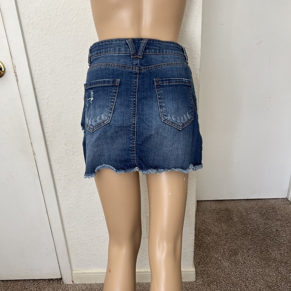 This is a stylish and casual denim skirt by WAX JEAN for women in size S. The skirt is designed in a mini length with a cutoff style, giving it a trendy and distressed look in a beautiful blue color. Made from a blend of spandex and cotton, the skirt offers a comfortable fit and is machine washable for easy care. Perfect for the summer and spring seasons, this zip closure skirt is a versatile addition to any wardrobe, suitable for various casual occasions.
