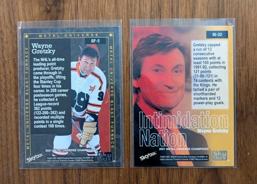 Celebrate hockey history with this Wayne Gretzky 2 Card Lot from Upper Deck. Each card is a testament to Gretzky's legendary status, featuring him in action for the Los Angeles Kings. Crafted from quality card stock, these cards are a must-have for fans and collectors alike.