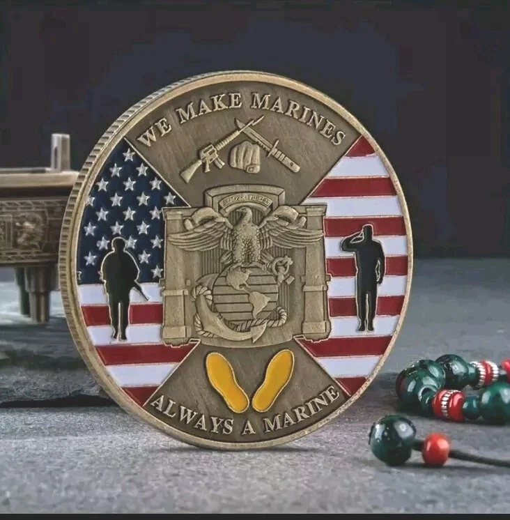 This commemorative coin celebrates the theme of Militaria and the Original/Reproduction aspect of this item makes it a valuable addition to any collection. Made in China, this coin is a unique piece that showcases the history and dedication of the Marines. It is a perfect item for collectors of challenge coins or those interested in military history.