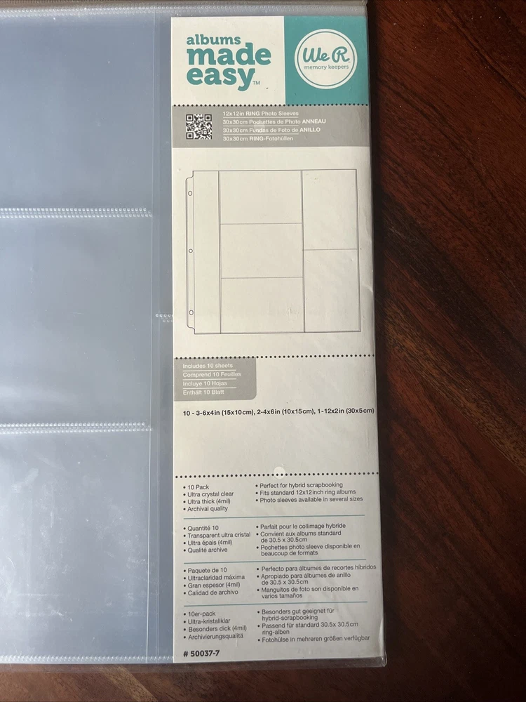 Album Size:12x12Color:clearType:Photo AlbumSize:6x4, 4x6, 12x2UPC:0633356501046Brand:We R Memory Keepersgtin13:0633356501046Album Type:Scrapbook Albums