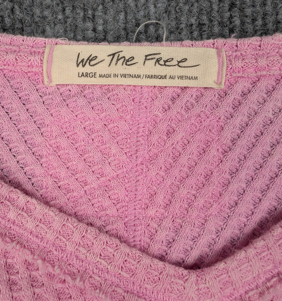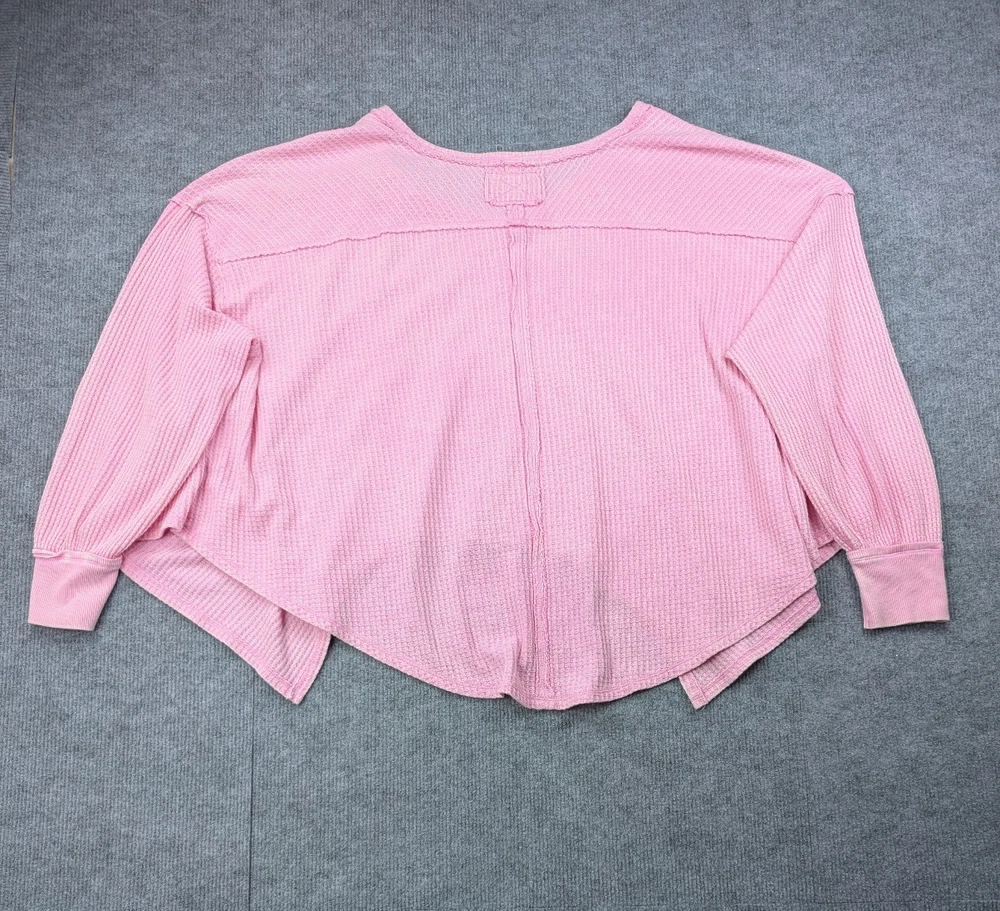 Brand: Free People Size Type: Regular Department: Womens Type: Top Size: L Color: Pink Pattern: Solid Sleeve Length: Long Sleeve Neckline: V-Neck Material: Cotton Blend Fabric Type: Waffle Knit Fit: Relaxed Occasion: Casual, Travel Season: Fall, Winter, Spring Features: Lightweight, Stretch Country/Region of Manufacture: Vietnam Condition: Pre-owned