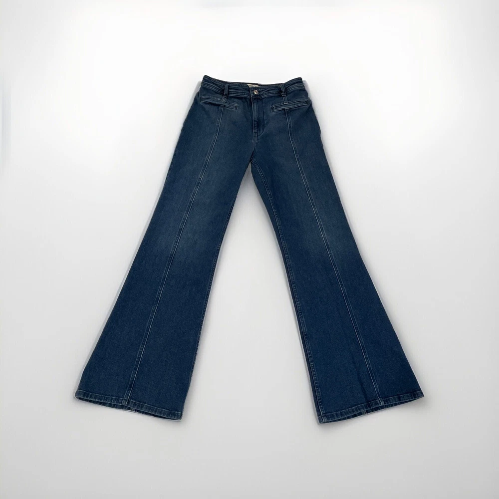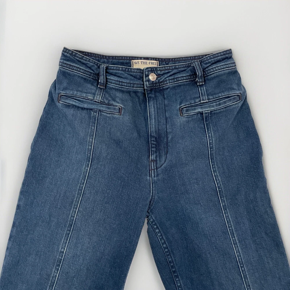 Personalize: No Rise: High (Greater than 10.5 in) Fabric Type: Denim Waist Size: 29 in Pattern: Solid Brand: We The Free Fabric Wash: Medium Department: Women Size Type: Regular Theme: 90s, College, Retro, Stars Color: Blue Garment Care: Dry Clean Only Inseam: 32 in Fit: Regular Country/Region of Manufacture: Türkiye Features: Comfort, Pockets, Stretch Accents: Button, Patch Pocket Type: Jeans Closure: Button, Zip Season: Fall, Spring, Summer, Winter Style: Flared Material: Cotton, Cotton Blend, Spandex Handmade: No Size: 30 Seller Notes: “Great pre-owned condition - no holes, tears or stains” Vintage: No
