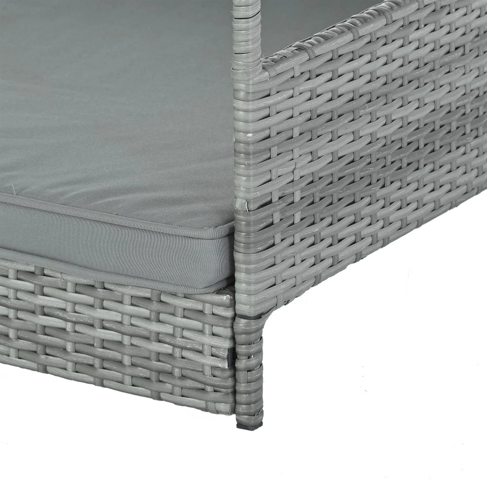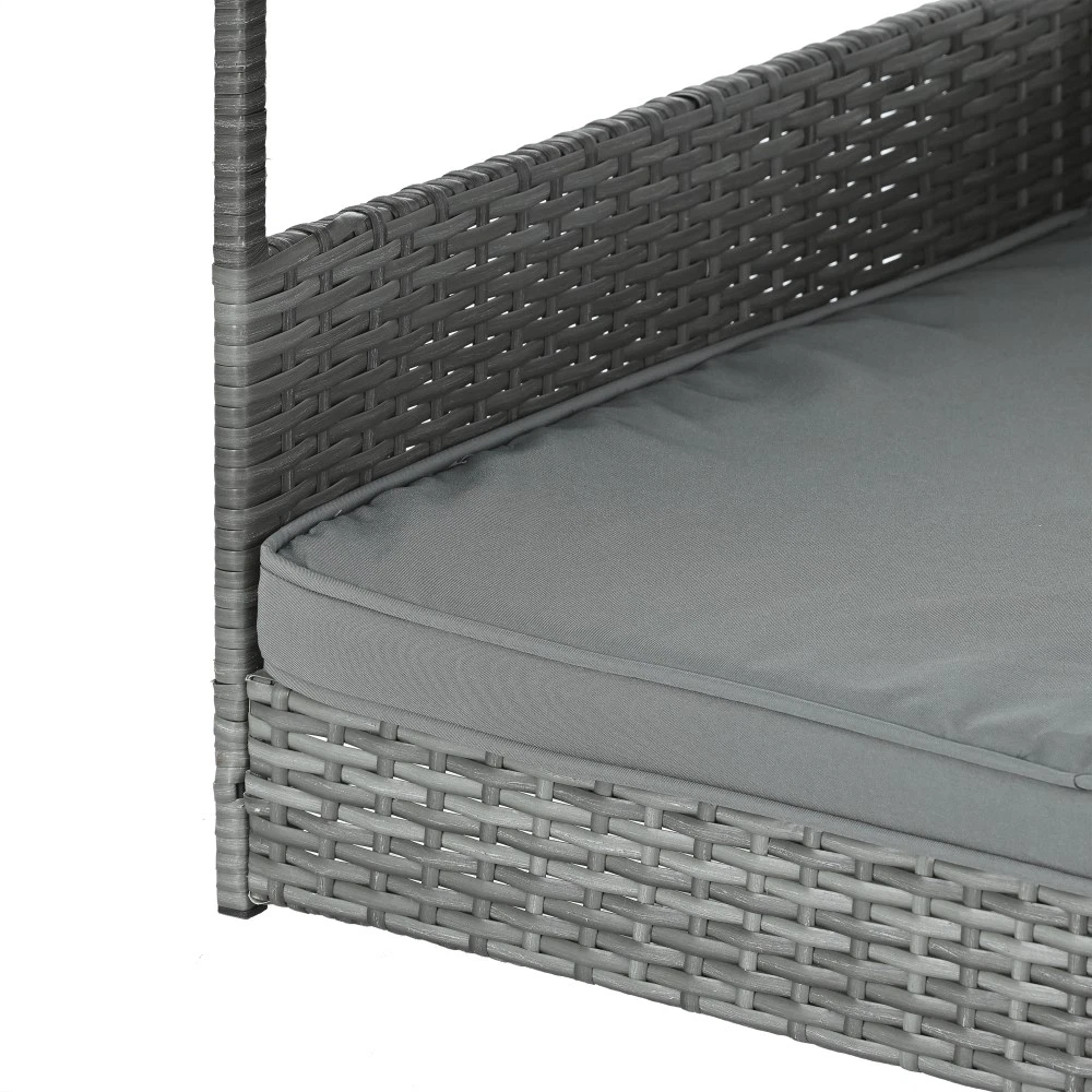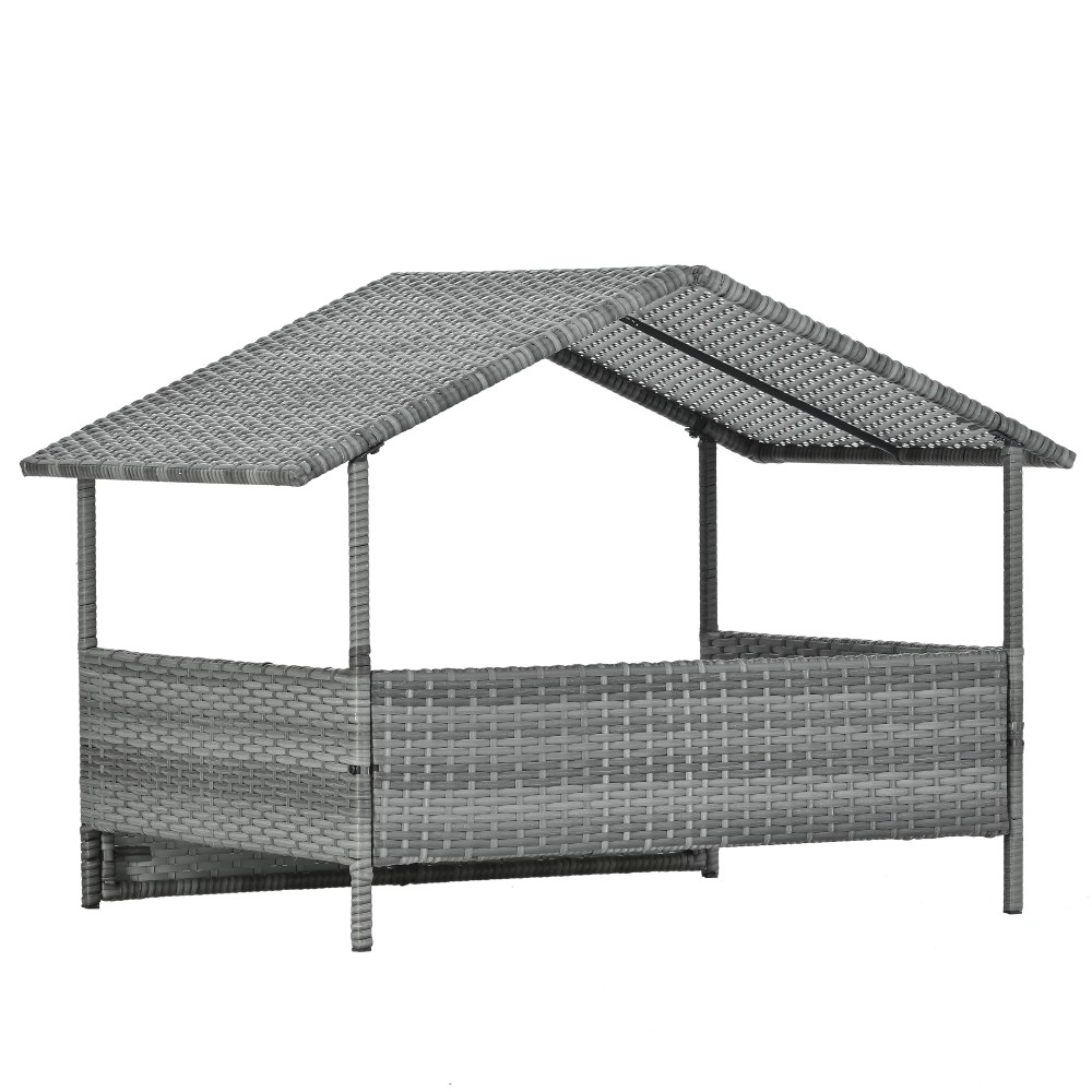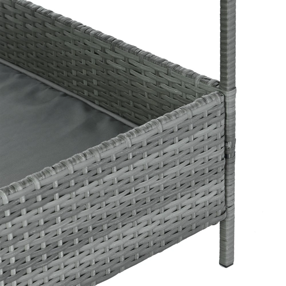 Sturdy&Durable: Study square matel tube structure, with well powder coating to make it more strong to survive inclement weather, the fluffy PE wicker is much stronger and high quality with UV-resistant that can serve long time at summer. Even if your pets scratch on it will not leave obvious mark on it as well. The cushion is made of 100% polyester fiber, it will survive longer under your lovely pets scratching and stretching. Comfortable&Suitable: Two inches thickness cushion, gives your pet a confortable support. It is light and easy to move any place you need your furry companions. Suitable for different scenes like poolside, backyard, garden, patio, indoor etc. Elevated & Covered: An elevated design prevents dirt and water soakage from underneath so you can keep the interior clean. Canopy provides shelfters for your lovely pets from harsh sunlight. Easy Maintenance: Water-resistant fabric cover for cushion, designed with a zipper, it is easy to take off and wash. Pet Patio Furniture PE Wicker, Pet Patio Encslosures The frame is make of square metal tube, rattan with fluffy PE wicker, the cushion is 2" thickness, with stuffing of 100% polyester fiber cushion, it will survive well from pets scratch. Specifications: Color: Dark Grey Material: PE Wicher, Metal Tube, Plastic End Cap. Product Dimensions: W38.5*D27.25*H28.75 Inches Weight :22.05lb Package Included: 1 x Patio Pet Bed