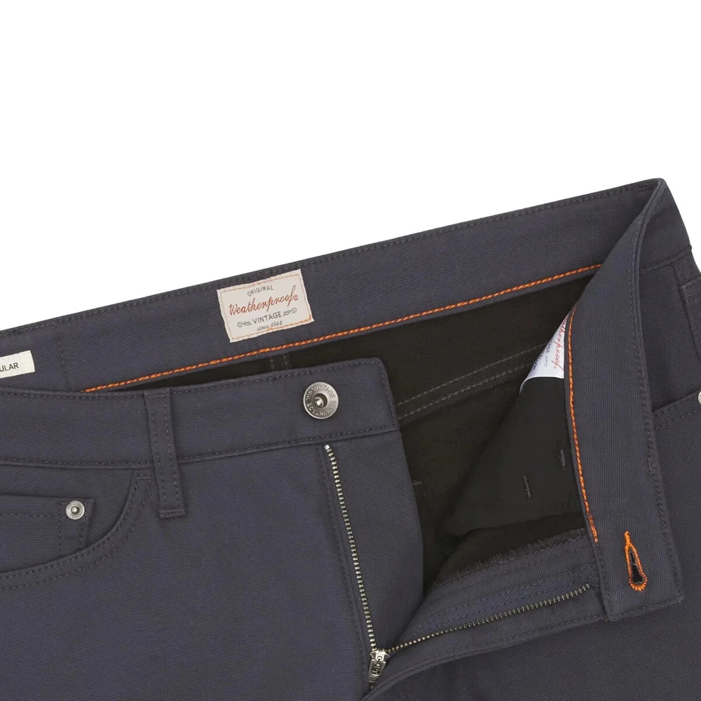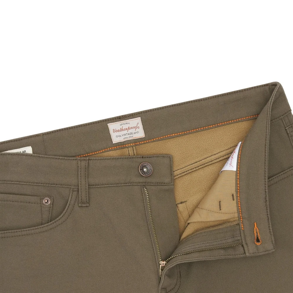 Weatherproof Vintage Men's Fleece Lined Canvas Pant Blue , Green. Please select a size and color Color: Blue, Green Size: Please select from drop-out menu Features: Regular Fit Bonded Fleece Lining Weatherproof Vintage® Straight leg 5-pocket styling Stretch canvas Back pockets lined with fleece Made in Cambodia Content: Outer shell: 98% Cotton | 2% Elastane Lining: 100% Polyester Exclusive of decoration Approximate GSM 420 (12.39oz.) fabric weight Heavyweight Sizing: Waist (in.): 30-42 (even sizes) Inseam (in.): 29, 30, 32, 34 Green pant model is 6'2" wearing size 32x32 Blue pant model is 6'4" wearing size 36x32 Color & size subject to availability Care Instructions: Machine wash cold Line dry Note: The digital images we display have the most accurate color possible. However, due to differences in computer monitors, there may be variations in color between the actual product and your screen. Ship ASAP