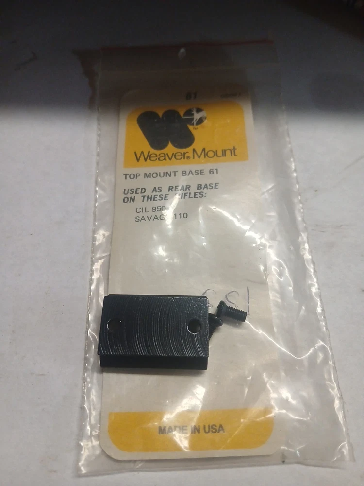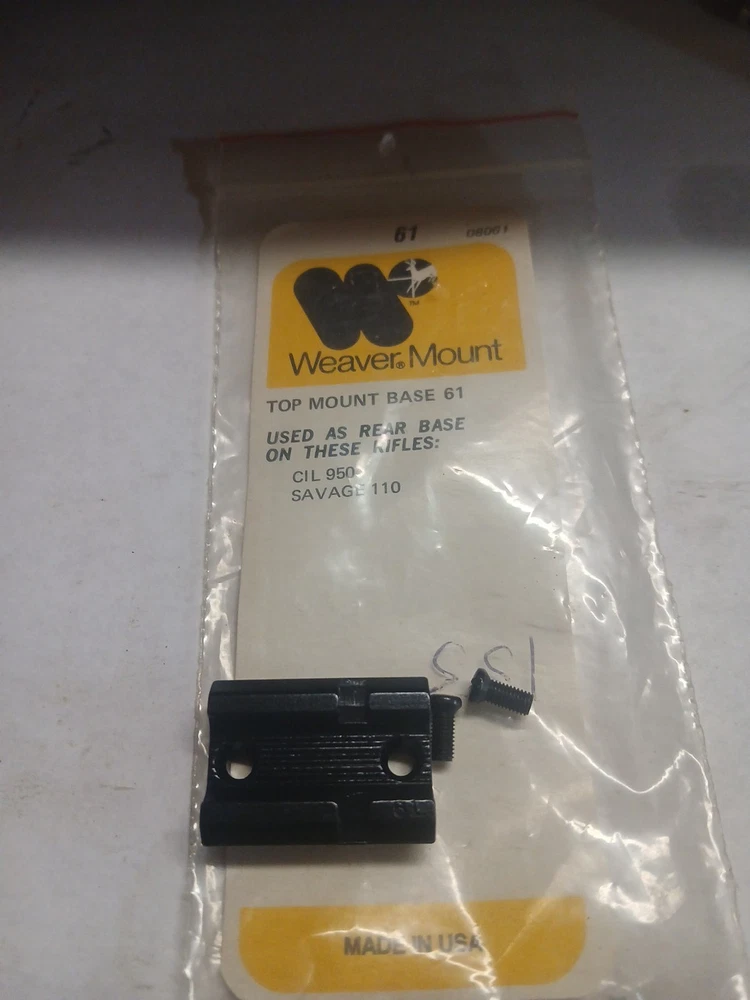 This is a top mount base manufactured by Weaver, designed for use with rifles. The base is made of steel and is lightweight. It is specifically designed for use with Ruger guns and the Savage 110 model. The mounting location is a rail and the base is designed for use with scopes, optics, and lasers. Package is Aged product is in like new condition