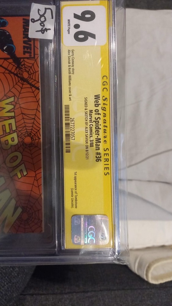 Dive into the thrilling world of Marvel with the iconic "Web Of Spider-Man" (1988) #36, a must-have for any serious collector or fan. This single issue comic book features the remarkable Saviuk Alex sketch and autograph, enhancing its appeal and collectibility. It's a standout piece, certificated by the Certified Guaranty Company (CGC) with an impressive grade of 9.6 Near Mint+, ensuring its quality and preservation. Set in the Modern Age era of comics, this edition captures the essence of the Spider-Man character and his adventures within the Marvel Universe. It's a Sketch & Signed comic, offering a unique touch to the traditional US Comics narrative. With its certification and autograph authentication, this comic book is a valuable and noteworthy addition to any collection, embodying the superhero genre with flair.