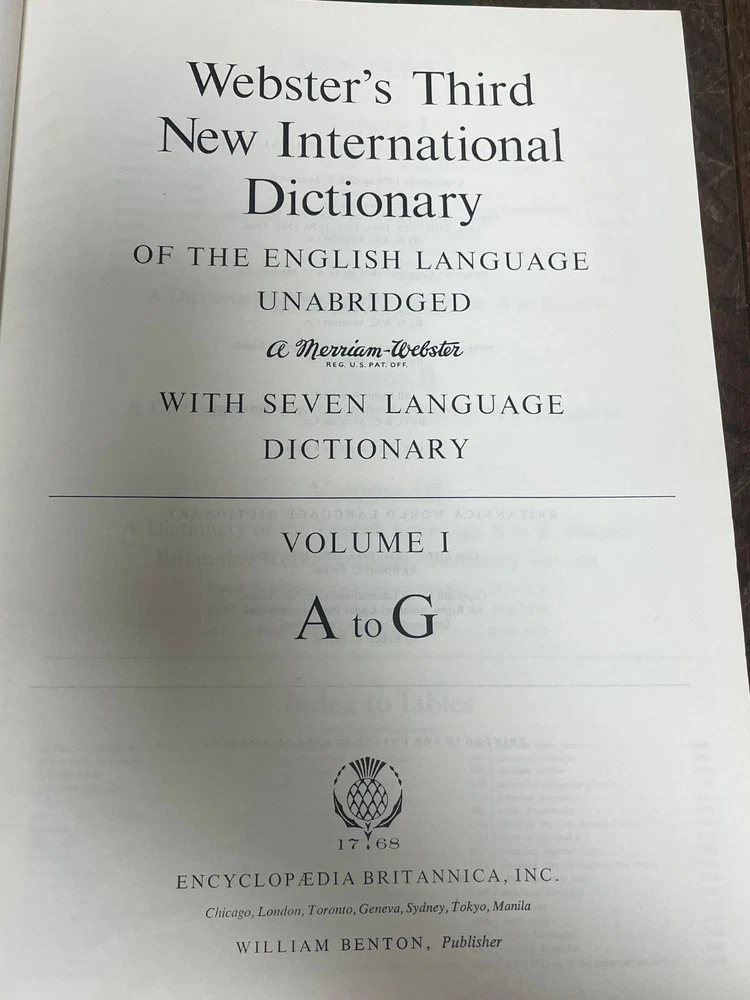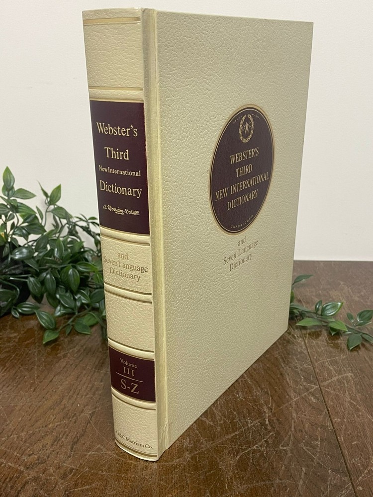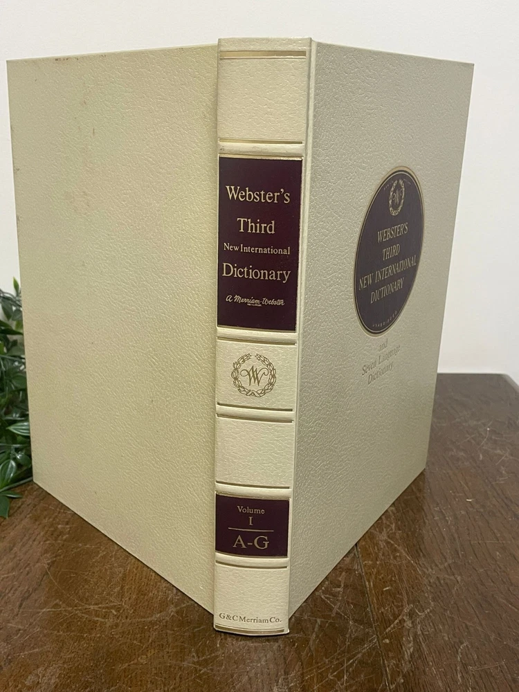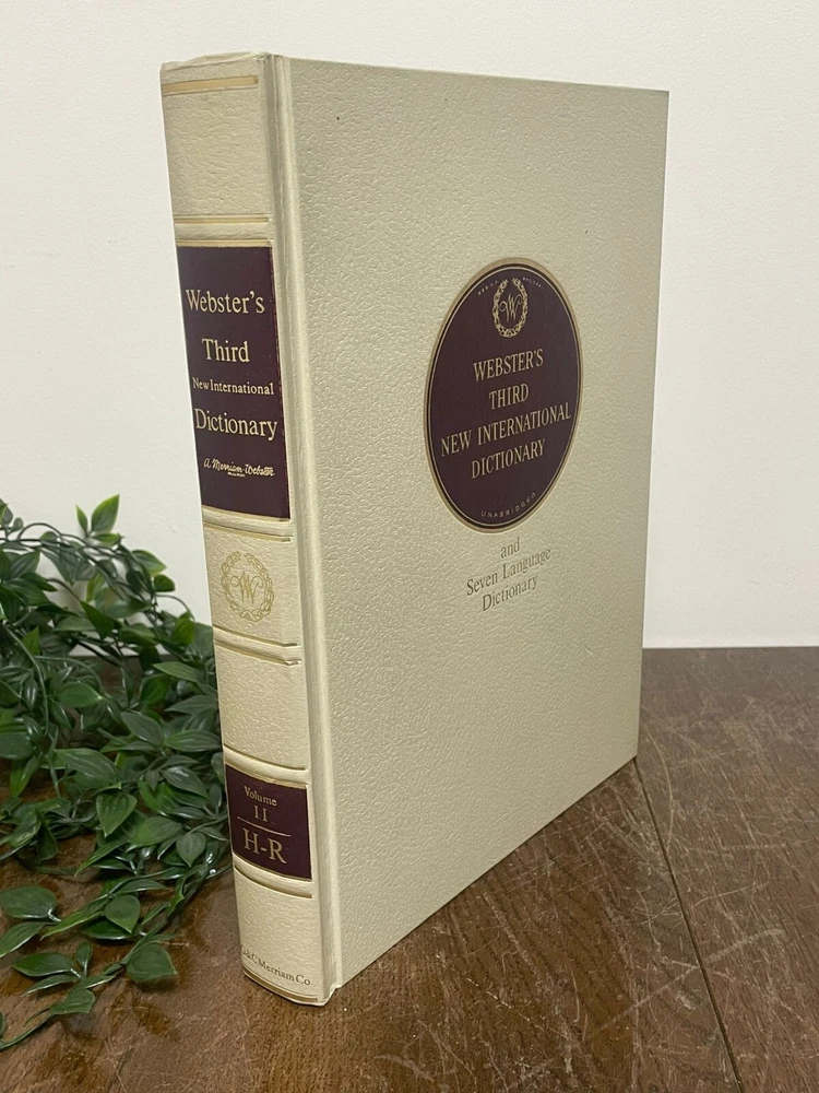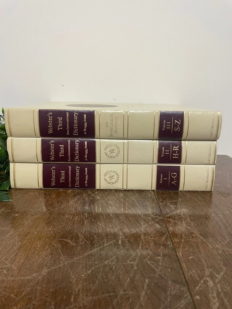 A handsome and substantial 3-volume set of Webster’s Third New International Dictionary , including the Seven Language Dictionary reference, beautifully bound in classic cream and burgundy covers. This is a timeless reference set that doubles perfectly as sophisticated book décor. The neutral cream spines with rich burgundy title panels make this set ideal for styling on shelves, desks, libraries, studies, or interior staging projects. The set includes: • Volume I: A–G • Volume II: H–R • Volume III: S–Z A complete three-volume collection with strong decorative presence. These books work beautifully for: Home library styling Office or study décor Interior staging Film or theatre props Traditional or vintage-inspired interiors Book collectors Condition Good used condition overall, minimal wear to the spines. Pages are clean and intact, with some small dark spotting to the outer page edges consistent with age. Bindings remain solid and sturdy. A very presentable set with attractive shelf appeal. A classic reference collection that brings both substance and style to any space. We take great care to provide accurate descriptions and encourage you to review the accompanying photos for a full understanding of condition and detail. If you have any questions, please feel free to get in touch. All items are sent via a tracked delivery service.