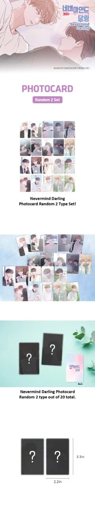 Webtoon MD [ Nevermind Darling ] RANDOM Photocard 2 Type Set ✔️ Safely Packed ✔️ Tracking Number ✔️ 100% Original Korean Title 네버마인드 달링 English Title Nevermind Darling Product Type Photocard Manufacturer BeOn Country of Origin South Korea The product information and release date may be subject to change by the manufacturer/publisher. Description CONTENTS: 2 RANDOM Photocard SIZE: approx. 2.2 x 3.3 in !! CAUTION !! * True product color may differ from monitor photos. * RANDOM 2 cards will be shipped. PRODUCT SHIPPING RETURNS Our Promise to You We take great pride in providing you with high-quality products that are 100% original and sourced directly from Korea. We are committed to delivering exceptional value and peace of mind to our customers. We stand behind the authenticity and quality of our products, and we want you to shop with confidence. Our 100% Originality Guarantee We guarantee that all our products are 100% original, genuine, and authentic. We source our products directly from official manufacturers and suppliers in Korea to ensure their authenticity. If you ever have any concerns. If you are not satisfied with our items, please contact us ! Quality Assurance We take quality seriously, and all our products undergo rigorous quality control processes to ensure that they meet the highest standards. If you receive a product that you believe is defective or falls short of our quality standards, please contact us within 14 days of receiving your order. We will work with you to resolve the issue, whether it be through a replacement, refund, or exchange, as outlined in our Returns Policy. All orders from the U.S. will be shipped from our US office via USPS with a tracking number (exceptions may occur, we will notify you prior shipping or specify in item description). Estimated Delivery Time US Standard : 4 - 14 business days via USPS First Class/Media/Parcel US Expedited : 2 - 4 business days via USPS Priority Canada : 15 - 25 business days Handling Most items will be shipped within 3 business days, but some items have longer handling time. Please refer to the estimated delivery period on each product details. Combined Shipping We do combine shipping! The highest shipping costs and each additional cost will be calculated as a total shipping fee. International Shipping We offer eBay’s International Shipping program! You will be able to view the total charges at checkout. We ship your order to the eBay International Processing Center, then eBay will ship your item to you. But please note we do not hold any liability on any issues relating to CUSTOMS including but not limited to delays and taxation. Please check with your country's Customs Office to determine the additional cost and policy. We accept return requests for buyer's any reason, but the item must be sealed, unused, and in original condition . Kindly be advised that first press limited edition is only available while supplies last. Upon opening your package, please verify the inclusion of the first press gift. If the gift is not present, we regret to inform you that the item is not part of the first press limited edition, and as such, refunds cannot be processed. Return request must be made within 14 days of item delivery. If the returning item has been opened or used, the return request will not be accepted. Refunds will be issued after arrival and inspection of the returning item. Shipping is NOT REFUNDABLE. If you received the wrong item, please let us know to resolve the problem. We will exchange the correct item upon receiving the wrong item in unopened, in original condition (We will pay return shipping).
