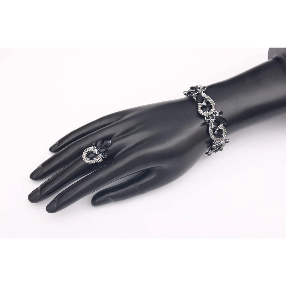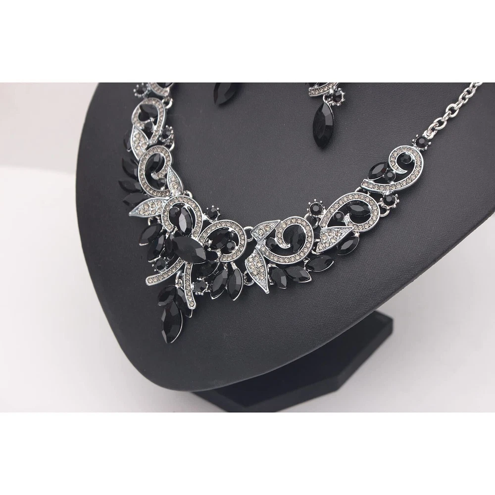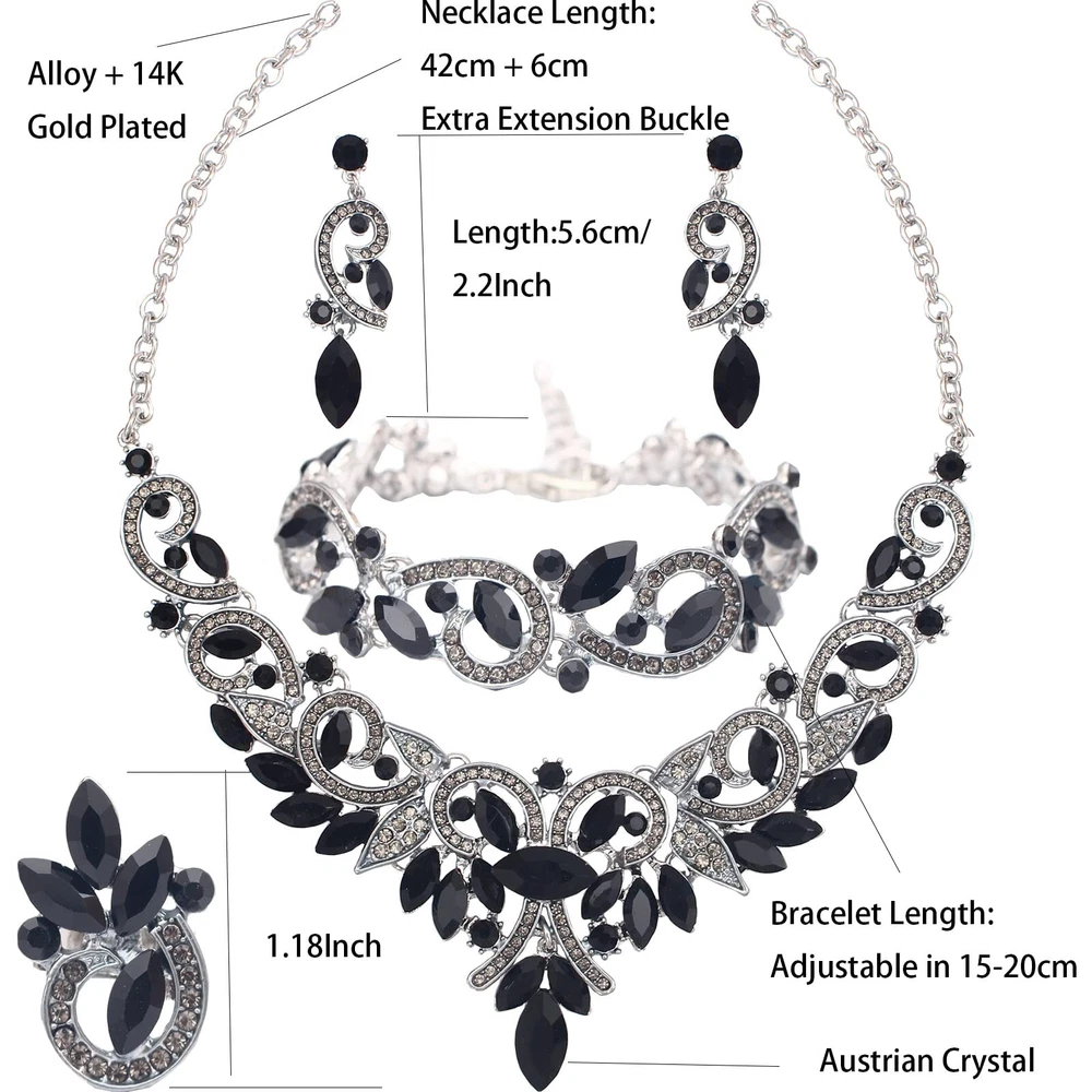 Wedding Bridal Prom Austrian Crystal Rhinestone Statement Necklace Earrings Bracelet Ring Wedding Party Costume Jewelry Sets for Brides Women Product Details Color: Black-Platinum Plated Brand: SFE MPN: Does not apply UPC: Does not apply EAN: Does not apply Department : womens Date First Available : April 15, 2022 Brand, Seller, or Collection Name: SFE Metal: gold plated Material: Metal Gem Type: Crystal Clasp: Lobster Clasp SFE Brands: This Jewelry Sets could be Birthday Gifts, Anniversary Gifts, Christmas Gifts, Graduation Gifts,Valentine's Day Gifts,Bridal Wedding,Bridesmaid,Party,Birthday, Prom,etc. Never outmoded design, elegant and stylish, you will never regret for this choice. The earrings skin test grants allergy free, nickel-free and lead-free, wear it rest assured. About SFE Brands: We have a strong design team, we will launch different styles every season, follow us! We will give you a different surprise. Tips: 1.Wipe your earrings up with wipes: they perform miracles on jewelry. Avoid contact with water, no baths, pools, sea water, etc. If it gets wet that can leave dark water spots which are difficult to remove 2.Then wipe with a clean dry soft cotton cloth to bring back the shine. Please don't wear it when sleeping. To keep your gorgeous jewelry looking like new, take it off at the end of the day and give it a quick wipe down with a microfiber cloth 3.Put it inside a soft cloth pocket or fabric swath, avoid it from rubbing against other jewelry