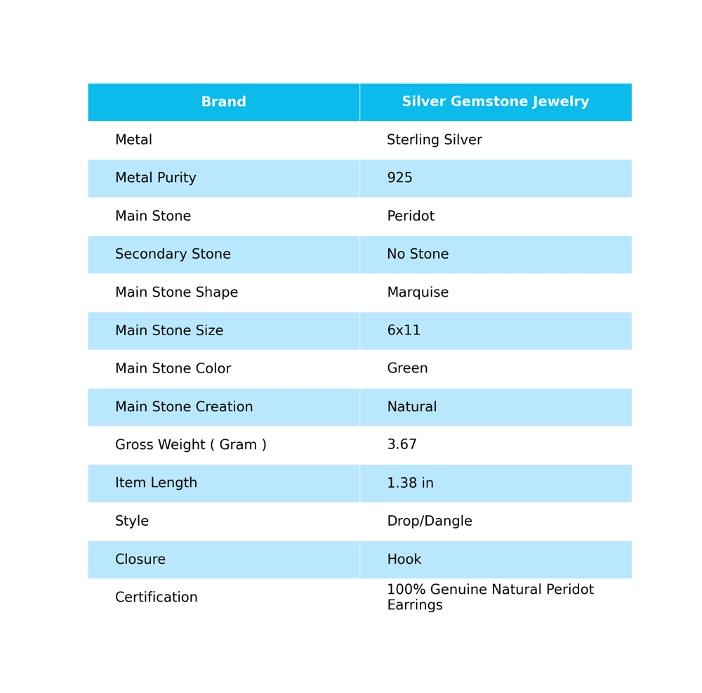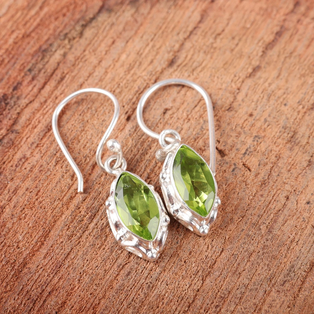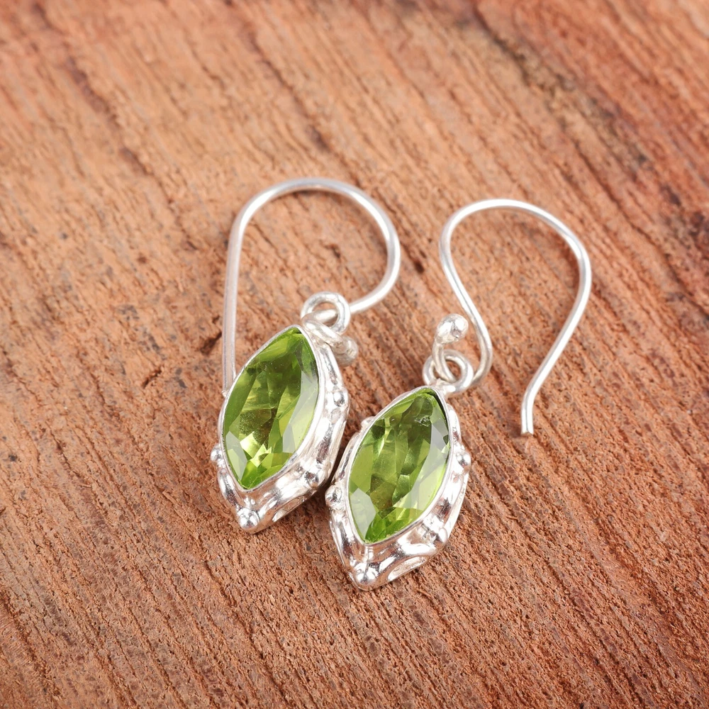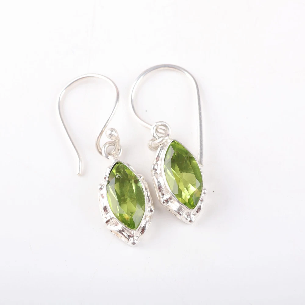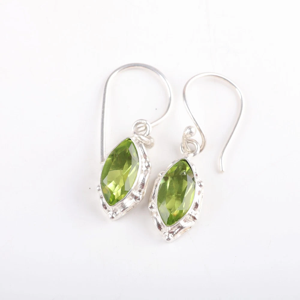 Welcome to Jaipur Silver Gallery Wedding Gift For Her 925 Silver Natural Peridot Drop/Dangle Minimalist Earrings Handmade Earrings, Sterling Silver Earrings, Peridot Earrings, Handcrafted Earrings SKU : - JSEE-106-6 Gemstone : - Peridot Stone Shape : - Marquise Metal : - Sterling Silver Metal Purity : - 925 Earring Length : 1.38 Inches Earring Width : Inches _______________________________________________________________________________________ Amazing Properties of Silver ****************************** Tough and Long-lasting: Silver is incredibly strong, built to withstand daily wear and tear as well as tough environmental conditions. Easy to Shape and Design: Silver is like clay for skilled craftsmen, allowing them to create beautiful and intricate designs effortlessly. Great at Conducting Energy: When it comes to heat and electricity, silver is the go-to. It can quickly and efficiently transfer energy, making it ideal for various applications. Keeps Things Clean and Safe: Silver has a natural ability to keep harmful bacteria at bay, making it a reliable choice for promoting cleanliness and well-being. 3 Underrated Benefits Of Silver ****************************** Gorgeous Charm: Silver jewelry shines brightly, enhancing any outfit and fitting everyone's style with ease. Gentle on Skin: Silver is kind to your skin, reducing the chance of allergies and making it a favorite choice for accessories. Healing Vibes: Some believe silver jewelry has a soothing touch, possibly aiding in easing issues like arthritis, anxiety, and the blues. _______________________________________________________________________________________ For Mother's Day Gift For Father's Day Gift For Promise For Valentine' Day For Halloween Party For Christmas Day Gift For New Year Party For Mom For Her _______________________________________________________________________________________ If you need more help or want design tips, just give us a shout! We're lightning-fast in getting back to you. Every single thing we create is made by hand in our special workshop, and we put a whole lot of love and care into every piece. Thank you for stopping by! We're confident you'll have an amazing time shopping with us. We're here to make sure every moment you spend with us is filled with delight and satisfaction. Happy shopping!