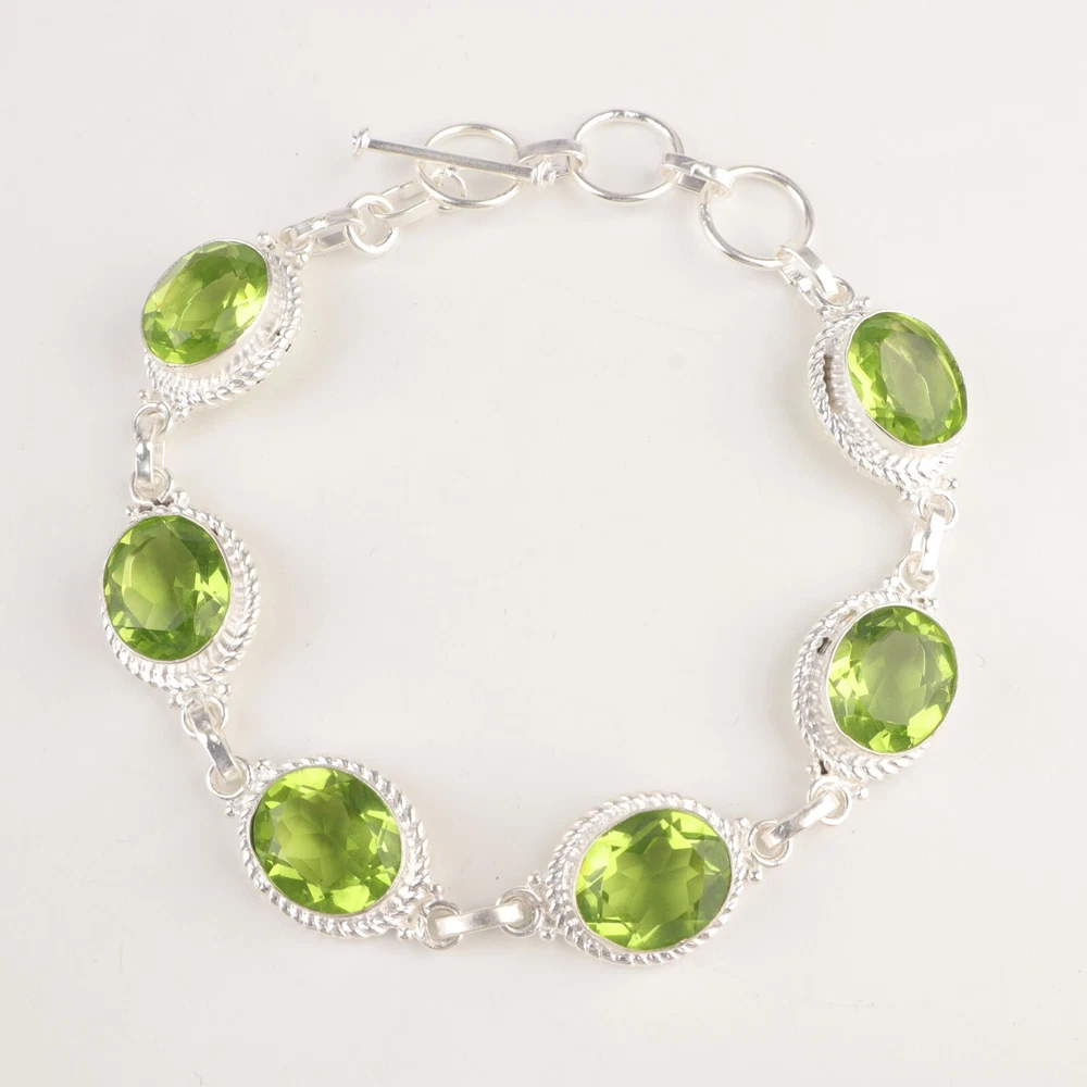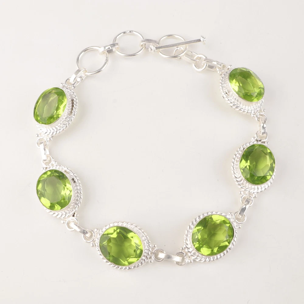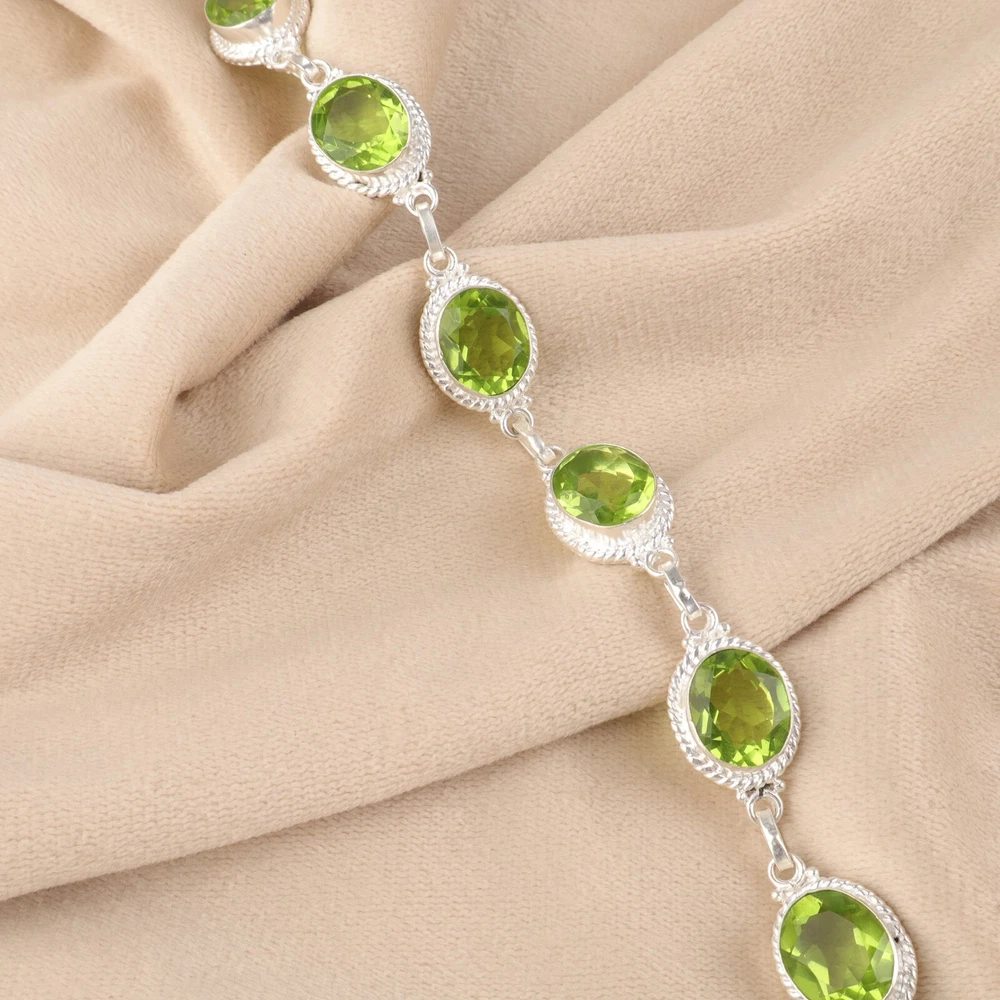 Welcome to Jaipur Silver Gallery Wedding Gift For Her 925 Sterling Silver Natural Peridot Gemstone Chain Bracelet Handmade Bracelet, Sterling Silver Bracelet, Peridot Bracelet, Handcrafted Bracelet SKU : - JSRB-2-7 Gemstone : - Peridot Stone Shape : - Oval Metal : - Sterling Silver Metal Purity : - 925 Bracelet Length : 8.5 Inches Adjustable : _______________________________________________________________________________________ Amazing Properties of Silver ****************************** Tough and Long-lasting: Silver is incredibly strong, built to withstand daily wear and tear as well as tough environmental conditions. Easy to Shape and Design: Silver is like clay for skilled craftsmen, allowing them to create beautiful and intricate designs effortlessly. Great at Conducting Energy: When it comes to heat and electricity, silver is the go-to. It can quickly and efficiently transfer energy, making it ideal for various applications. Keeps Things Clean and Safe: Silver has a natural ability to keep harmful bacteria at bay, making it a reliable choice for promoting cleanliness and well-being. 3 Underrated Benefits Of Silver ****************************** Gorgeous Charm: Silver jewelry shines brightly, enhancing any outfit and fitting everyone's style with ease. Gentle on Skin: Silver is kind to your skin, reducing the chance of allergies and making it a favorite choice for accessories. Healing Vibes: Some believe silver jewelry has a soothing touch, possibly aiding in easing issues like arthritis, anxiety, and the blues. _______________________________________________________________________________________ For Mother's Day Gift For Father's Day Gift For Promise For Valentine' Day For Halloween Party For Christmas Day Gift For New Year Party For Mom For Her _______________________________________________________________________________________ If you need more help or want design tips, just give us a shout! We're lightning-fast in getting back to you. Every single thing we create is made by hand in our special workshop, and we put a whole lot of love and care into every piece. Thank you for stopping by! We're confident you'll have an amazing time shopping with us. We're here to make sure every moment you spend with us is filled with delight and satisfaction. Happy shopping!