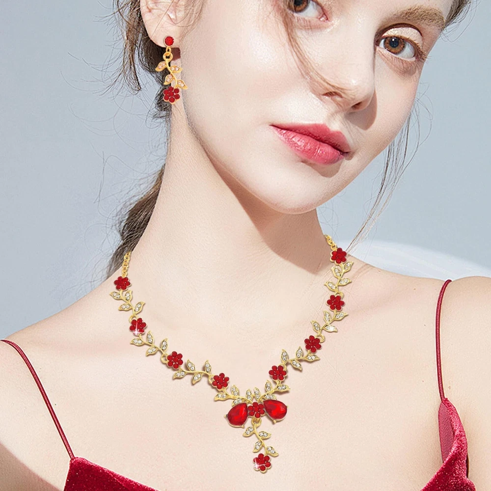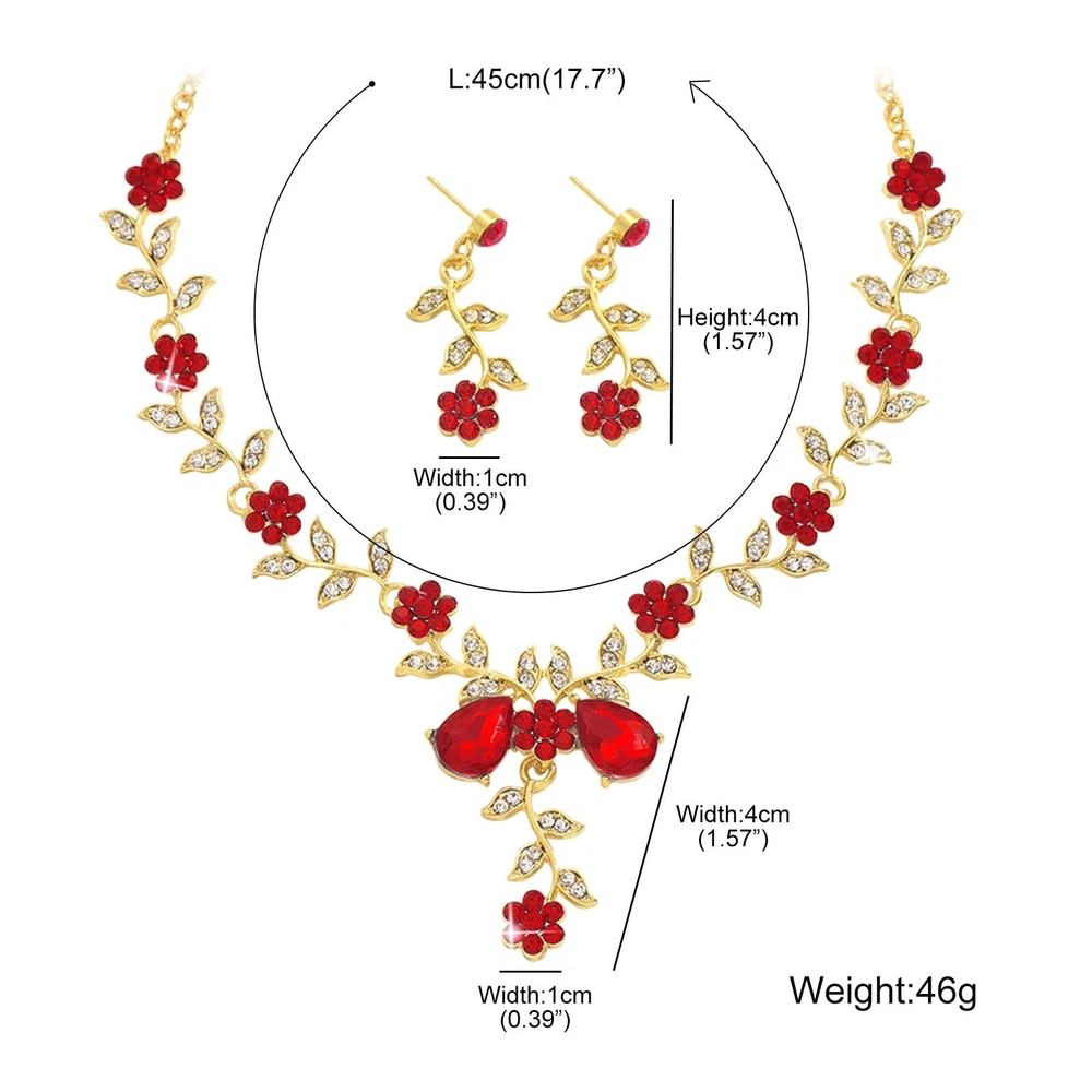 Wedding Jewelry Set For Women, Leaf Cluster Flower Rhinestone Crystal Dangle Earrings Pendant Necklace Sets for Brides Bridesmaids Product Details Color: Gold-Tone-Red Brand: AiminGems MPN: AG0003 UPC: 755113654274 EAN: 0755113654274 Department : womens Date First Available : September 9, 2024 Brand, Seller, or Collection Name: AiminGems Material: Crystal Gem Type: No Gemstone Chain: Standard Chain Clasp: Lobster Clasp Number of stones: 7 Metal: Crystal Metal stamp: No Metal Stamp Minimum color: Red Leaf Cluster Flower Rhinestone Jewelry Set For Women, Crystal Dangle Earrings Pendant Necklace Sets