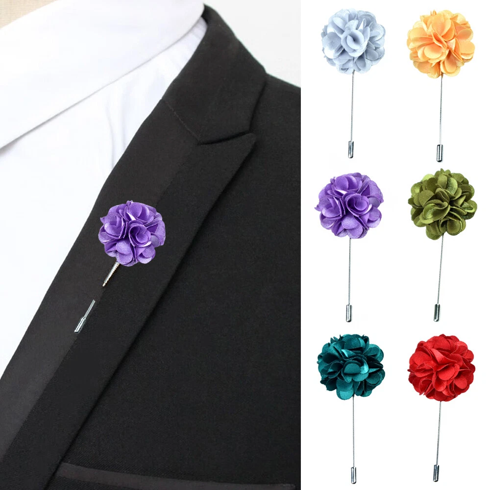 Wedding Men's Lapel Pin Brooch Fabric Satin Flowers Collar Decoration Accessory