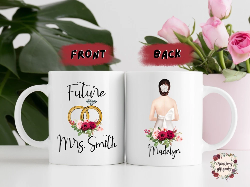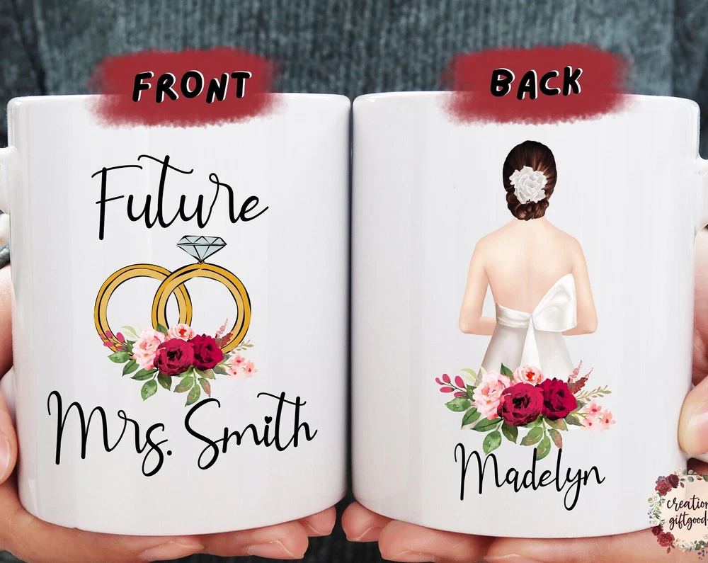 Wedding Mug Engaged Gift Engagement Gift Bridal Shower Gift Future Mrs Gift Product Details.. This high quality 11oz. ceramic white mug has a premium hard coat that provides crisp and vibrant color reproduction sure to last for years. Perfect for all hot & cold beverages. The highest quality printing possible is used. It will never fade no matter how many times you wash it. Material: 100% Ceramic. Print both sides. Dishwasher and Microwave Safe. High Gloss + Premium White Finish. Printed in the U.S.A. Personalized & Custom. We support personalized and custom mug to add custom, when placing an order, you can add notes to the "order note" in shipping address section. Also you can contact us directly via message. Shipping Info. Ready to ship in 1 to 2 business days, All products are made-to-order and proudly printed in the United States. Shipped by USPS and DHL, You will receive your order in 5-7 days. Replace & Refund. All products are defective during shipping broken, chipped will be replaced free of charge. You are not satisfied with the product, we will refund 100% money to you. If any other issues arise, please do not hesitate to message, we would be more than happy to assist you.