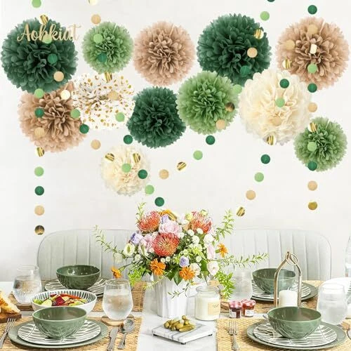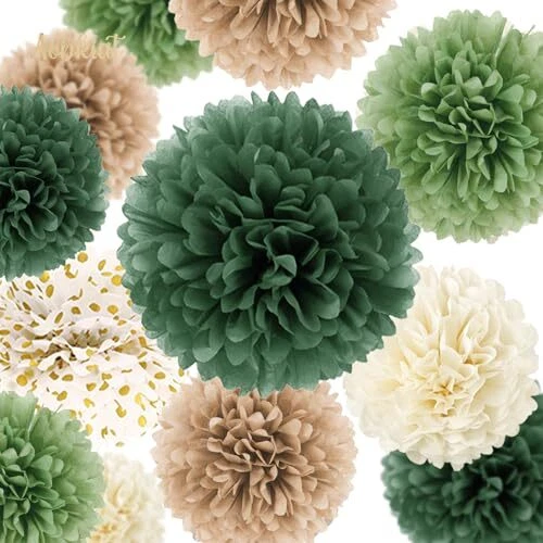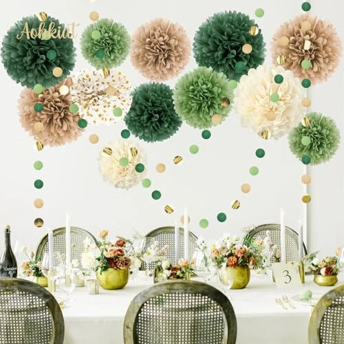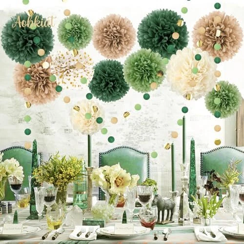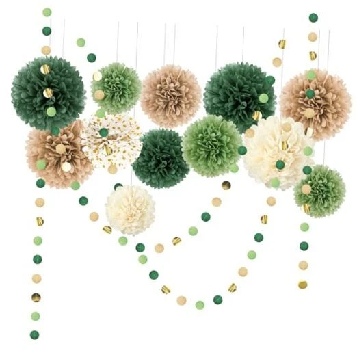 Wedding Party Decorations Set,15PCS Green Tissue Paper Pom Poms,Dots Paper