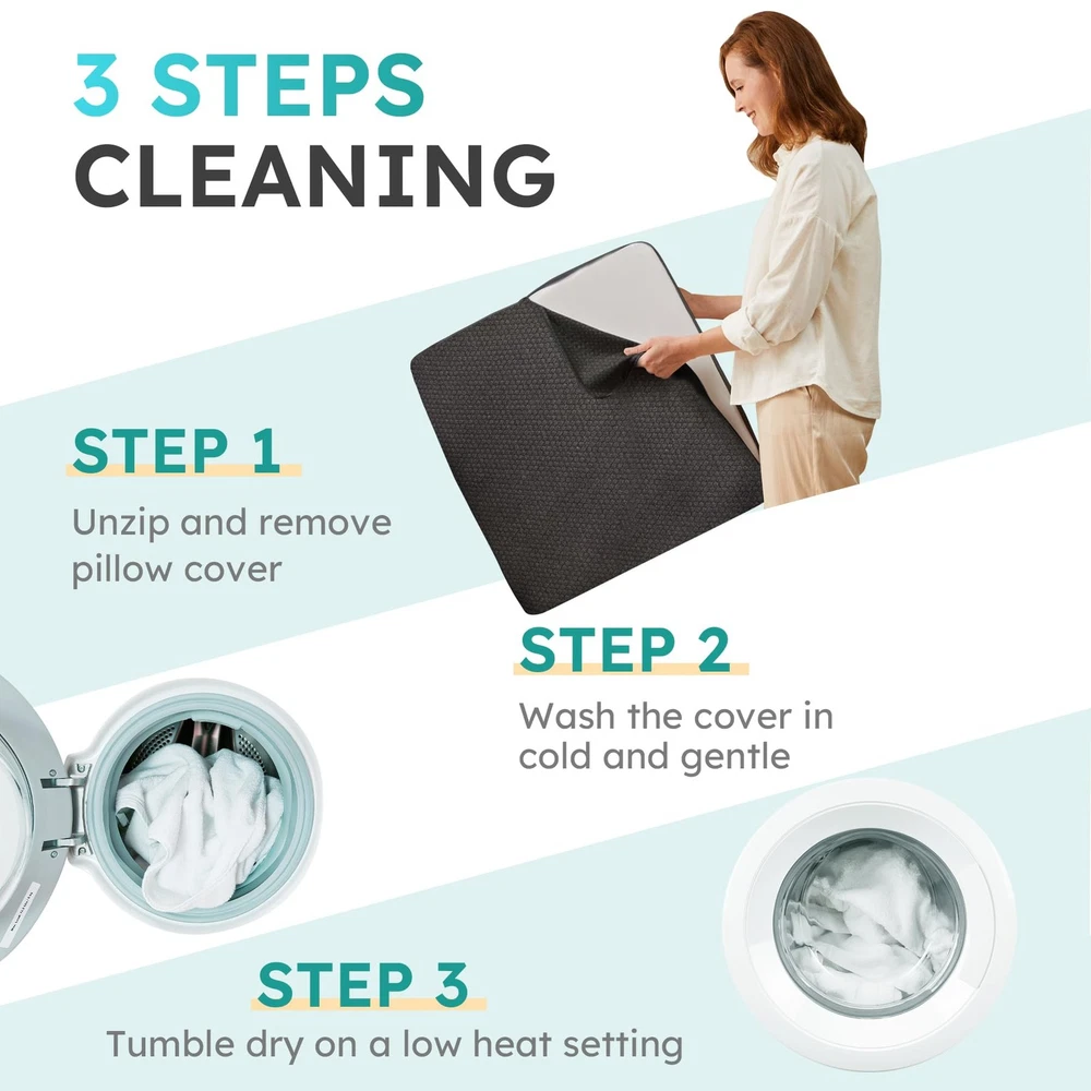 Wedge Pillow for Sleeping, 8 inch Bed Wedge Pillow, Elevated Body Pillow for Back Support, Acid Reflux, Leg, Neck Pain, Snoring, Triangle Pillow Wedge - Cooling Memory Foam Top, Black 2 Layers of Comfort Foam: Our wedge pillow features two layers of premium comfort foam. The top layer consists of gel-infused memory foam, keeping you cool and comfortable throughout the night. And high-density premium foam base offers sturdy support and durability. Breathable & Washable Cover: The pillow's breathable cover allows for optimal airflow, ensuring a cool and comfortable sleep experience. Plus, it's easily removable and machine washable for hassle-free maintenance. 2 Pockets & Portable Design: Our triangle pillow wedge features two built-in pockets, ideal for storing remote controls, phones, or glasses. Additionally, its portable handle allows you to take it with you wherever you go for on-the-go comfort and support. Upgraded & Certified: We've upgraded our foam wedge pillow to ensure the highest quality standards. Standard 100 certified by CertiPUR-US and Oeko-Tex, giving you peace of mind knowing you're purchasing a reliable and trustworthy product.