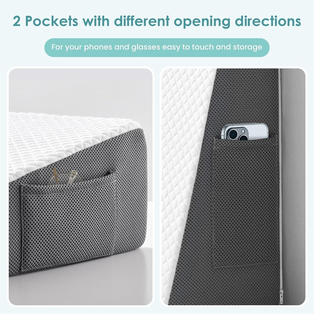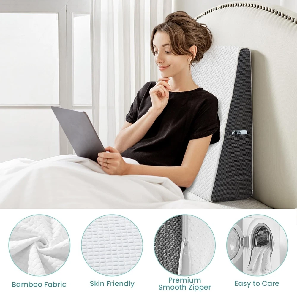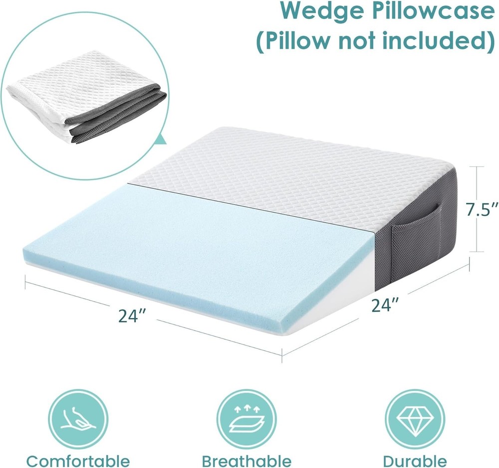 Wedge Pillow Cover Fitted 7.5" Bed Wedge 24" W X 24" L X 7.5" H Soft Machine New Pillow Type: Bed Pillow Material: 60% Polyester,40% Viscose fiber from bamboo Size: Cover For White-Grey(24*24*7.5 inch) Product Dimensions: 24"L x 24"W CERTIFIED BY AUTHORITIES: Cozymaker Wedge Pillow is certified by CertiPUR-US and Oeko-Tex Standard 100, proving the quality of the product is guaranteed. Very comfortable bed wedge pillow cover for you and your family to get a good night's sleep! SOFT & BREATHABLE: The Cover surface is made of soft and skin-friendly fabric, which can quickly absorb body heat. The 3D breathable mesh fabric on the side of allows heat to escape and fresh air to circulate in. POCKET DESIGN: It‘s side also features 2 special pockets, easily fit items such as glasses, remote controls or cell phones. MACHINE WASHABLE: The wedge pillow cover are made with high quality zippers, easy to remove and can be used for machine washing. Return Policy: We offer a 30 day return policy from the receiving date. Please contact us for a Free Return Label. Please use our return label so it will go back to our supplier and we can do a refund or replacement afterwards. Feedback: Your satisfaction is very important to us! If you have any problem with your order, please contact us and we will do our very best to make you satisfied. As long as you are happy with your purchase, please leave a positive feedback for us. We will always leave you a positive feedback in return. If you have any problem with your purchase, please do not leave a negative feedback. Please Contact us ... and your issue will be solved quickly and positively We are a small family-owned business trying to make a living, not a huge company that does not care ... We will ALWAYS do our best for you!