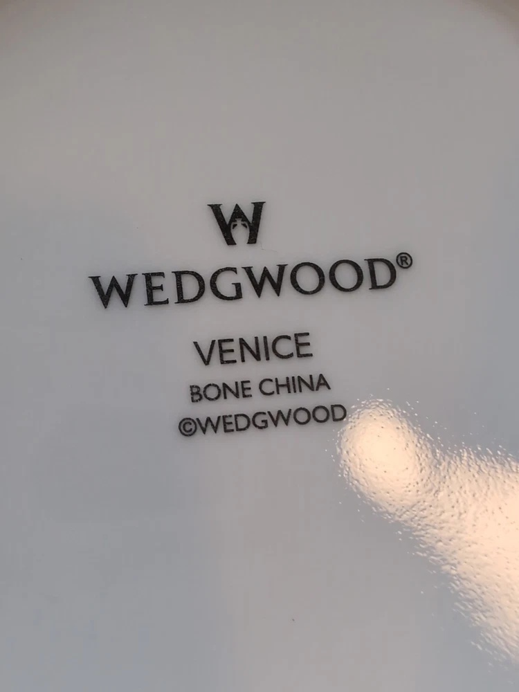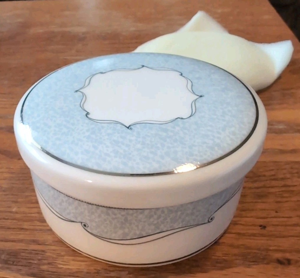 Never been used! Wedgewood Bone China Round Powder/ Jewelry Trinket box. This is made in Venice, Italy. In Original box and packaging. Box has a little scuffing on it. This is a beautiful piece for anyone who would like to have that special unique piece that can hold your valuables.