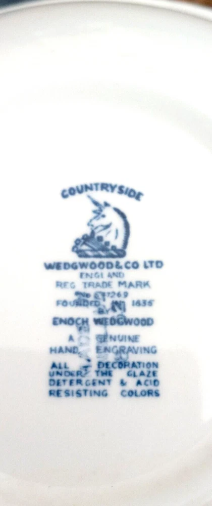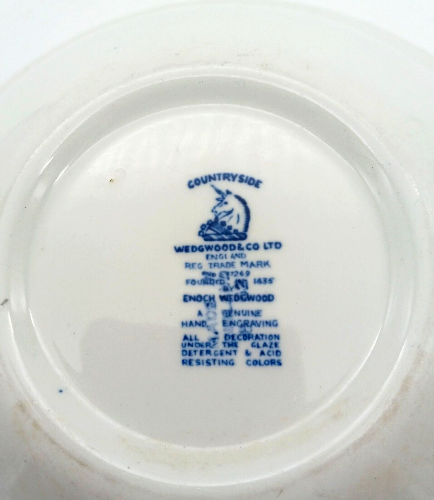 Origin: England Occasion: Thanksgiving Production Style: Blue and White Pottery Seller Notes: “In very good preowned condition. Please see last photo for some markings within the glaze.” Product Line: Countryside Pattern: Countryside Blue Set Includes: Bowl Handmade: Yes Country/Region of Manufacture: United Kingdom Brand: Wedgwood Color: Blue Features: Engraved Material: Bone China Shape: Round Type: Vegetable Bowl