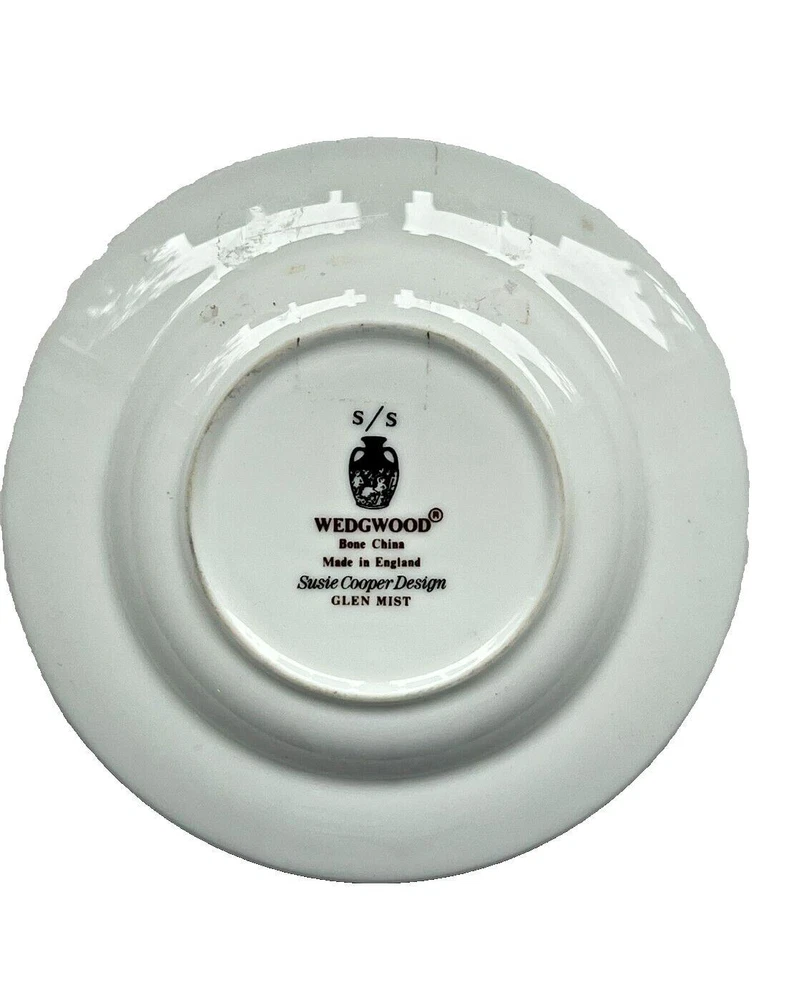 Wedgwood Bone China Susie Cooper Design Glen Mist Round Trinket Dish Plate Has a diameter of 4 1/2" In good vintage condition with no breaks, cracks or chips FAQs All items are examined and every attempt is made to describe them completely and accurately. However, most items are antique/vintage, and by virtue of their age will not be perfect. They are previously owned and may show very fine handling marks and shelf wear and will not be perfect. Upon receipt if you have any concerns please contact me! If for any reason you are inclined to rate your experience less than five stars contact me first - lets discuss. Customer support is important to me as is your satisfaction! Combined Shipping? Yes, we do, and you will save $$ when you buy more than 1 item from us. Will my item be insured in transit? Yes, automatically by Ship Saver, the Post Office or Self Insurance. How will it be packed? Professionally! In bubble wrap with plenty of clean, recycled products and packaging tape for security. How can I pay? PayPal or other- Contact us if you need other payment method. Sorry, but after 7 days' of non-payment, eBay gets involved. Any issue, please talk to us! THANK YOU for shopping with P-B-Antiques Listing and template services provided by inkFrog