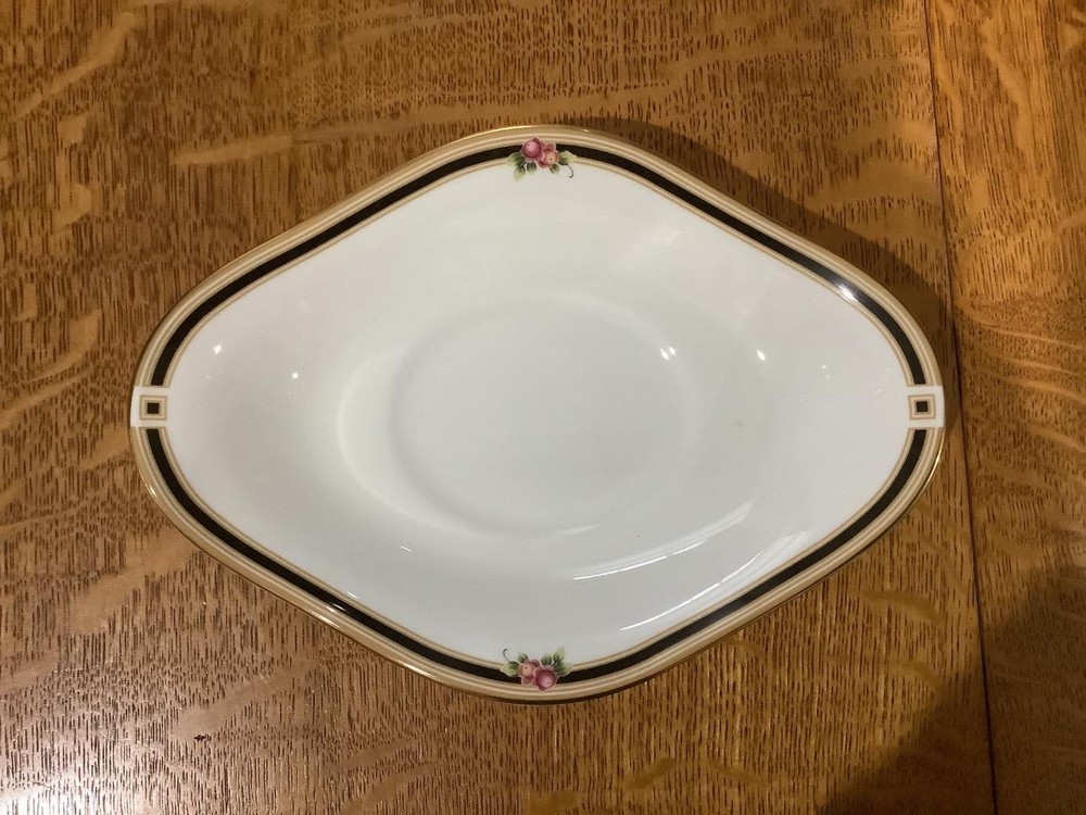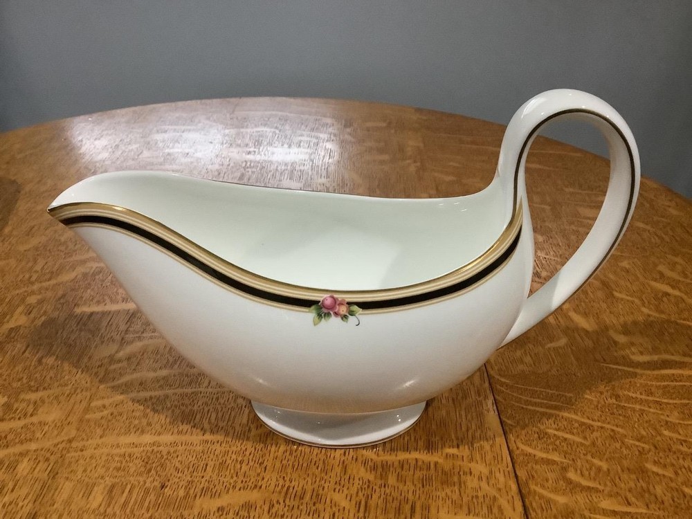Wedgwood Clio bone china gravy boat and underplate ca. 1991 Wedgwood Clio bone china gravy boat and underplate ca. 1991 Click images to enlarge Description PLEASE NOTE: ALL SHIPPING COSTS ARE ESTIMATES ONLY! THERE ARE TOO MANY VARIABLES FOR ME TO BE ACCURATE EVERY TIME, ESPECIALLY SINCE MANY OF MY LISTINGS GO OUT OF THE COUNTRY. PLEASE DO NOT PAY UNTIL I EMAIL YOU AN INVOICE AT THE END OF THE LISTING! THANKS FOR YOUR COOPERATION. This is a Wedgwood bone china gravy boat and underplate in the Clio pattern. It has a black Portland vase mark. It measures about 8 1/2" long. The underplate is 5 3/4" x 7 3/4". It is in excellent condition with no chips, cracks or wear. Be sure to see my other listings for other pieces in this pattern, including place settings. Be sure to add me to your favorites list ! Get images that make Supersized seem small. Showcase your items with Auctiva's Listing Templates! THE simple solution for eBay sellers. Track Page Views With Auctiva's Counter